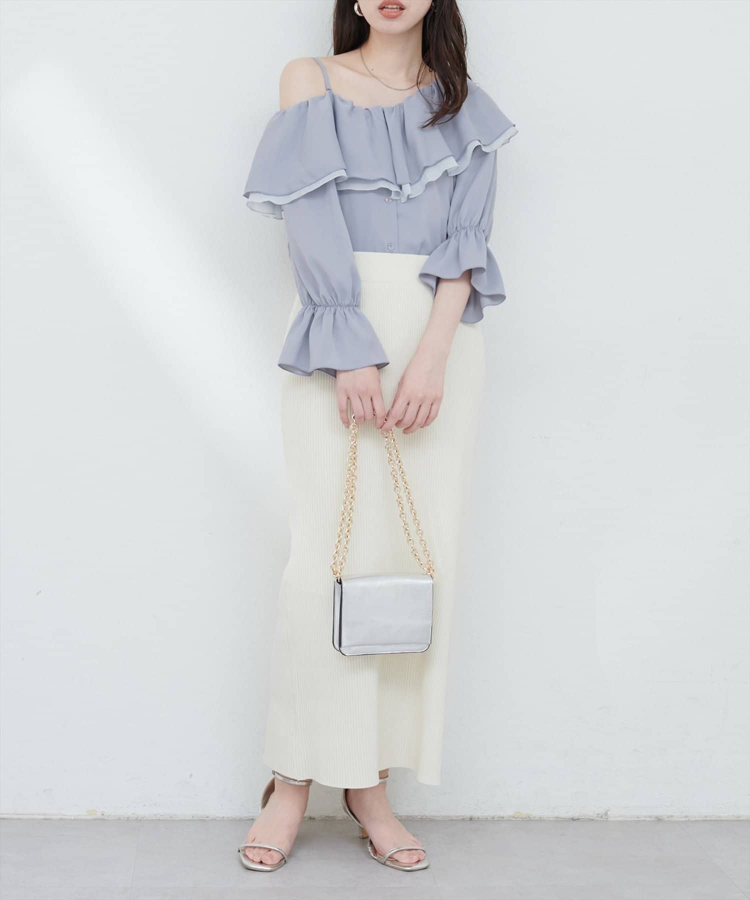 肩を落とさずノーマルでも、肩を落としてオフショルでも、シーンに合わせて着こなしを変えられます。