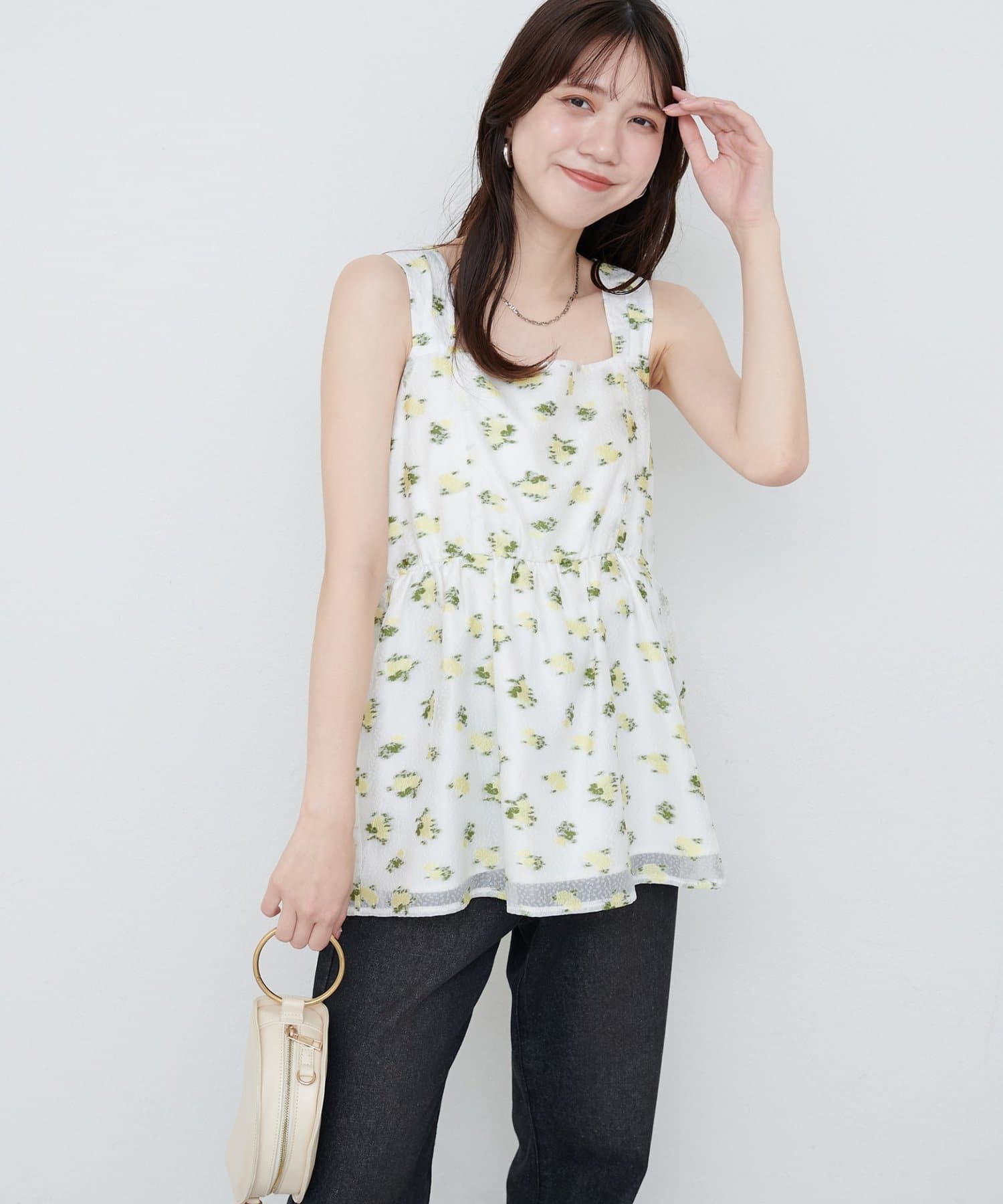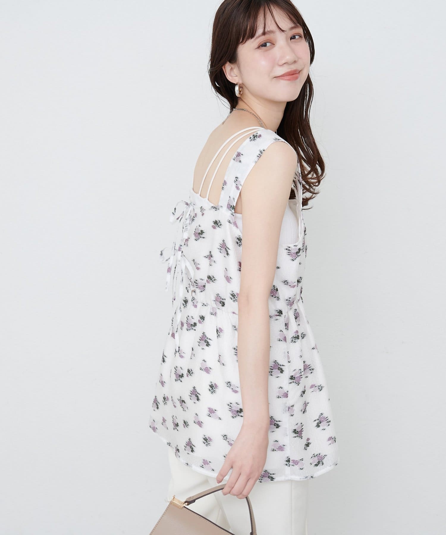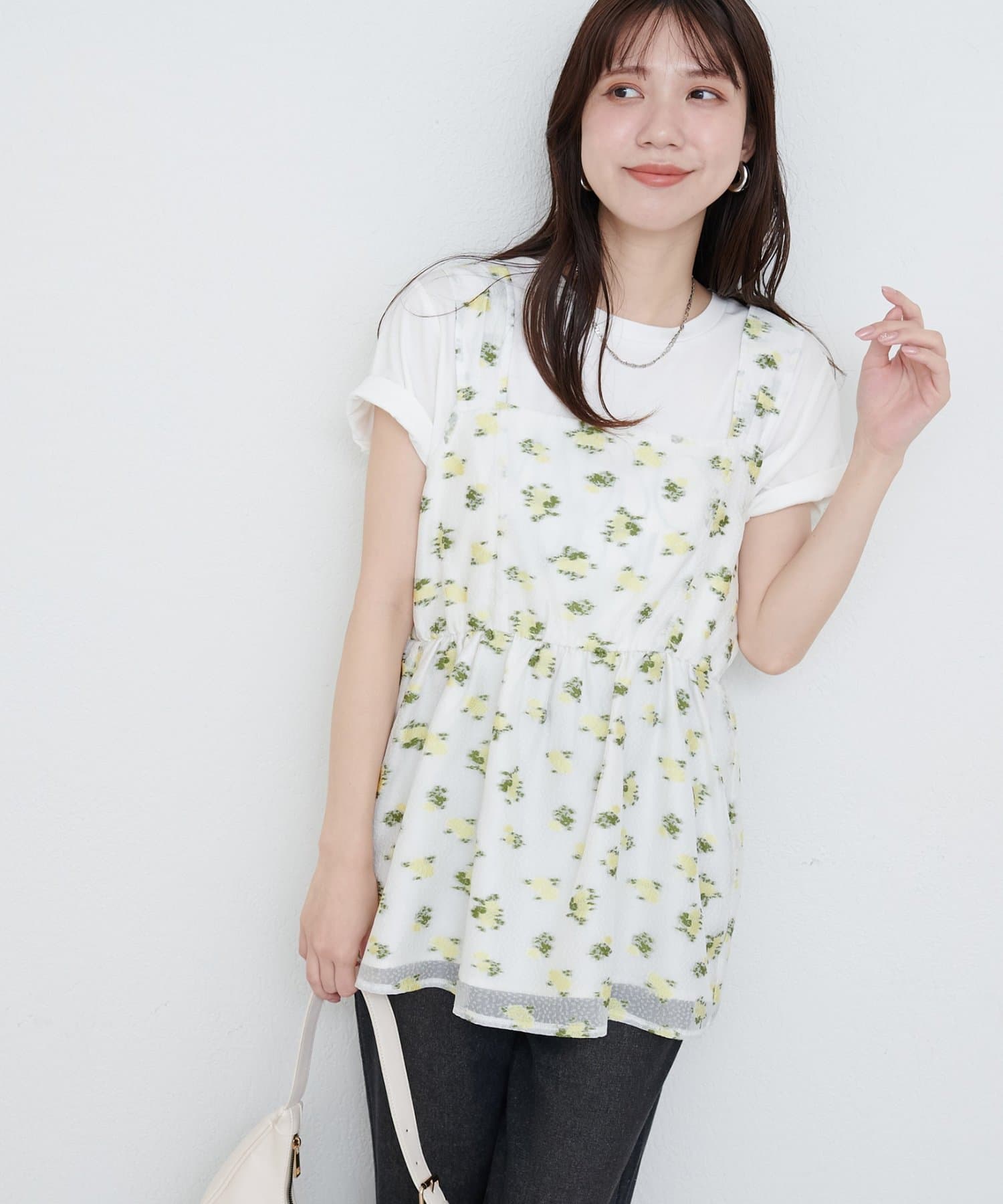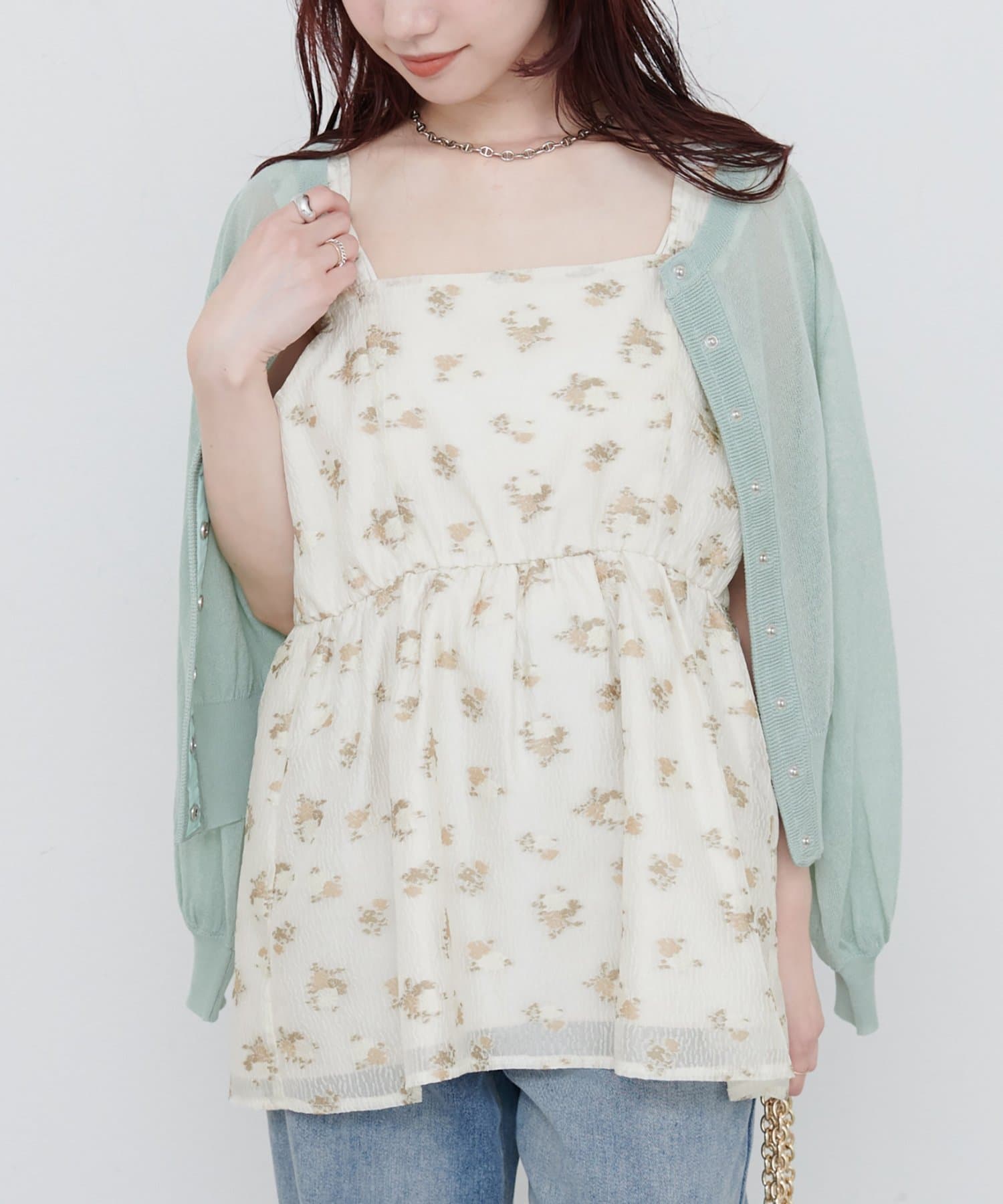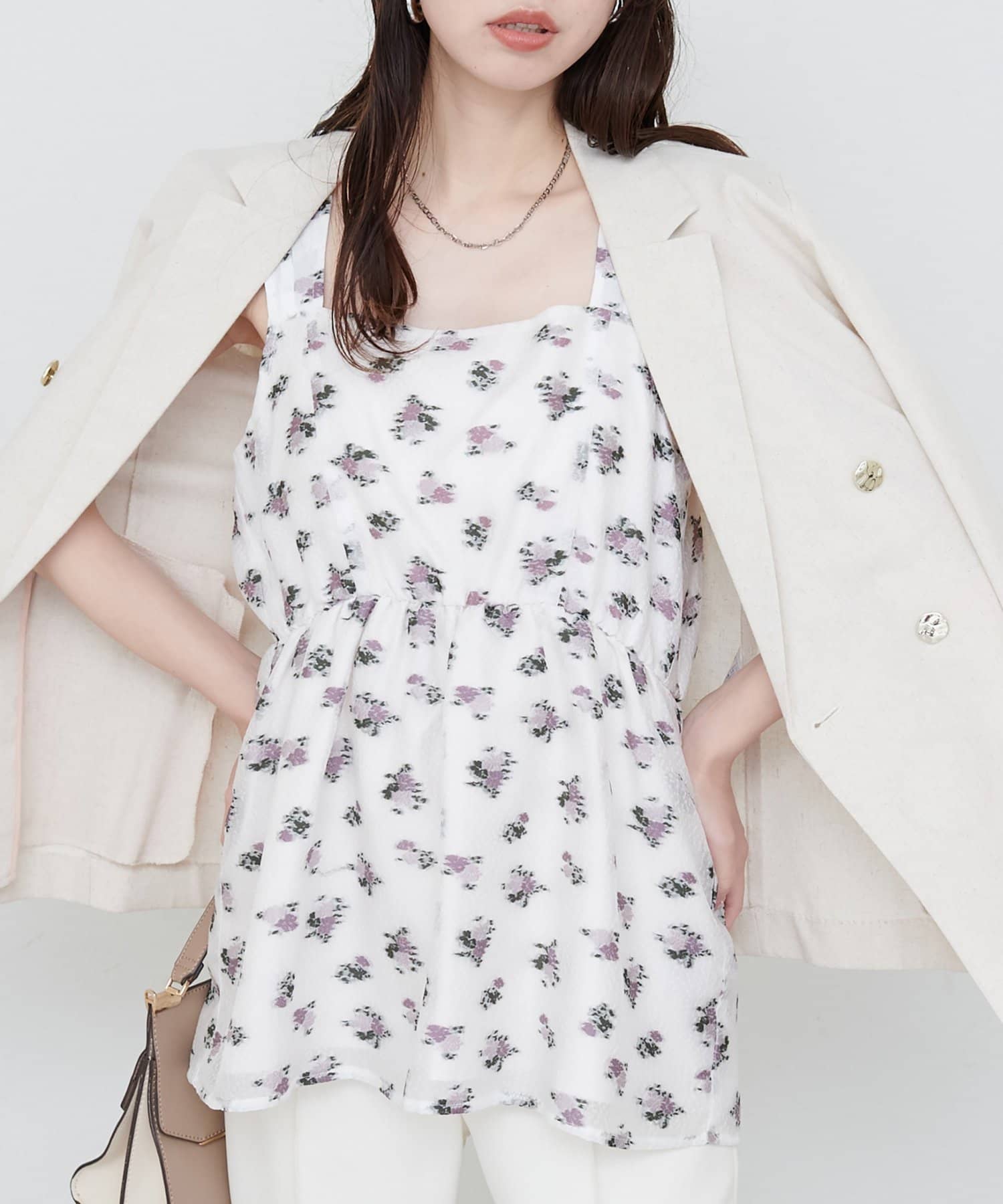 繊細な小花柄が散りばめられたキャミチュニック。