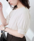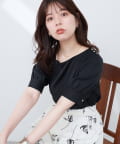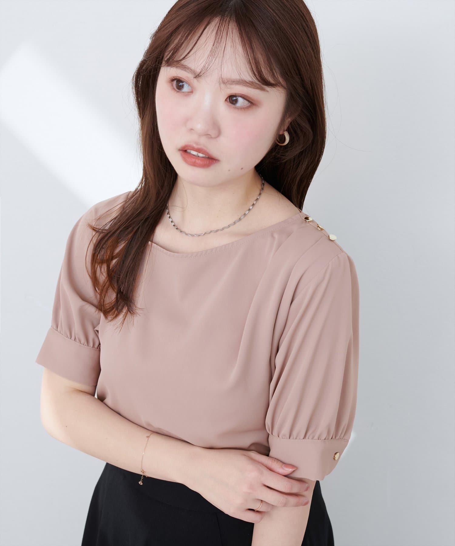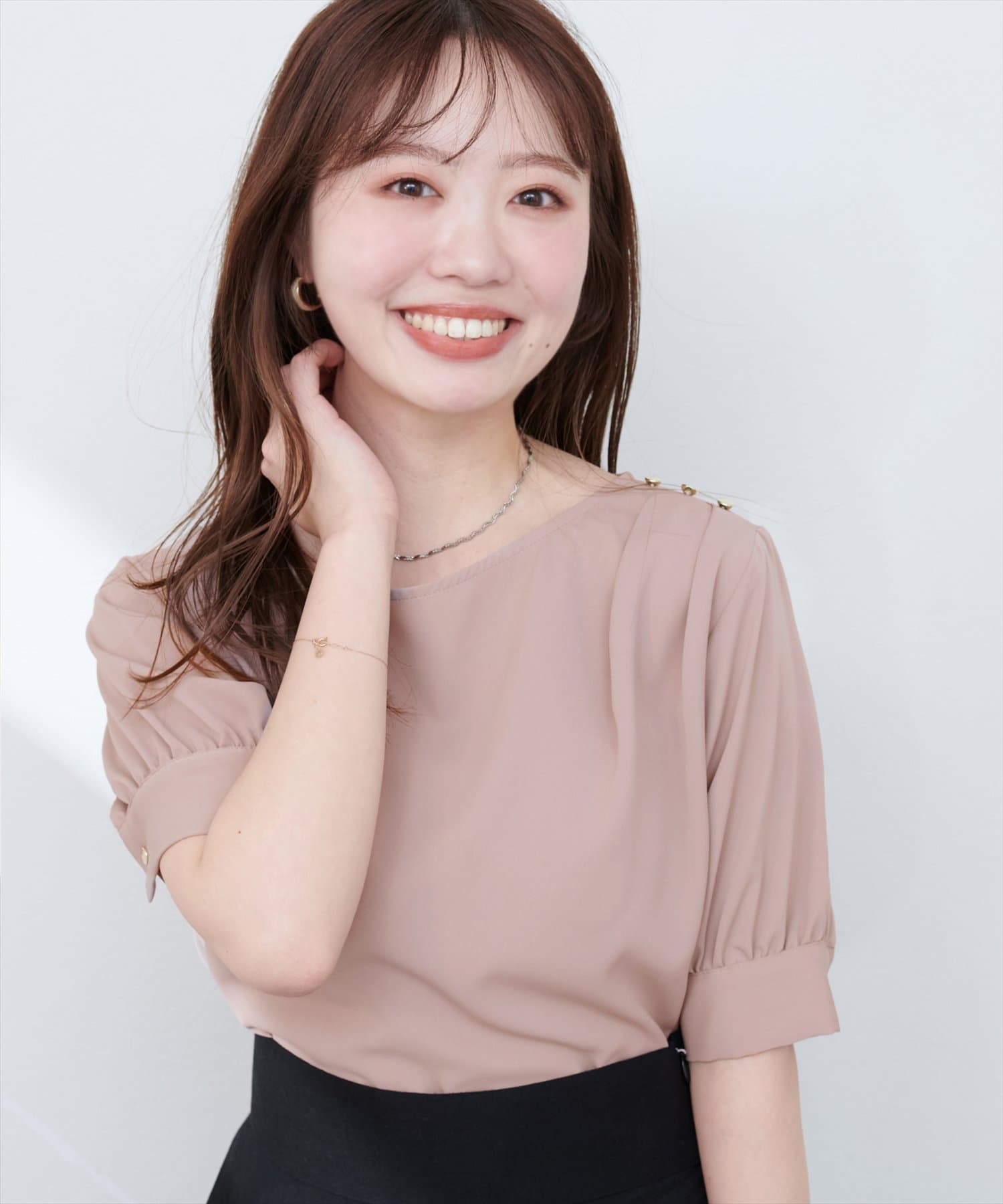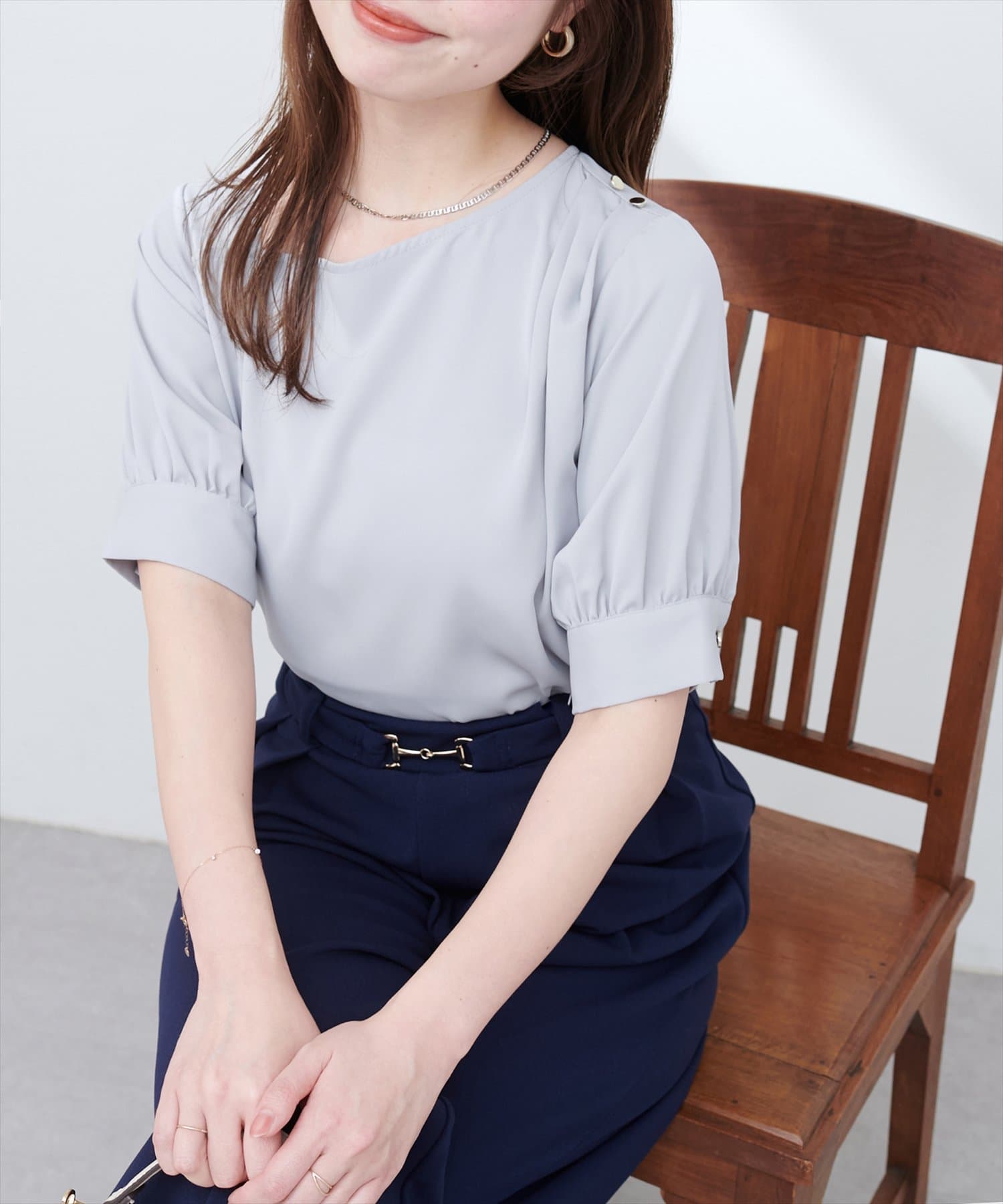 デコルテを美しく見せるネックラインと、ふんわりとした袖が女性らしさを演出。
