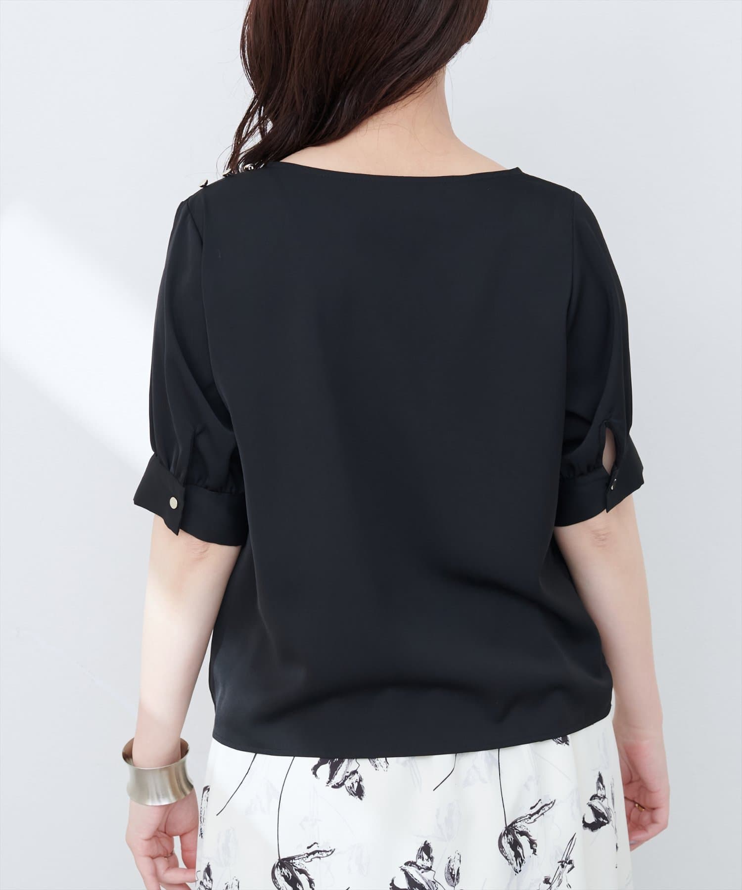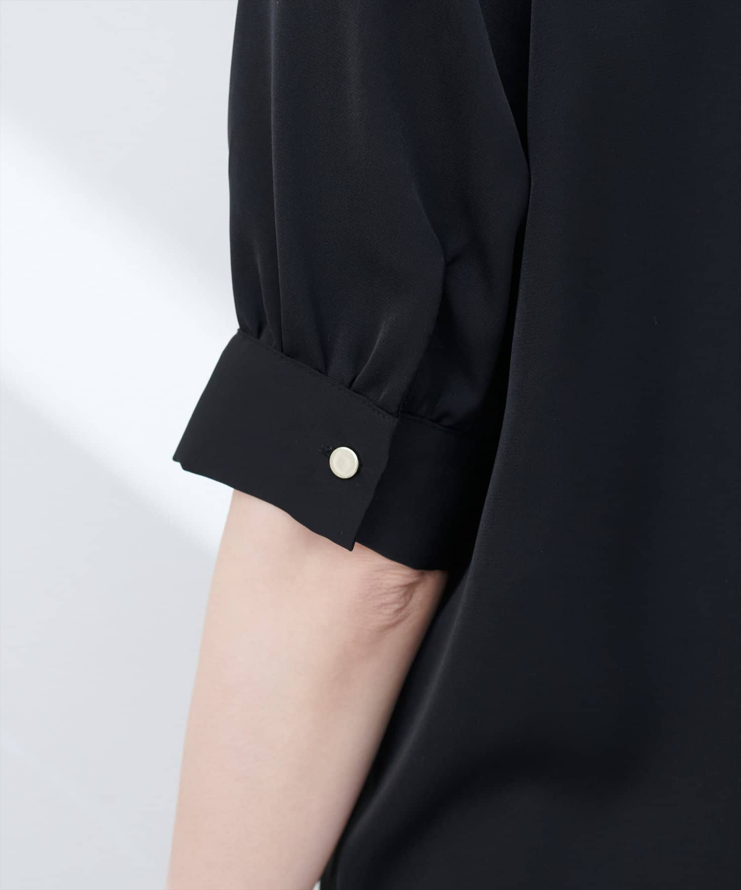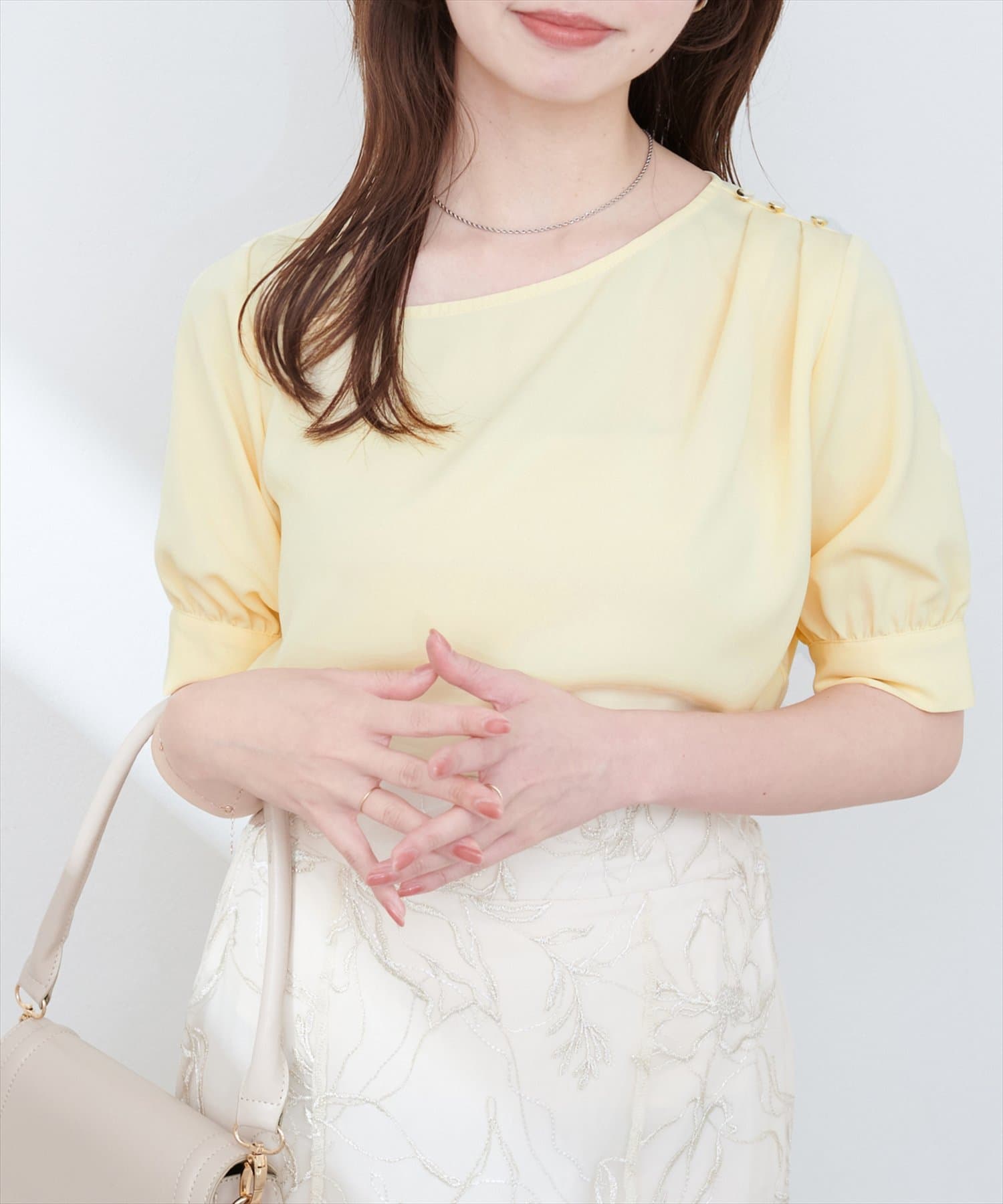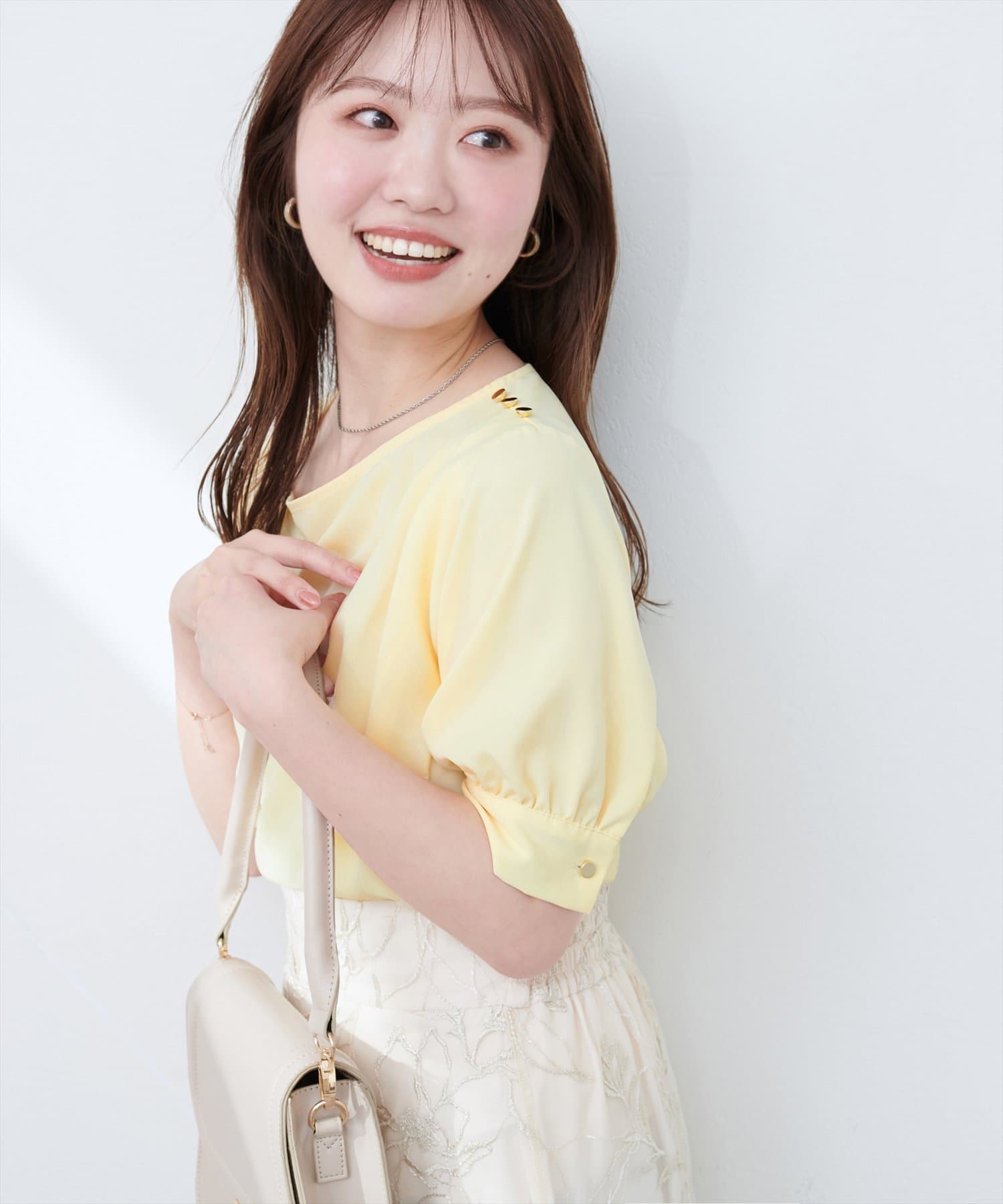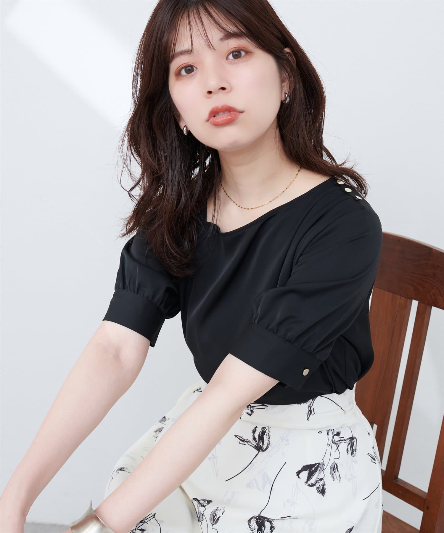 アシメネックデザインで、大人の女性にぴったりの上品でエレガントなブラウス。