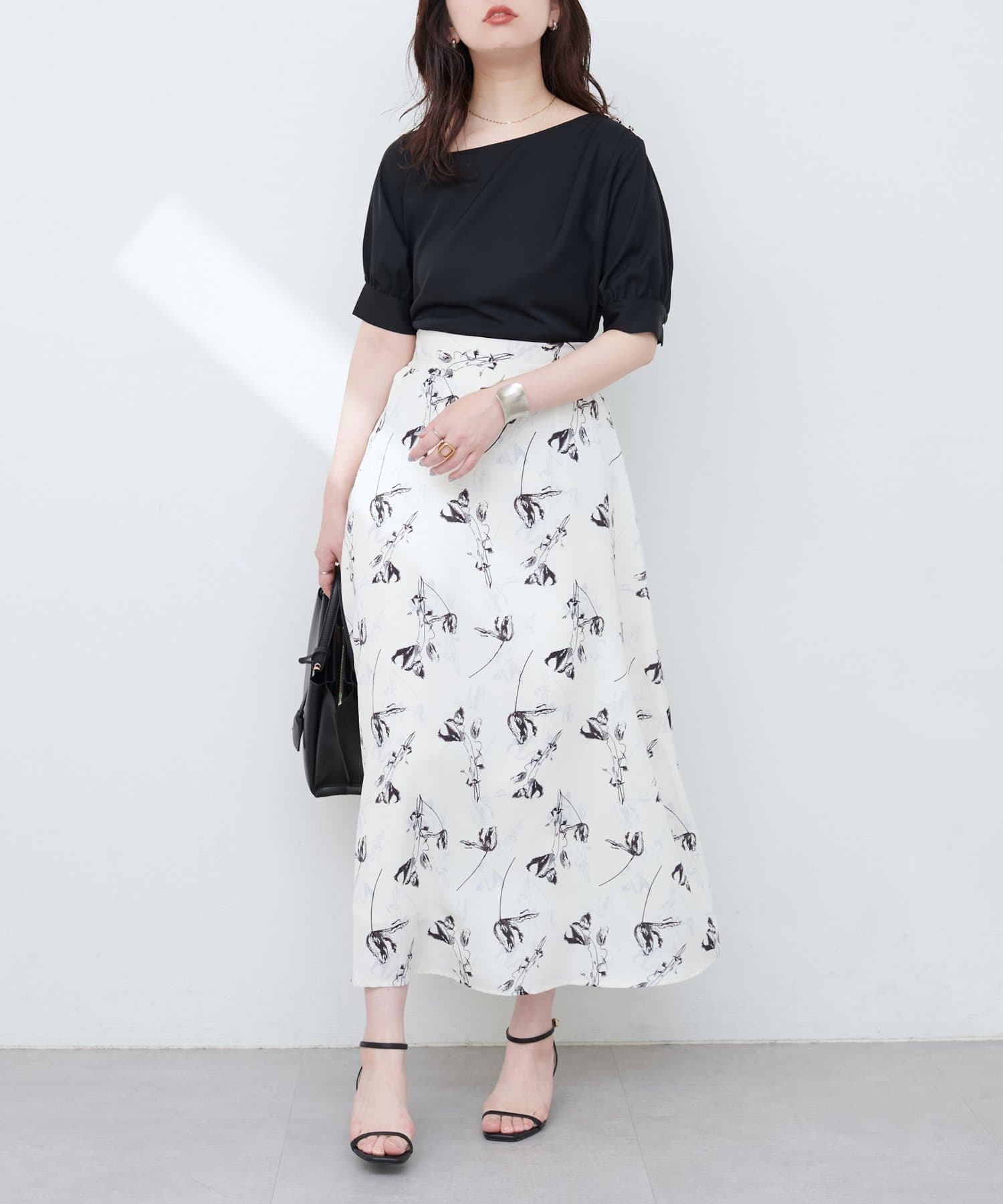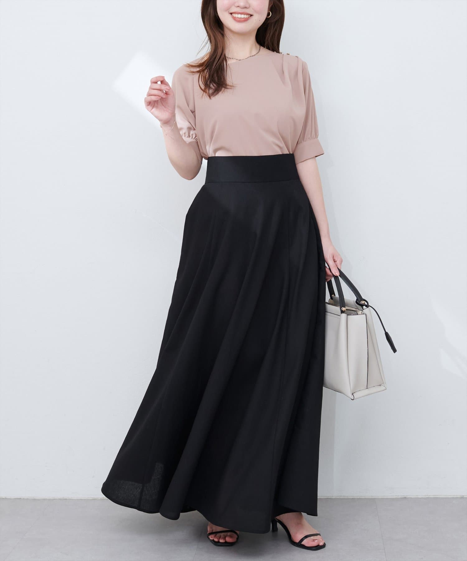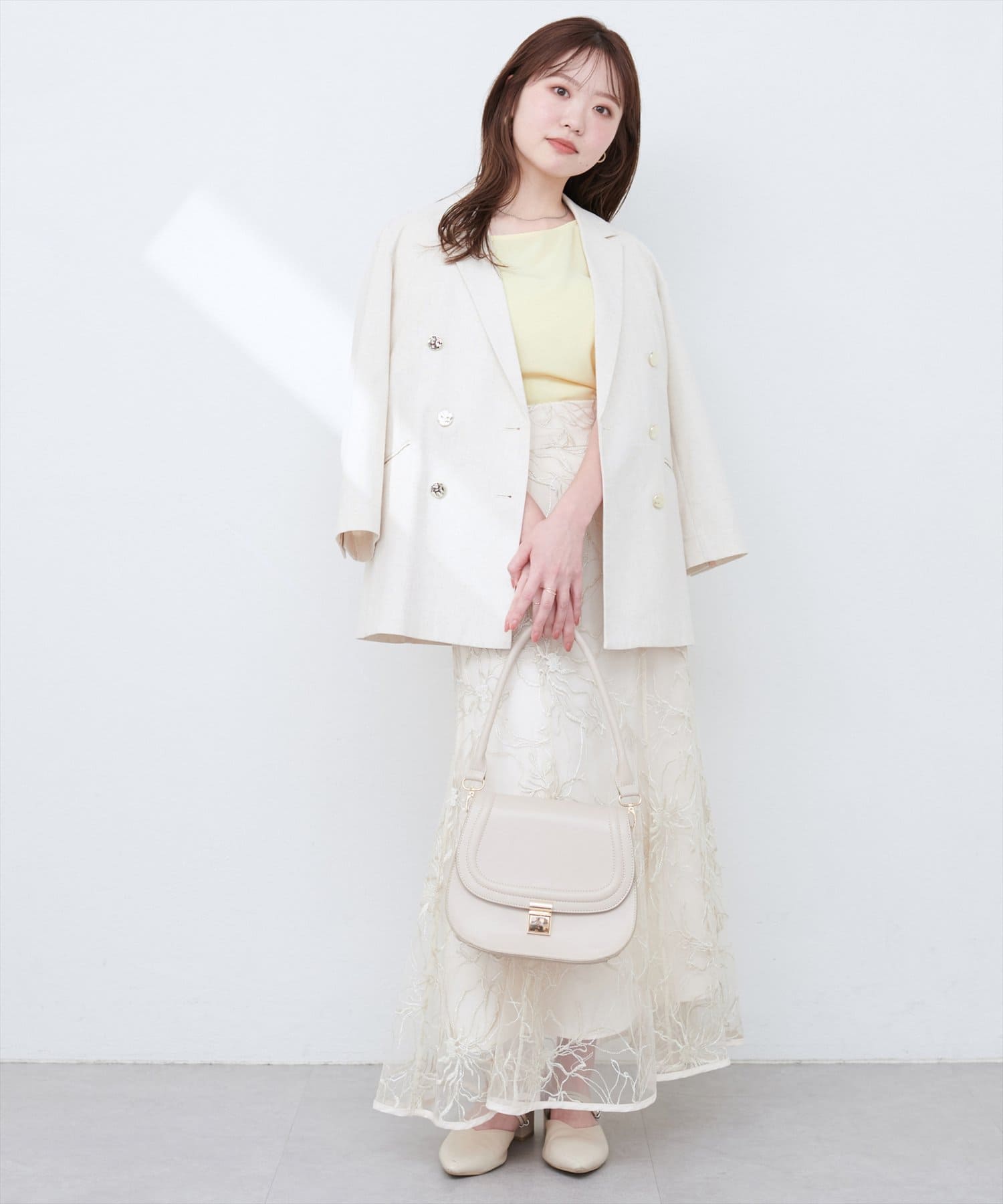 フレアスカートやワンピースと合わせて、フェミニンで上品な印象に。