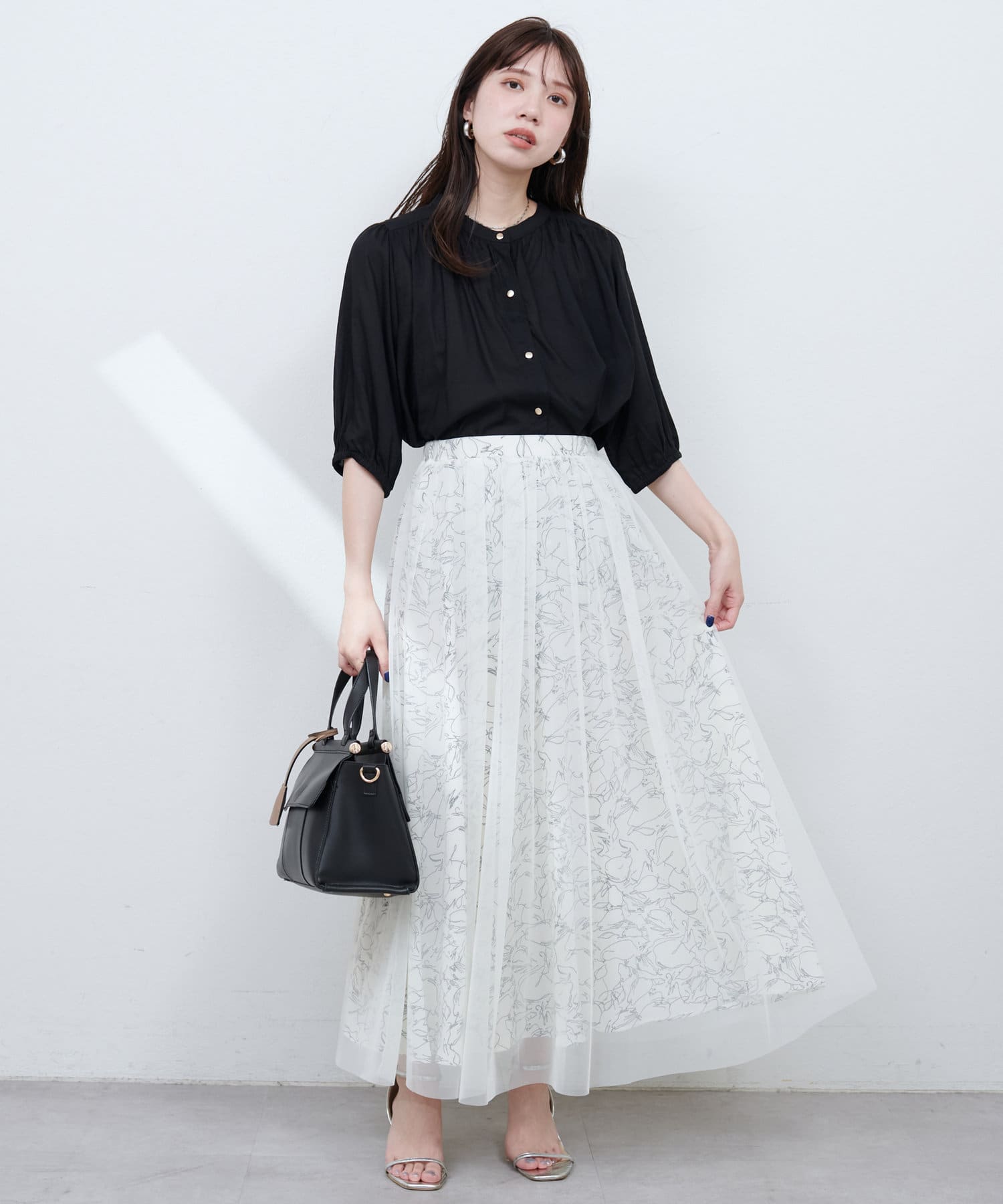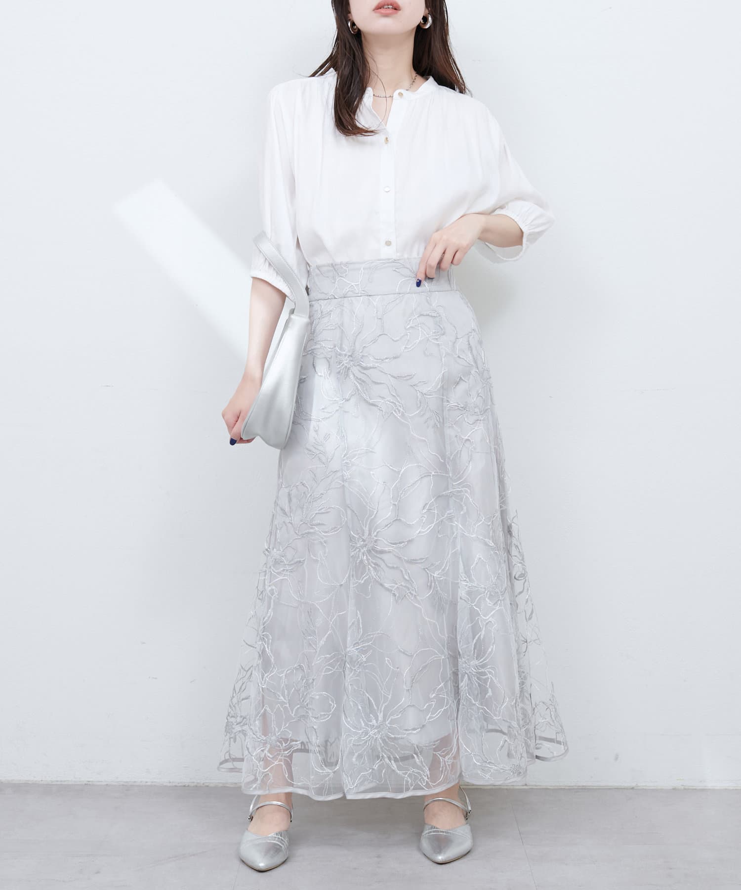 マーメイドシルエットやフレアライン、Iラインのスカートにウエストインして、