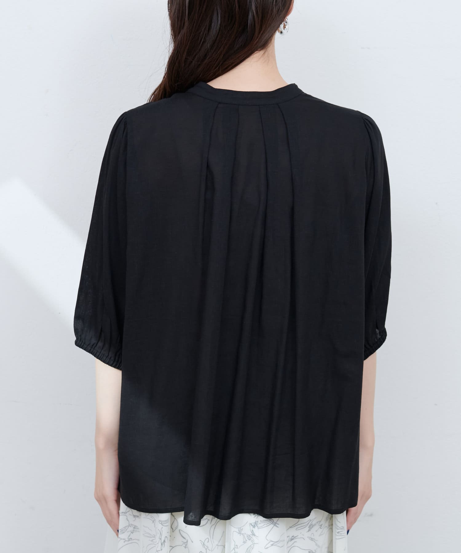 麻混ギャザーブラウス