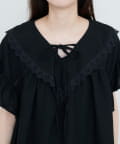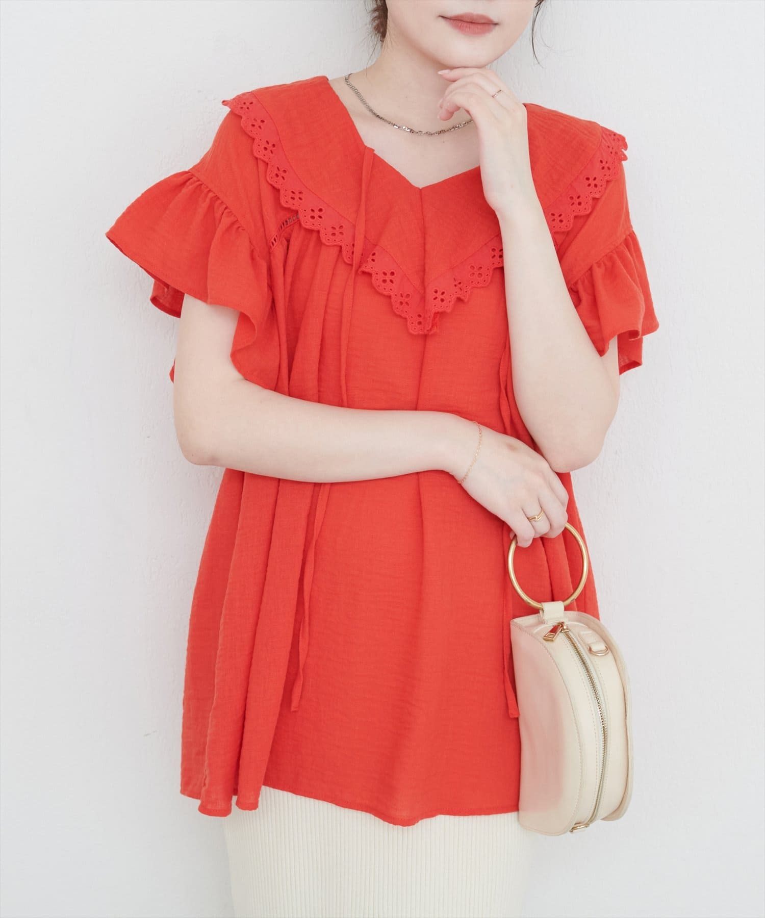 特徴的なレース襟が、顔周りをパッと明るく、華やかに彩ります。