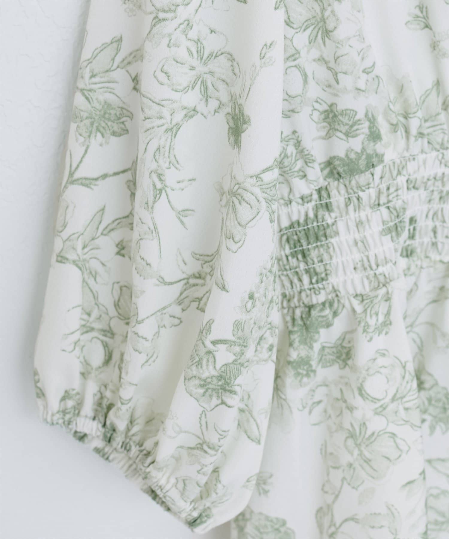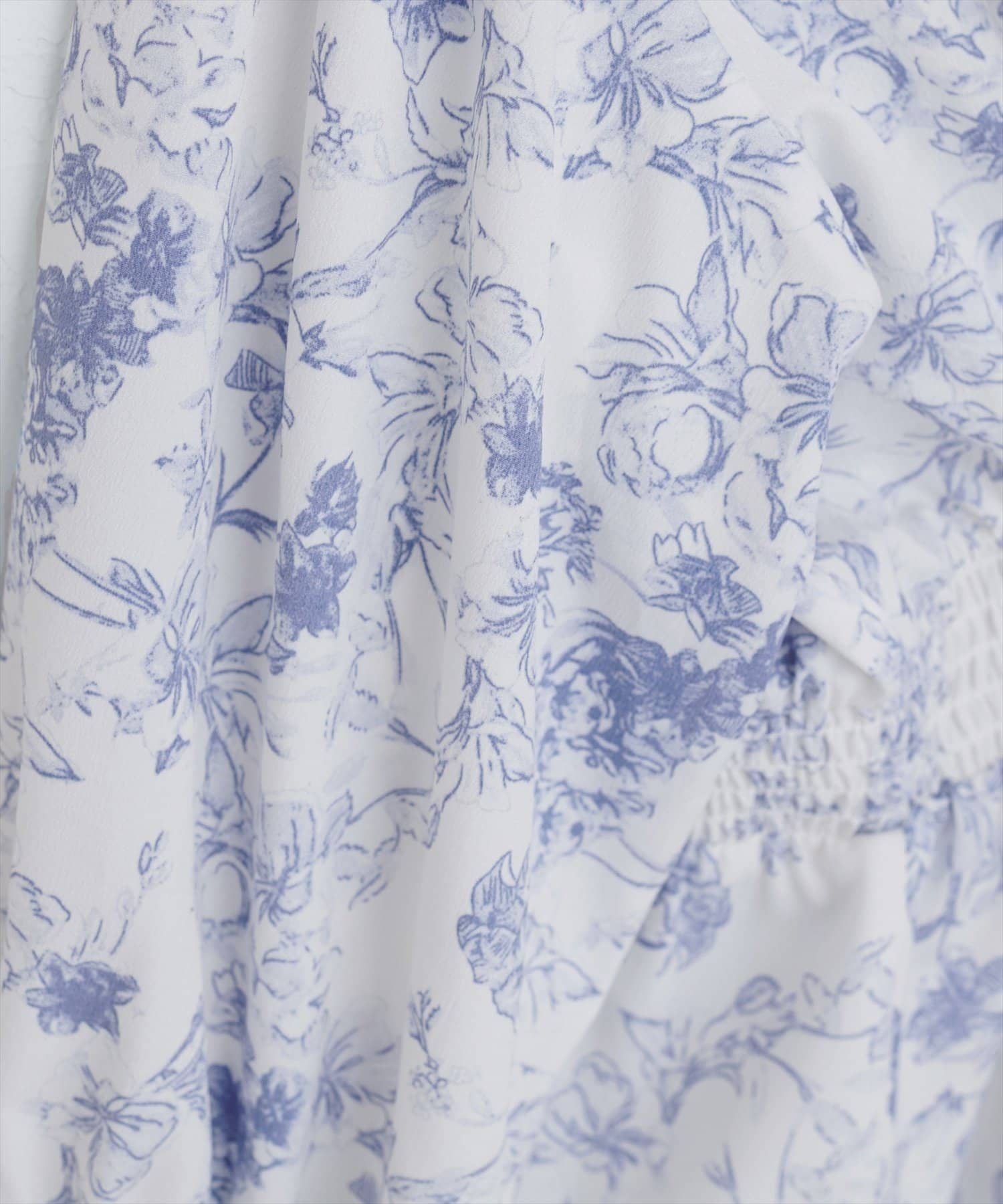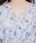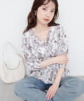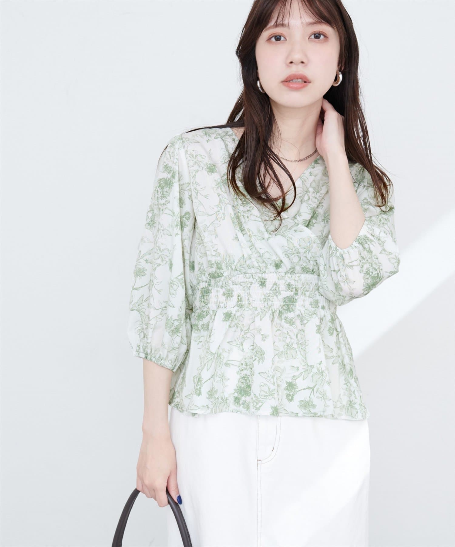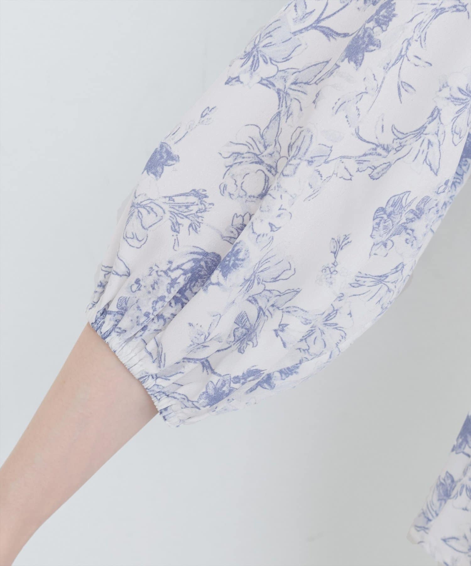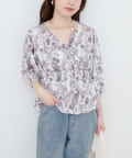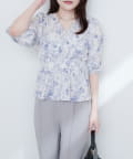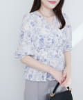 繊細なタッチで描かれたフラワー柄が、優雅で上品な印象を添えるブラウス。