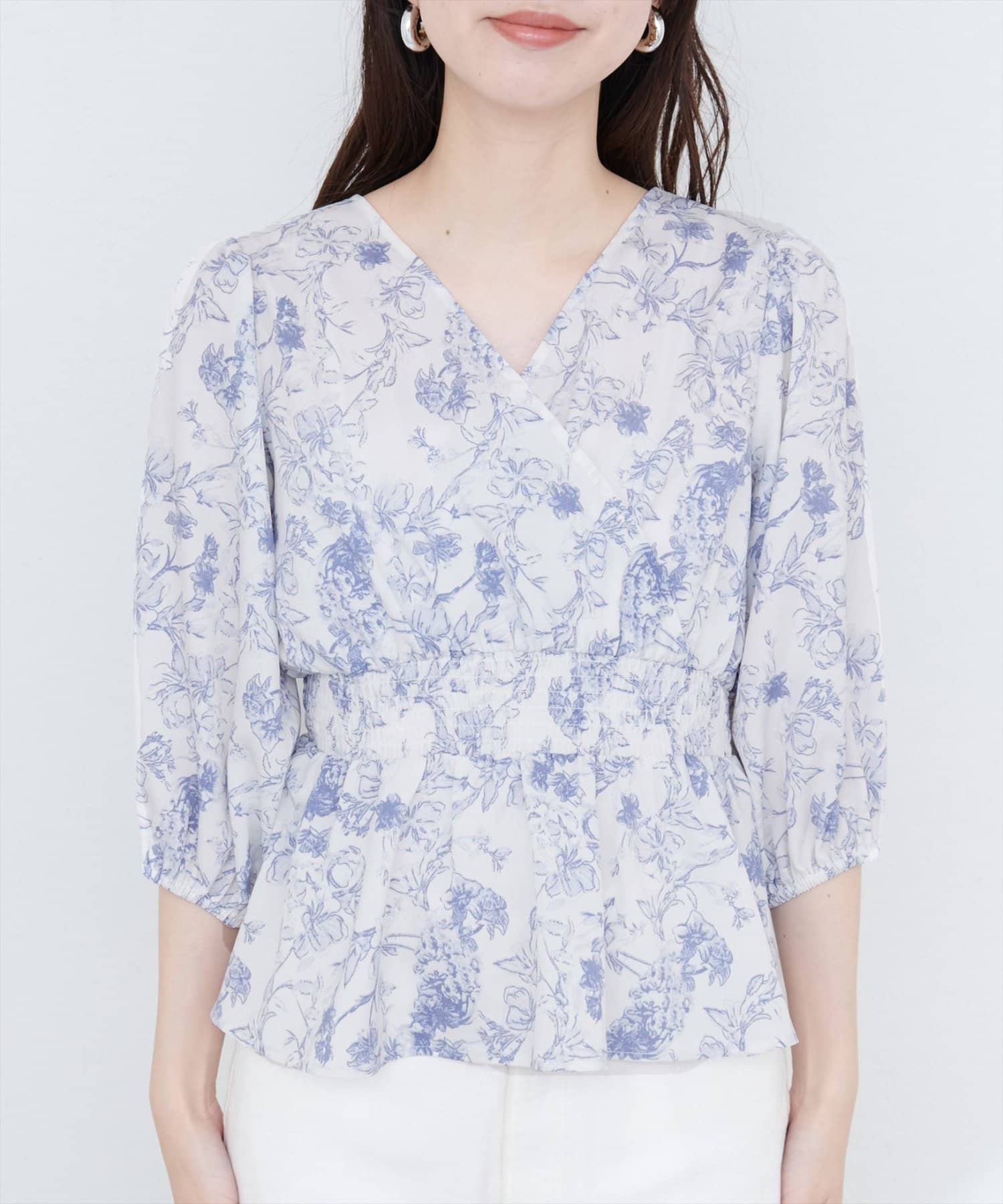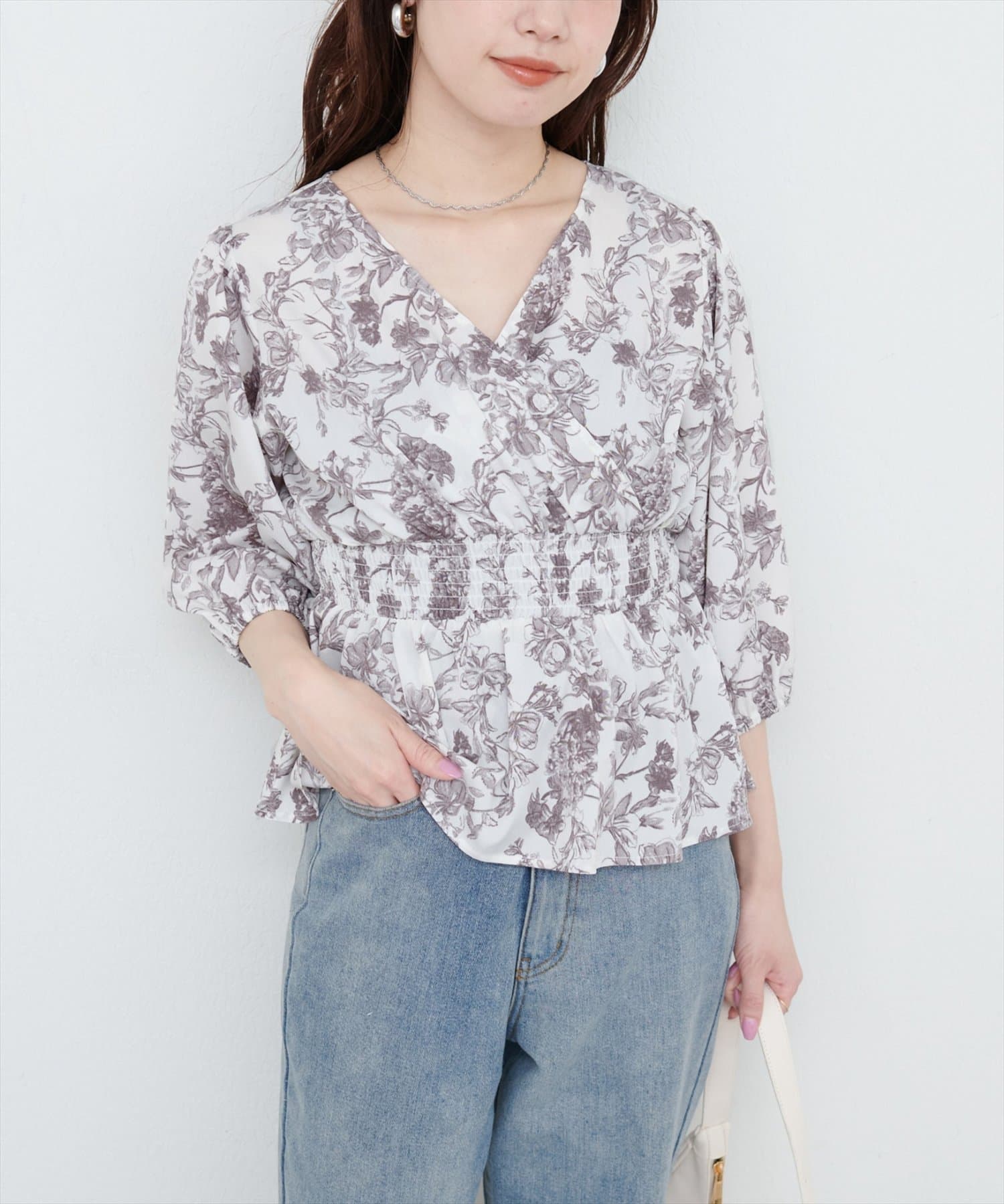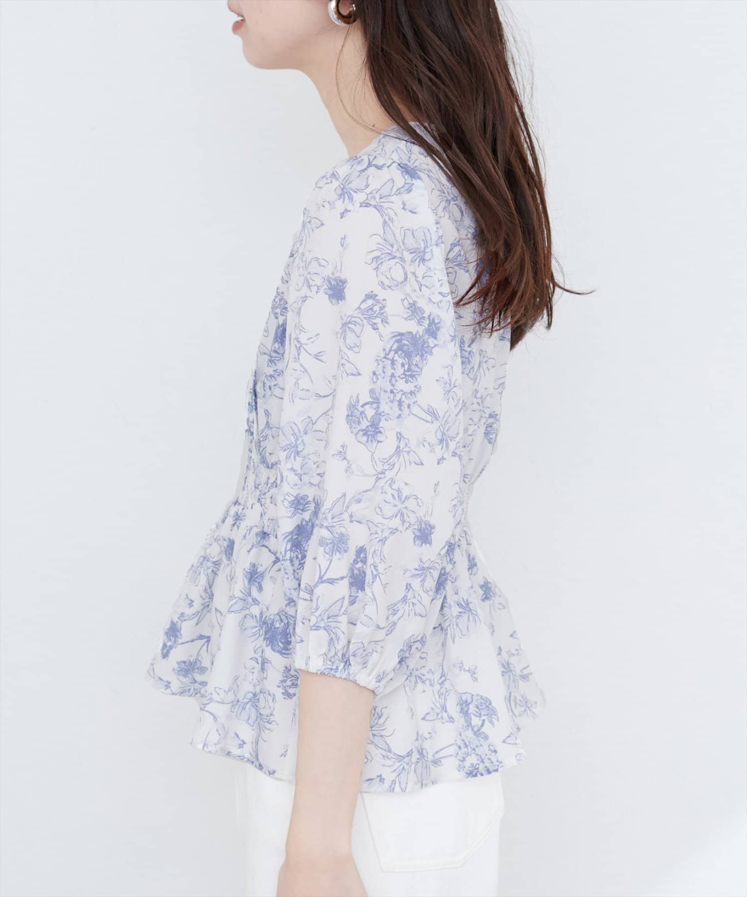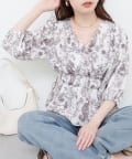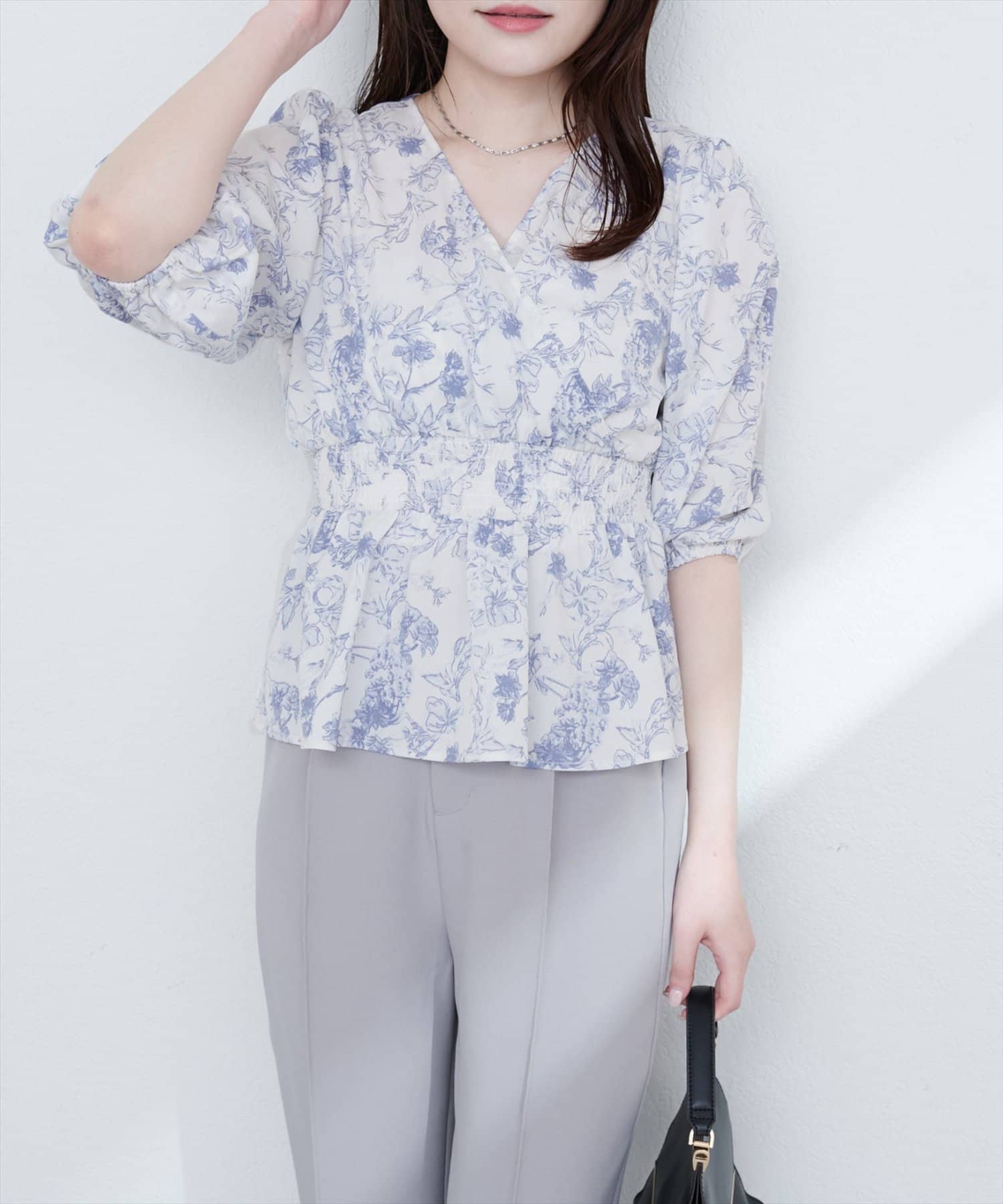 【WEB限定】淡彩フラワーVネックペプラムブラウス