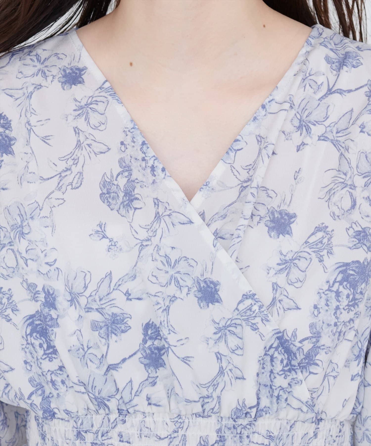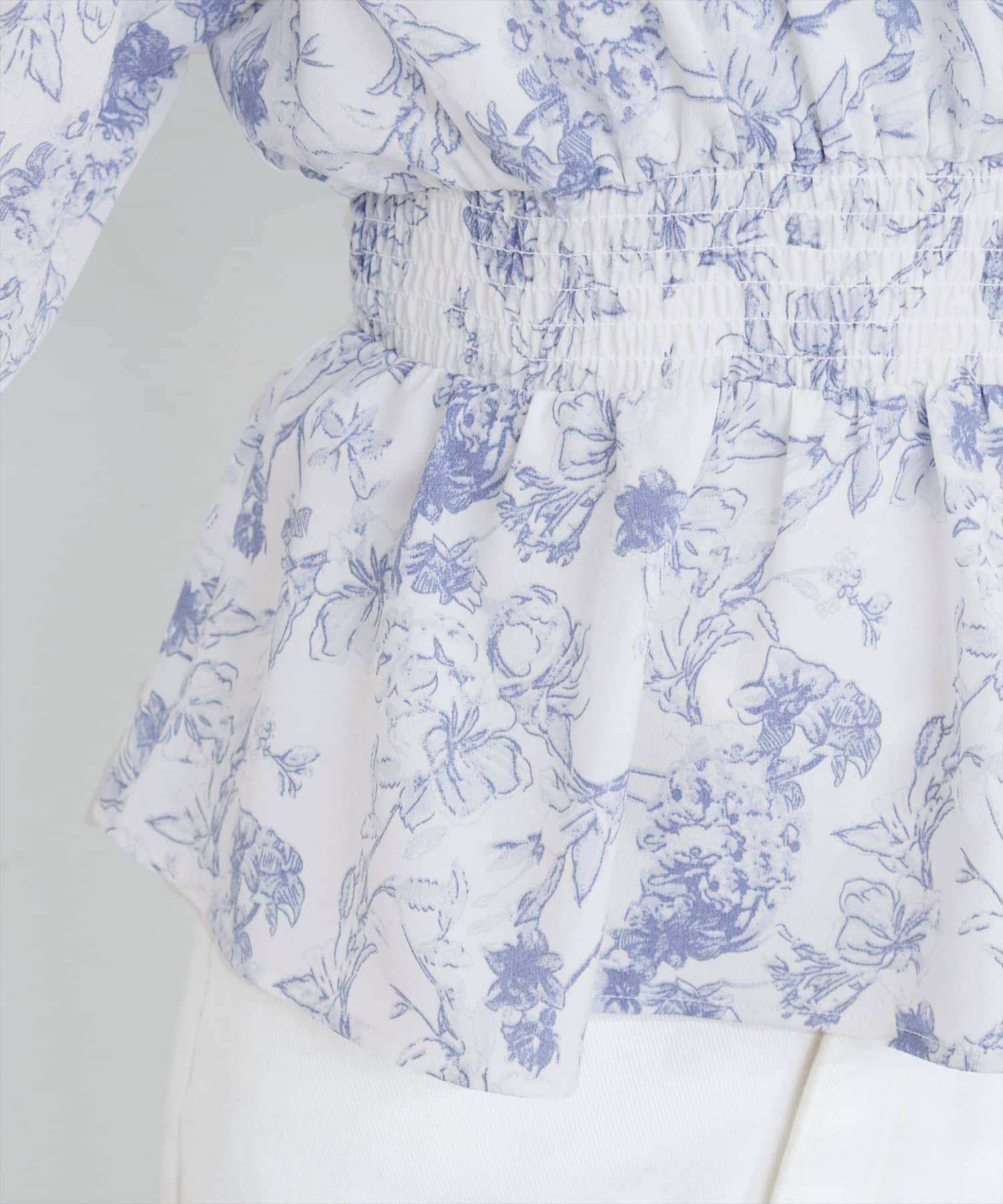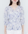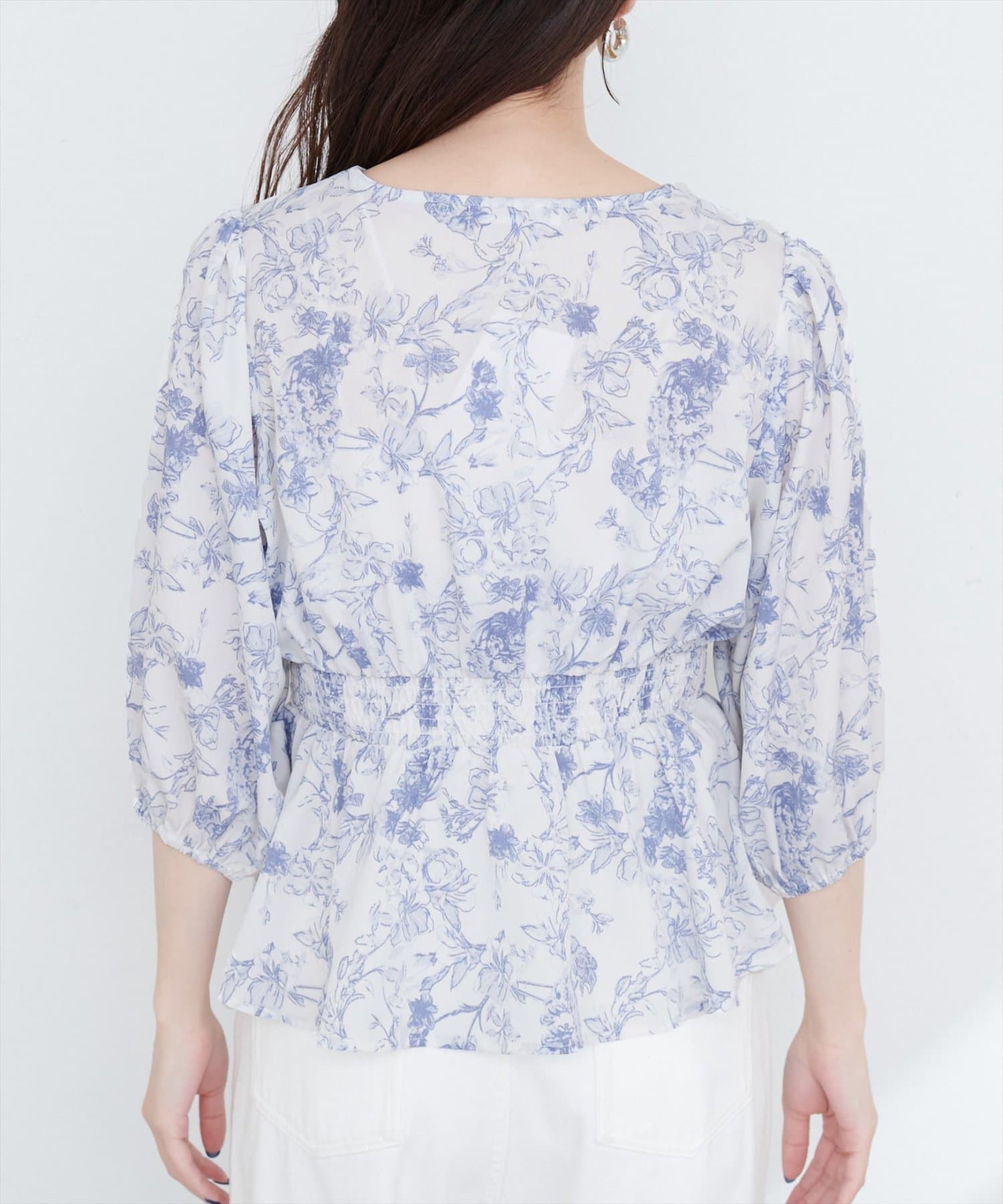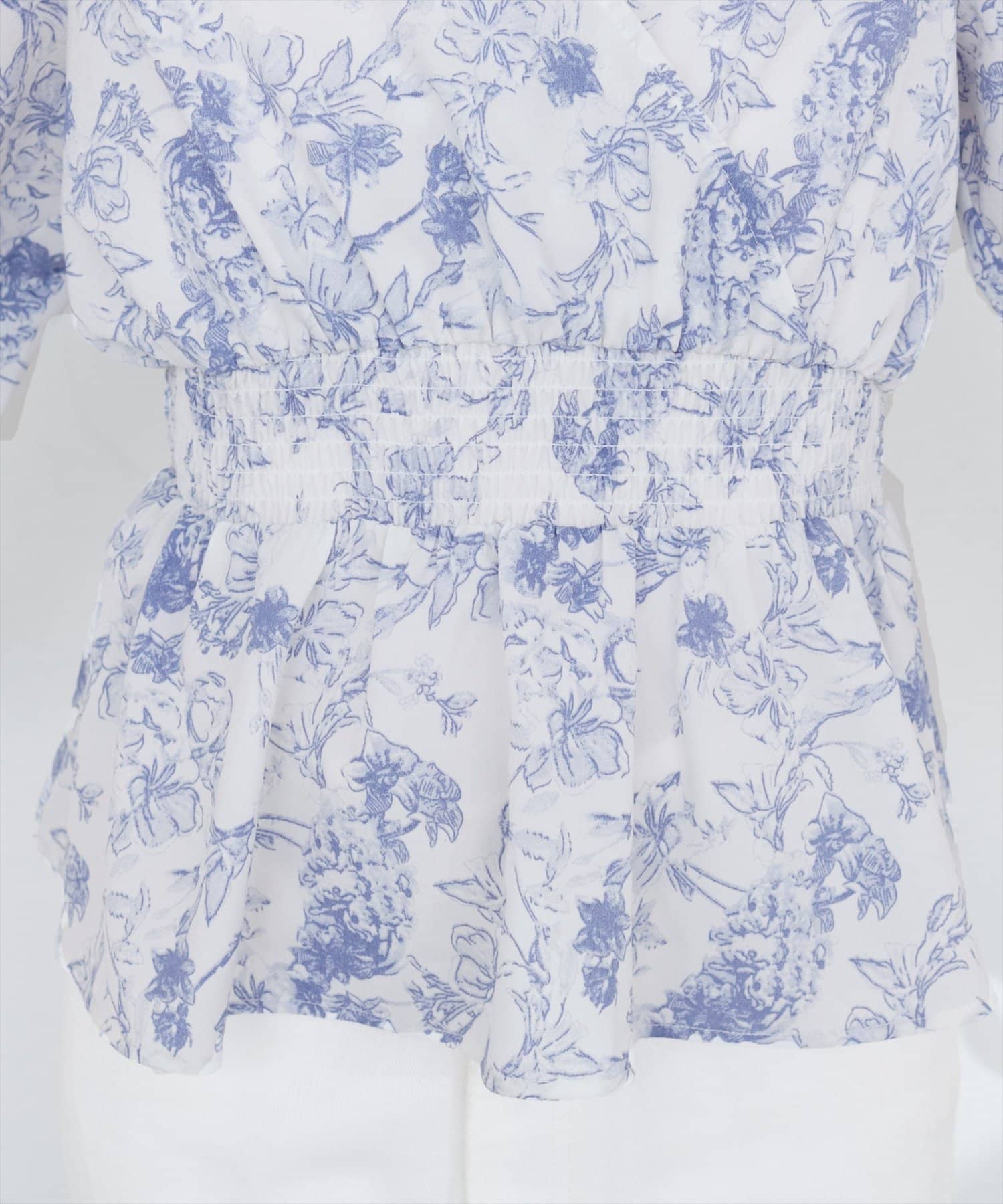 【WEB限定】淡彩フラワーVネックペプラムブラウス