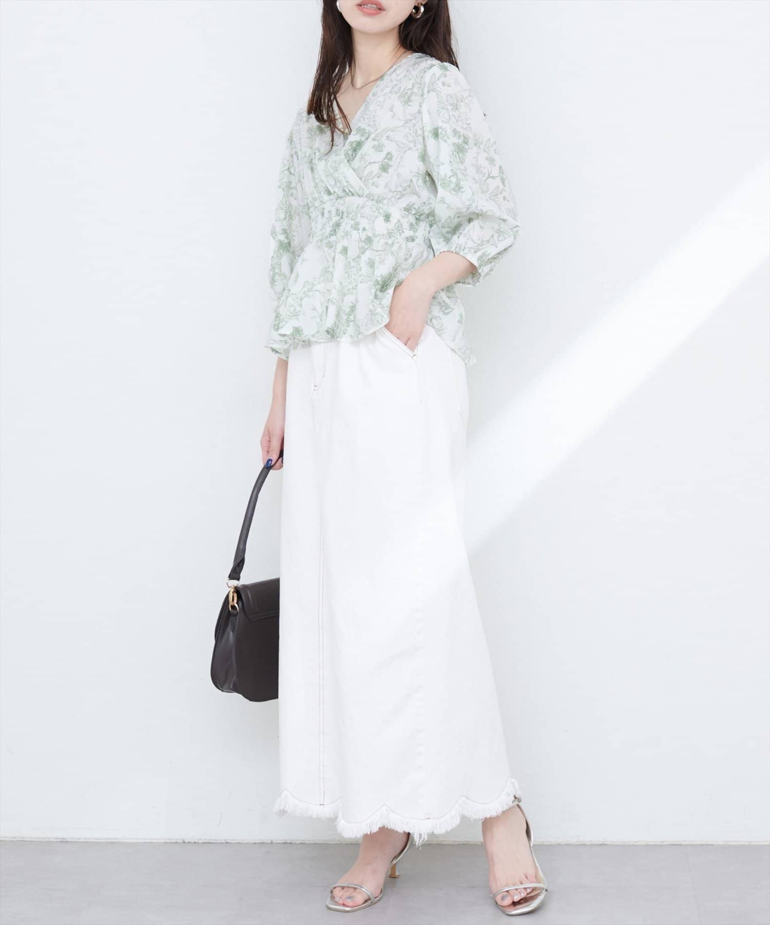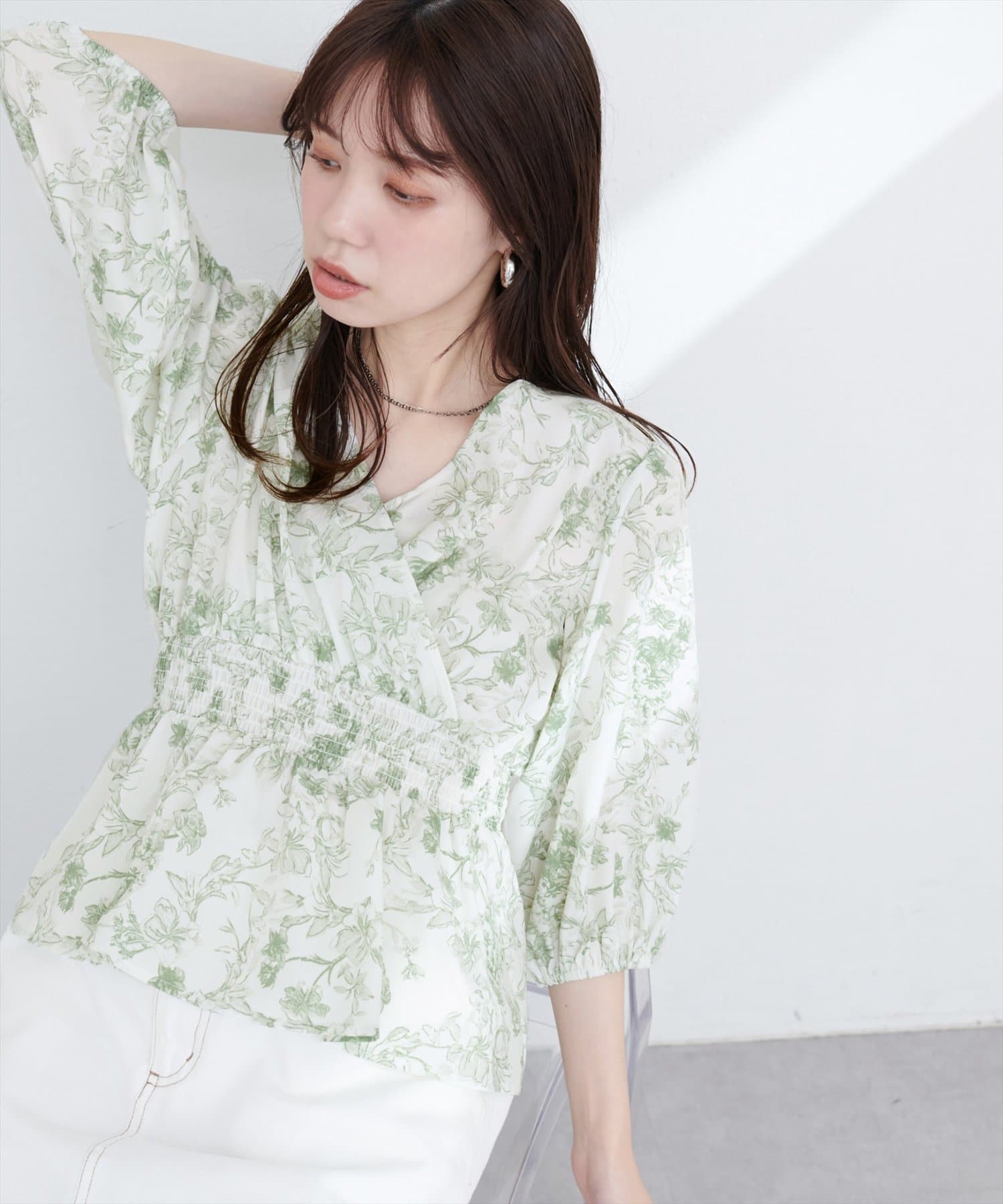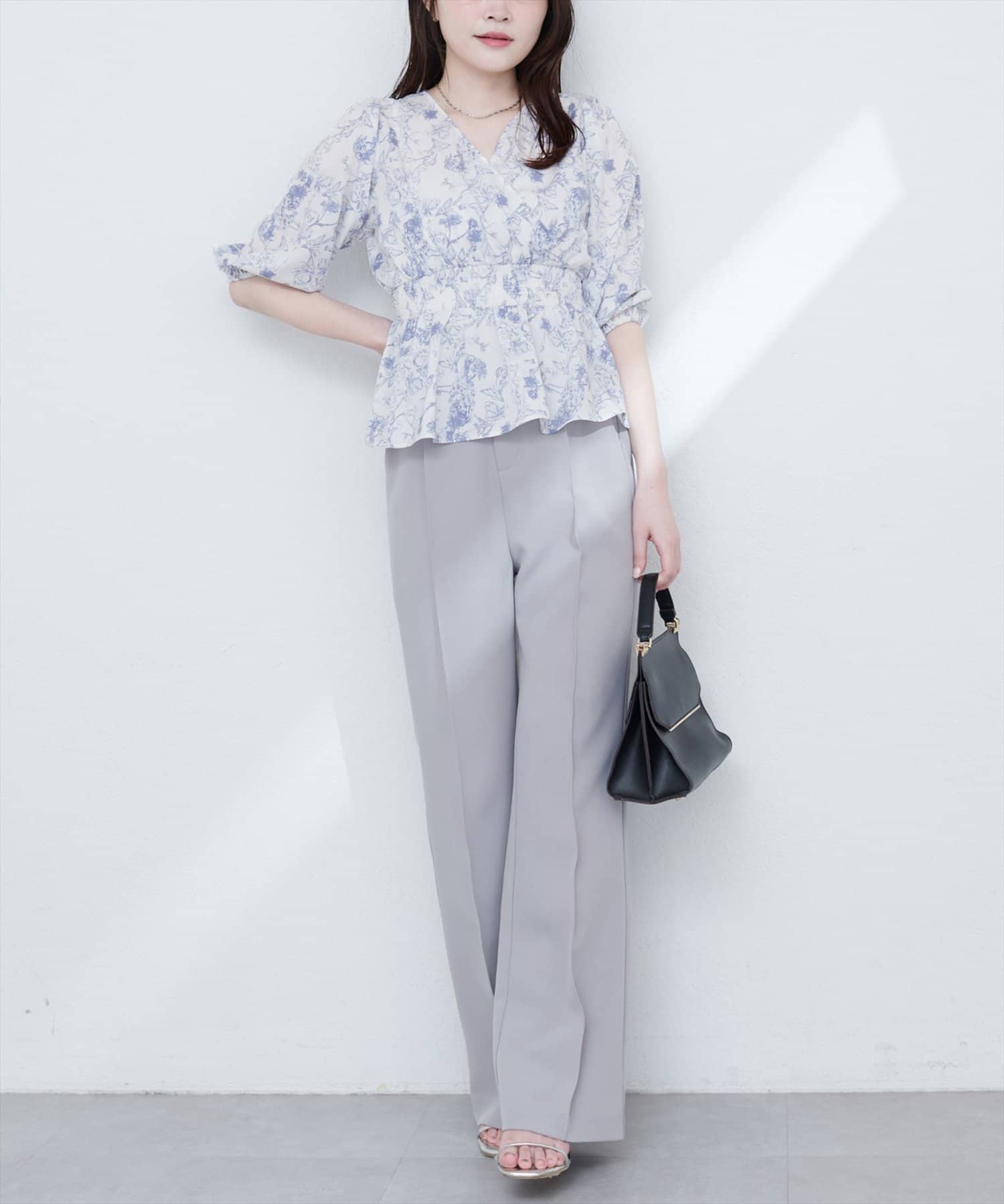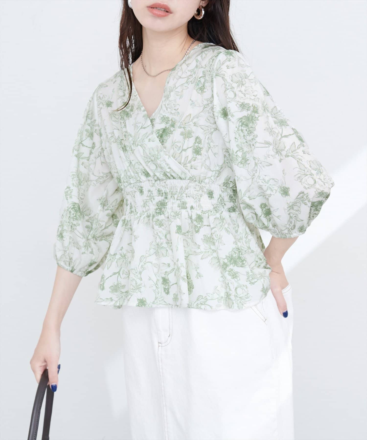 【WEB限定】淡彩フラワーVネックペプラムブラウス