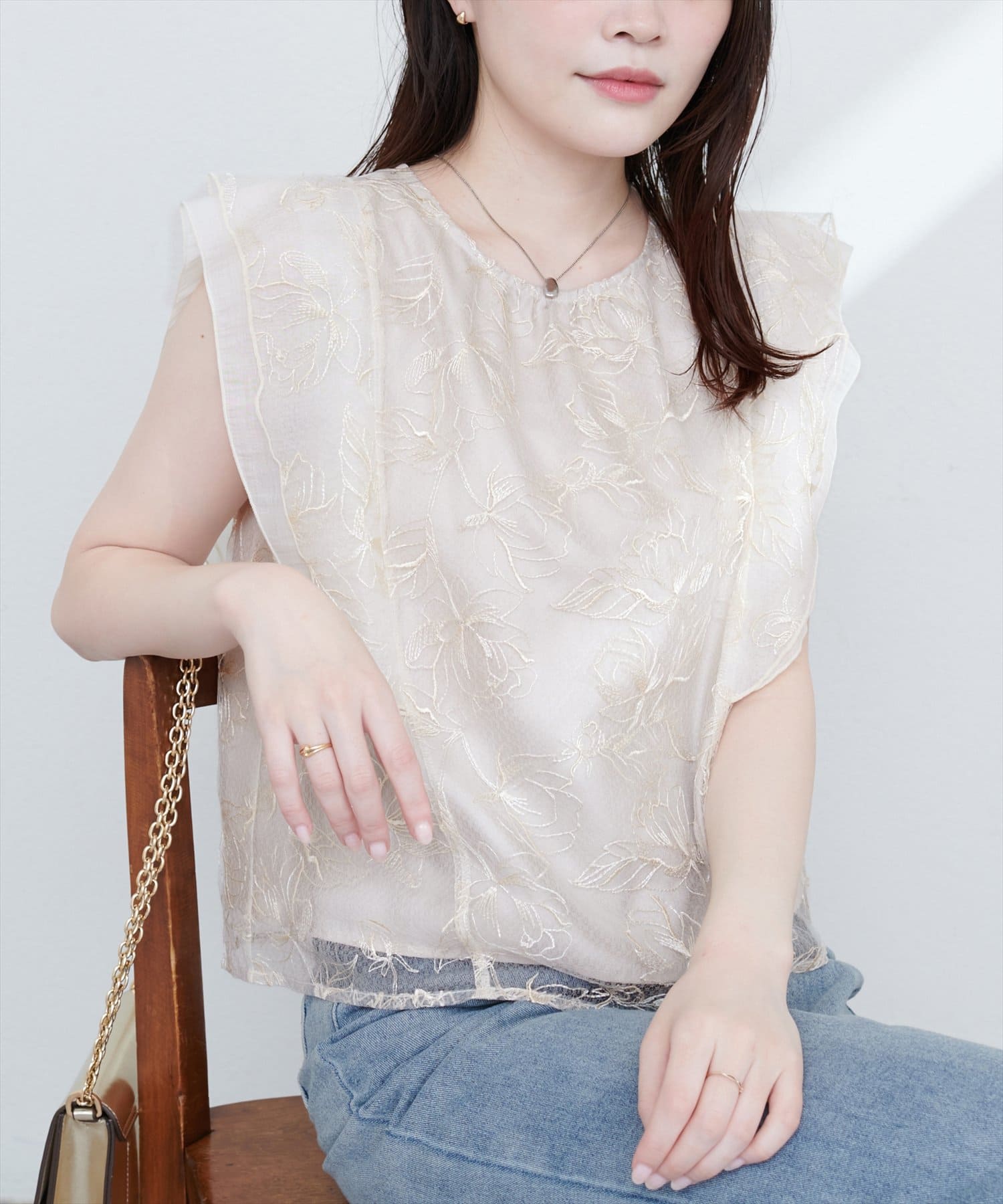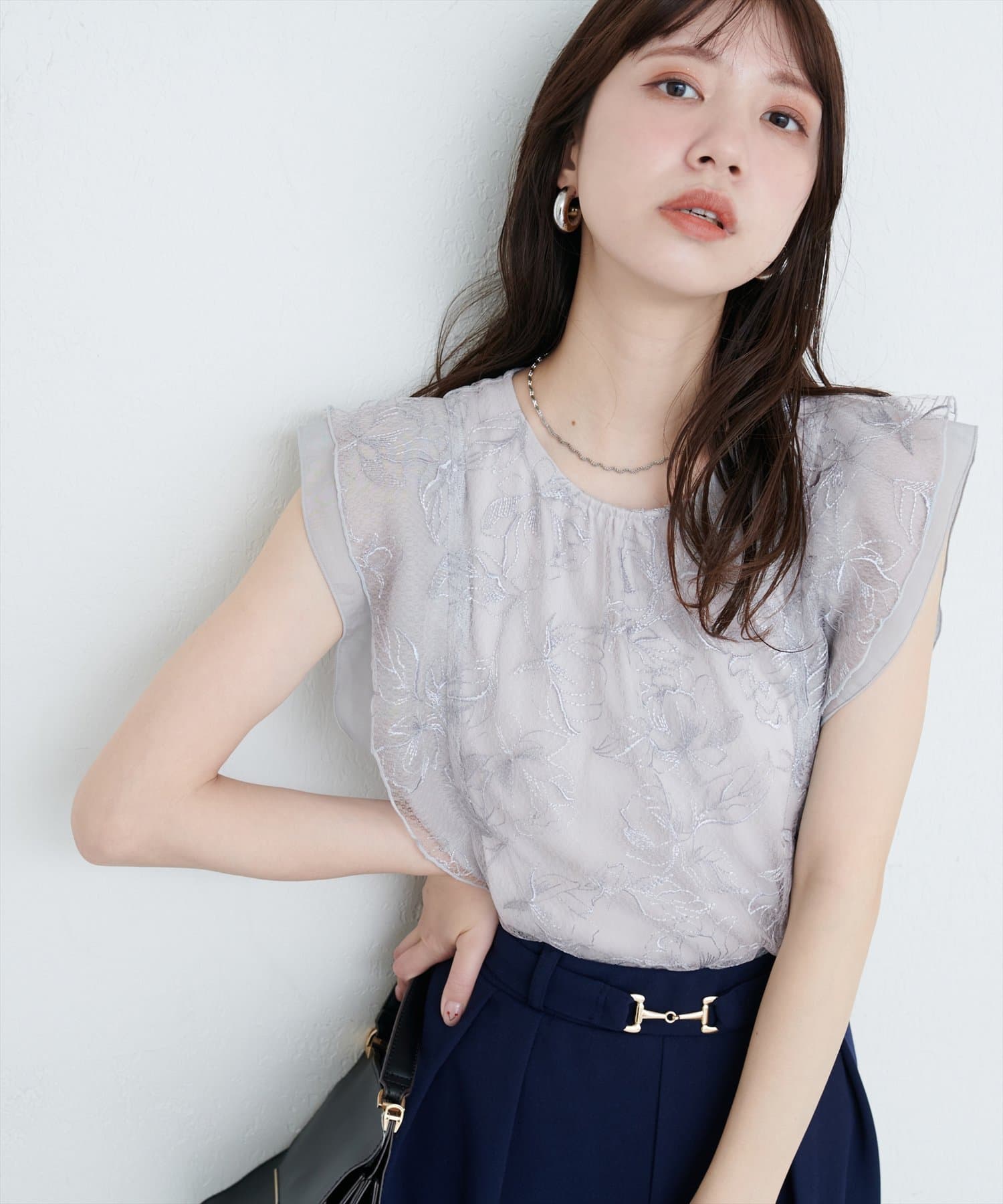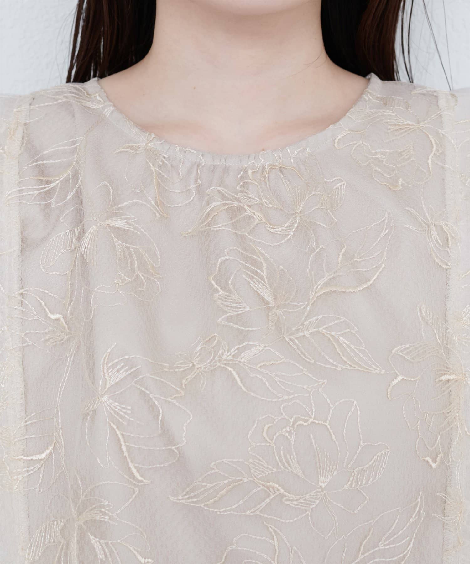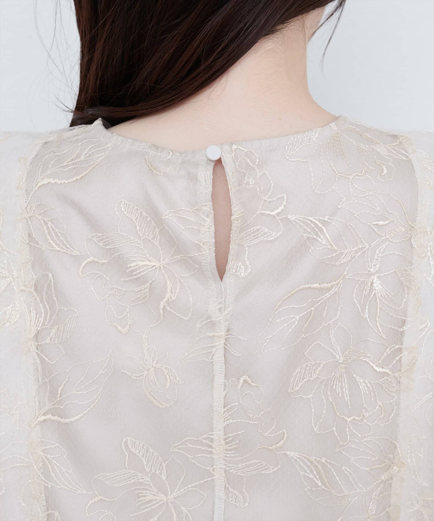 繊細な刺繍で魅せる、大人な透け感ブラウス。