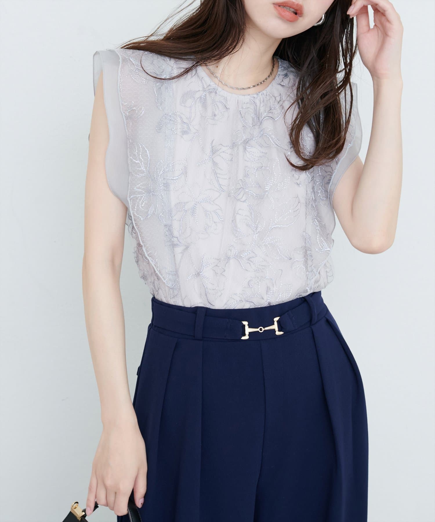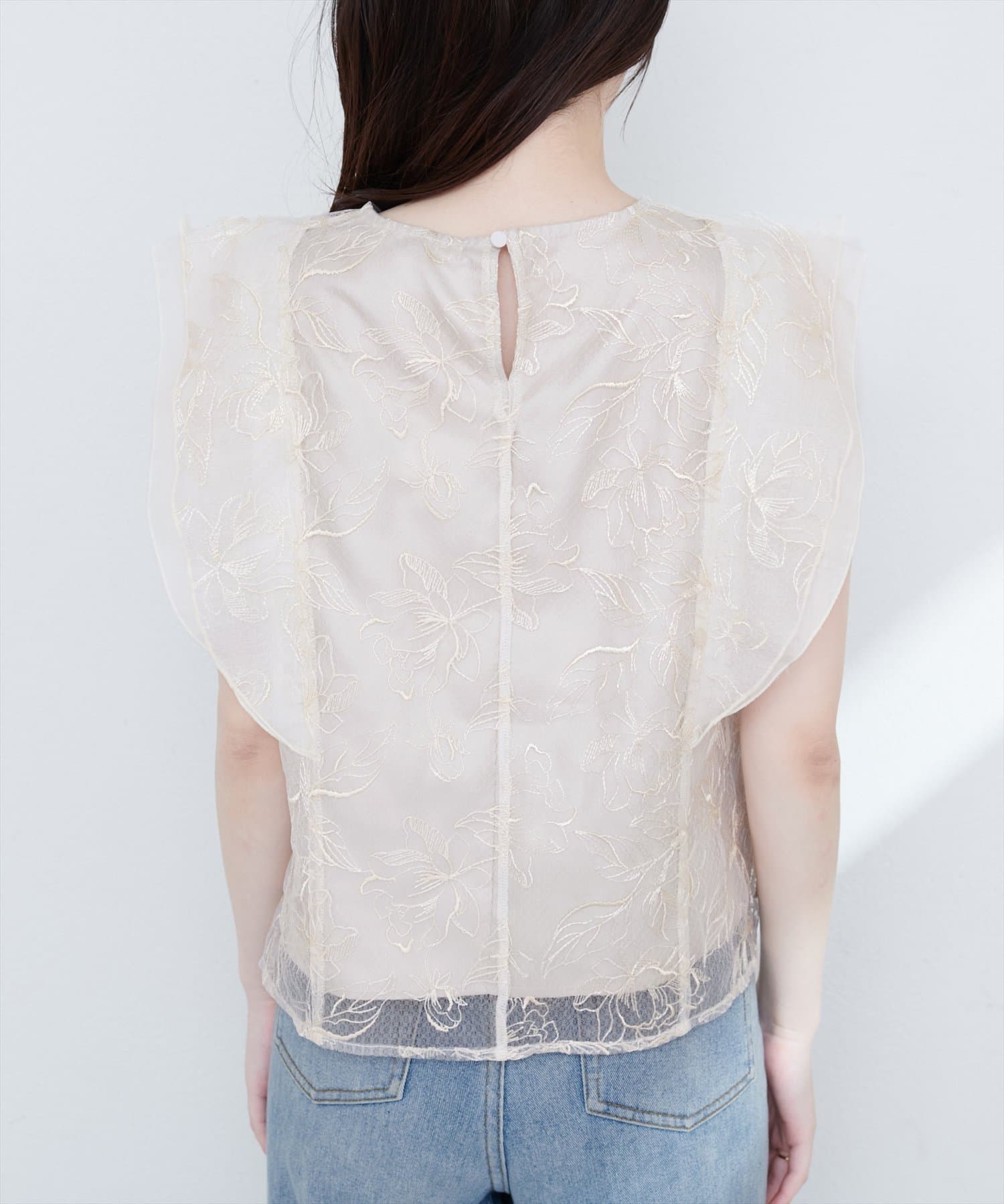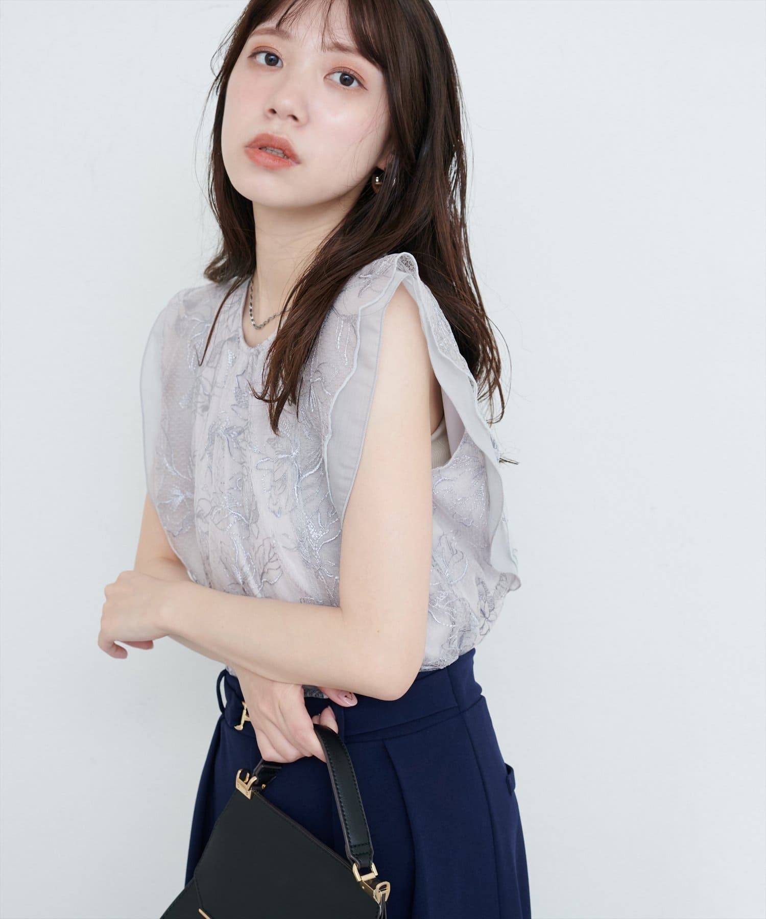 繊細な刺繍で魅せる、大人な透け感ブラウス。