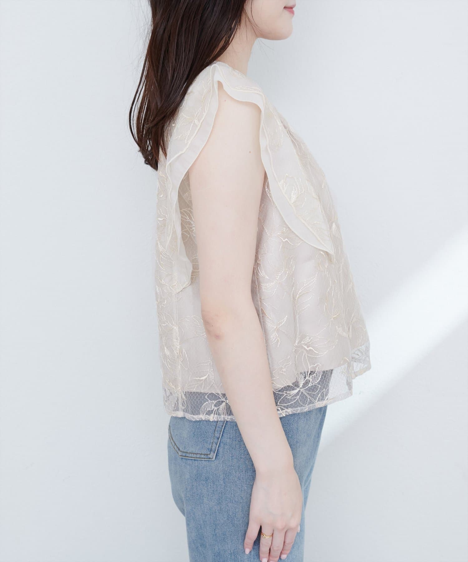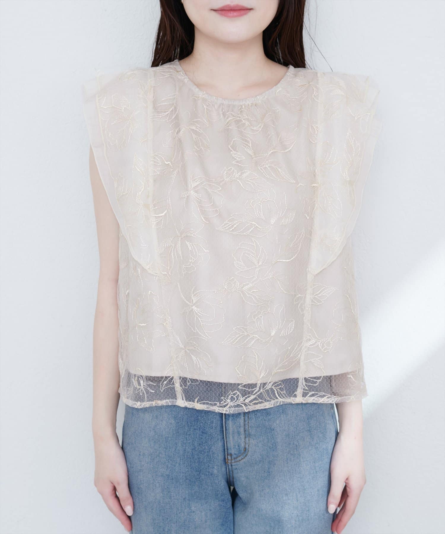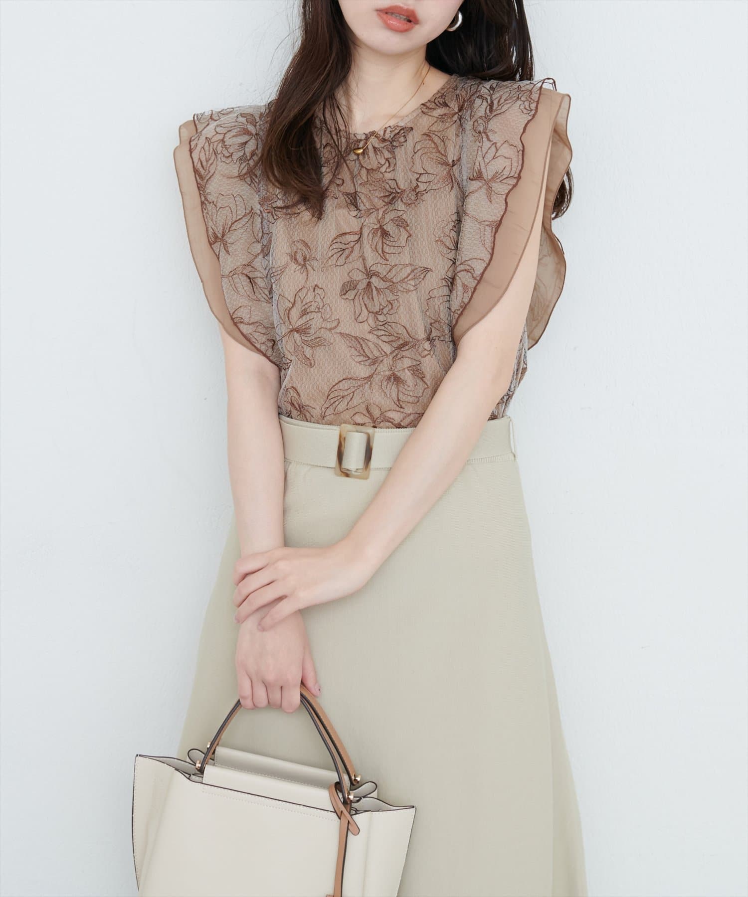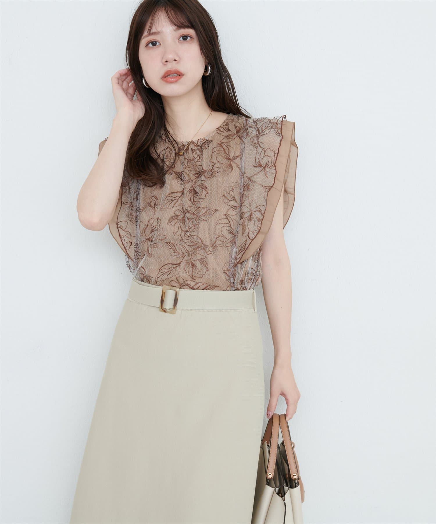 繊細な刺繍で魅せる、大人な透け感ブラウス。