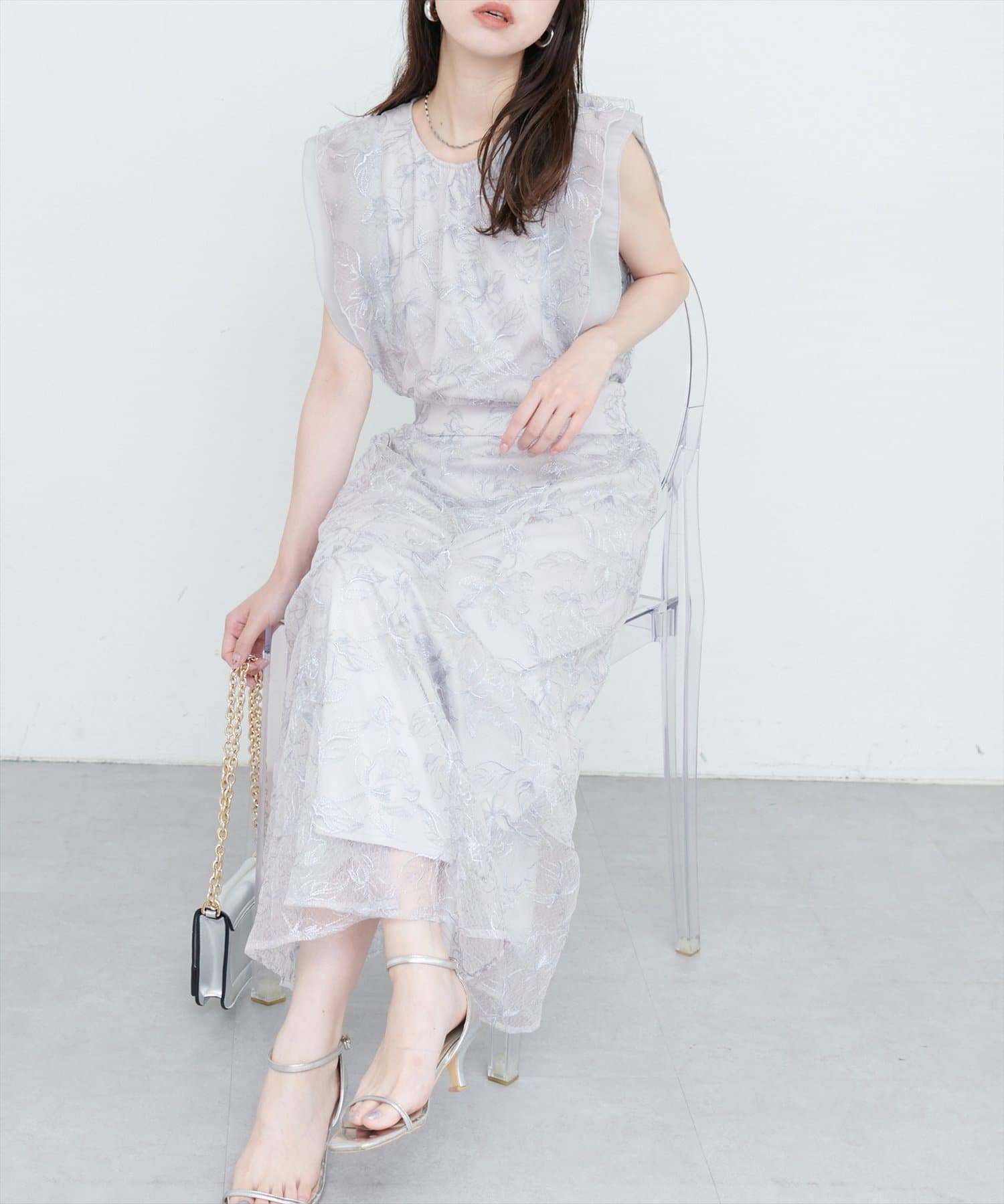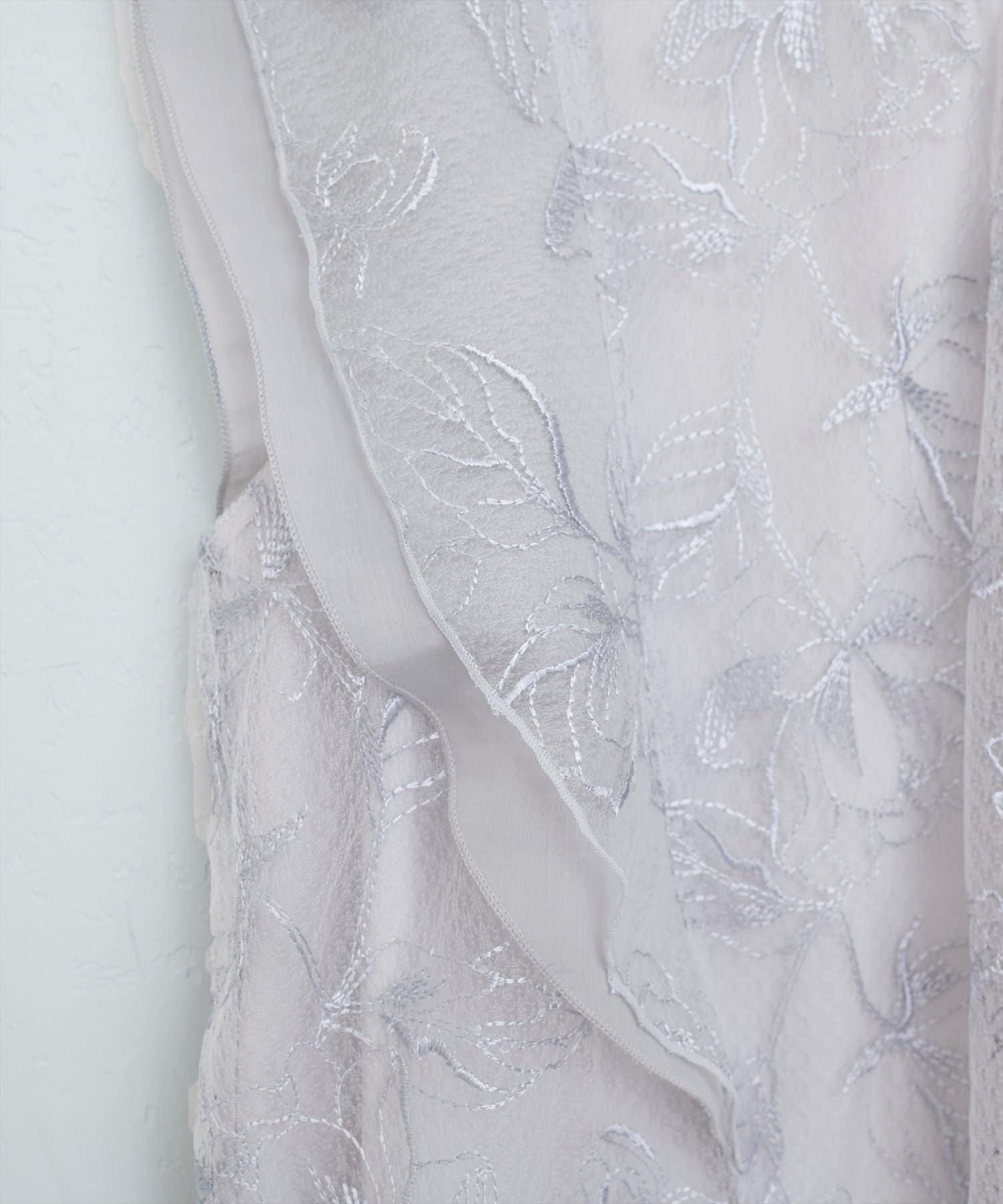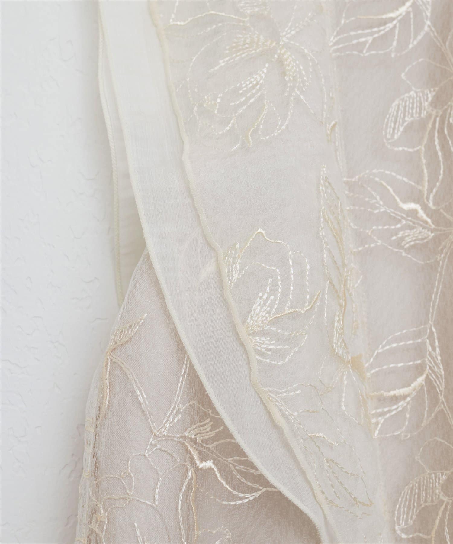 シアーな素材を重ねることで、奥行きのある表情になり、細部にまでこだわった刺繍が、華やかさをプラス。