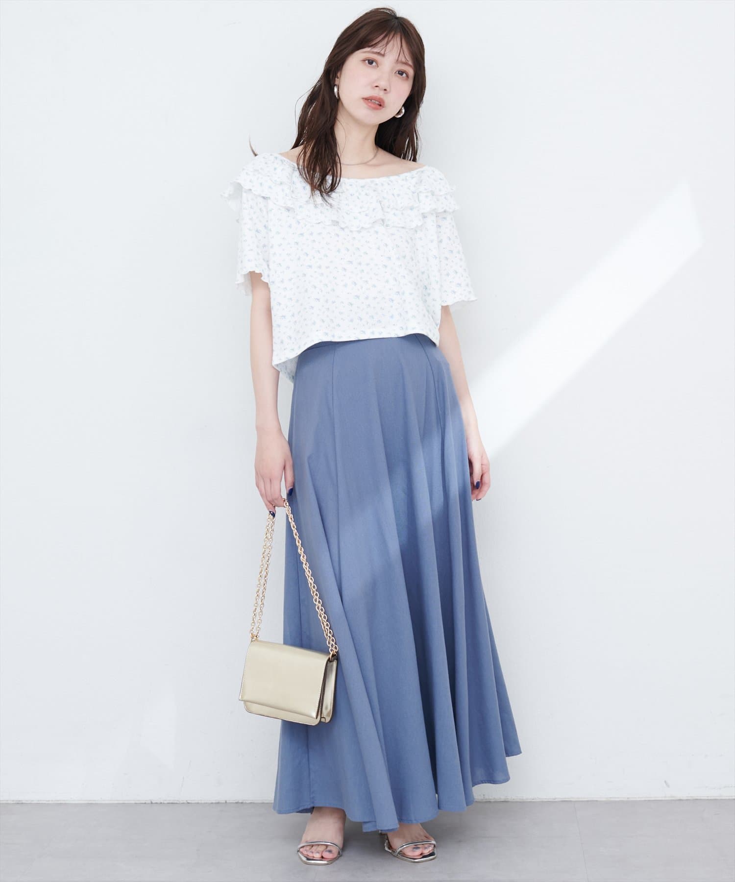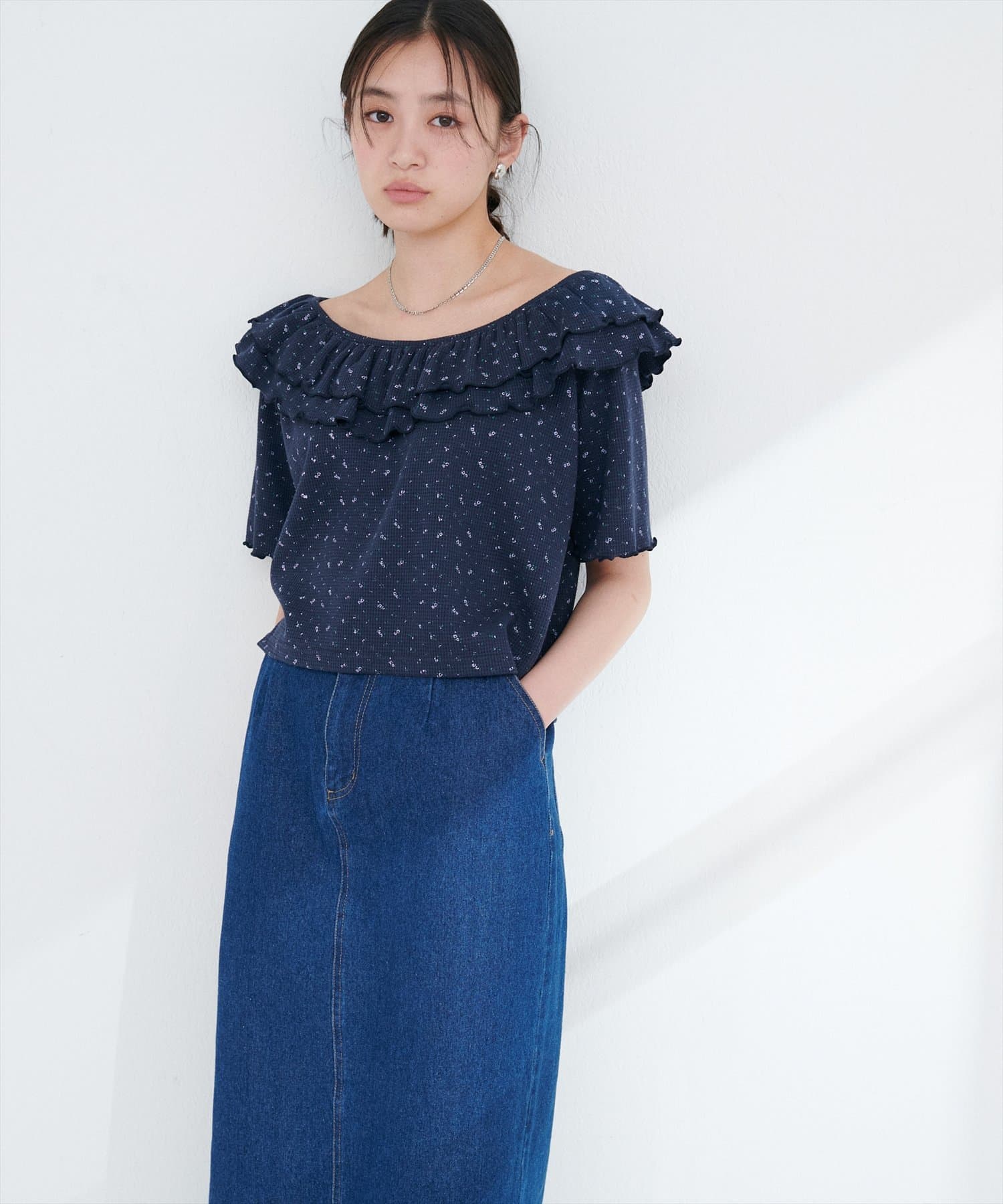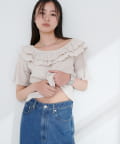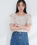 ネックラインを飾るフリルが顔周りを華やかに見せてくれます。