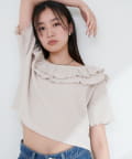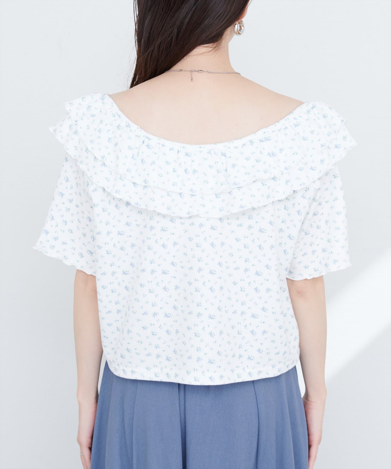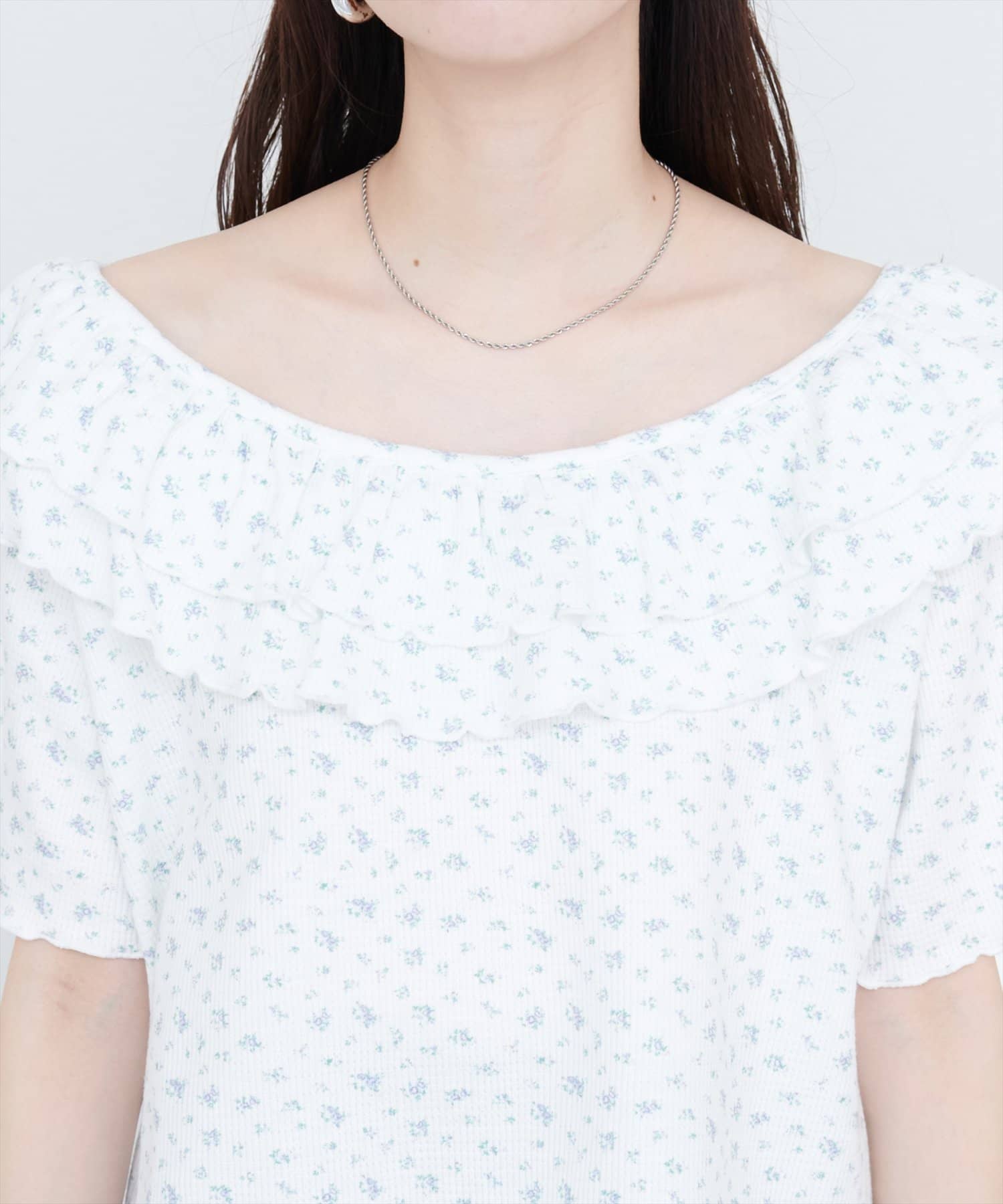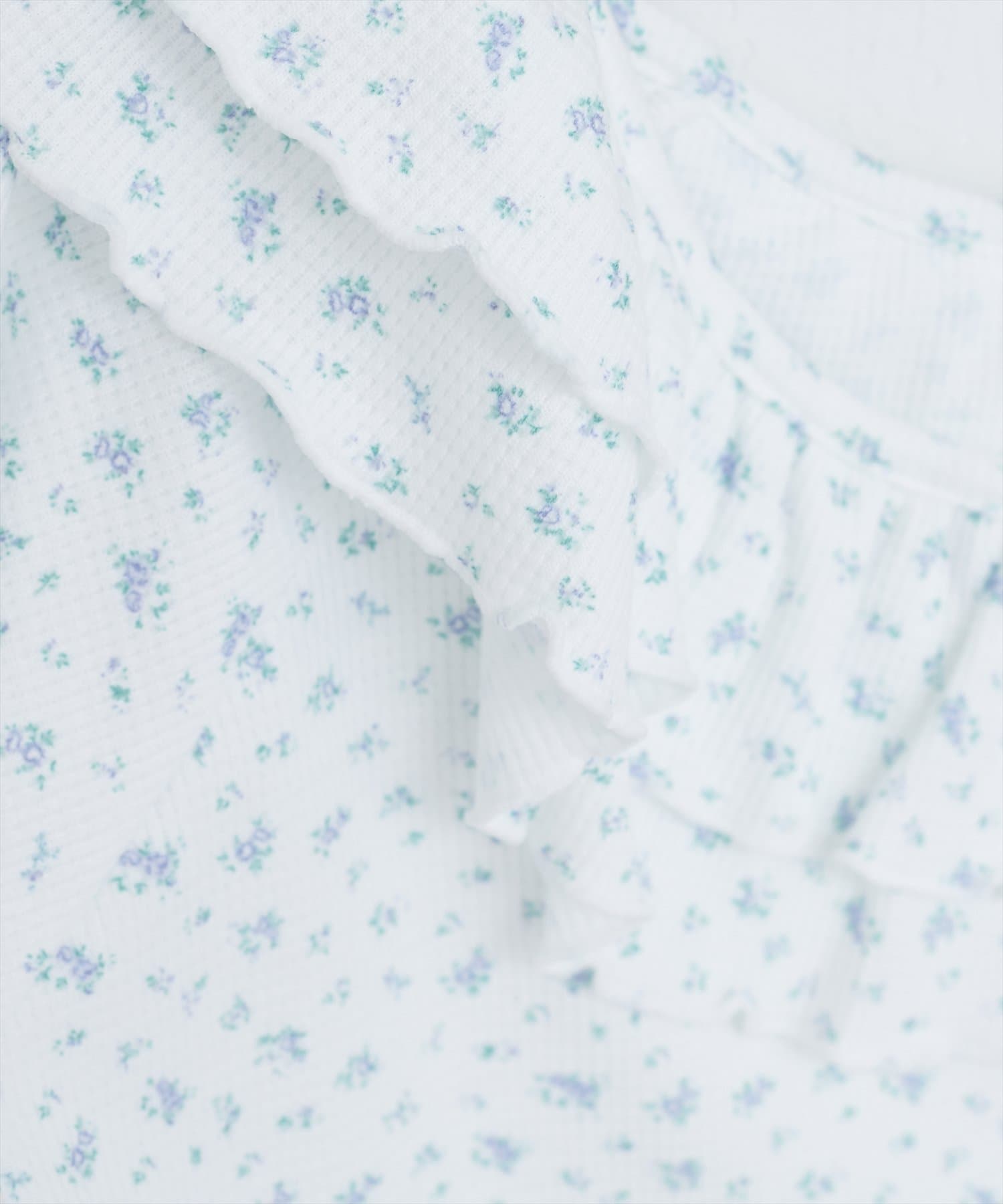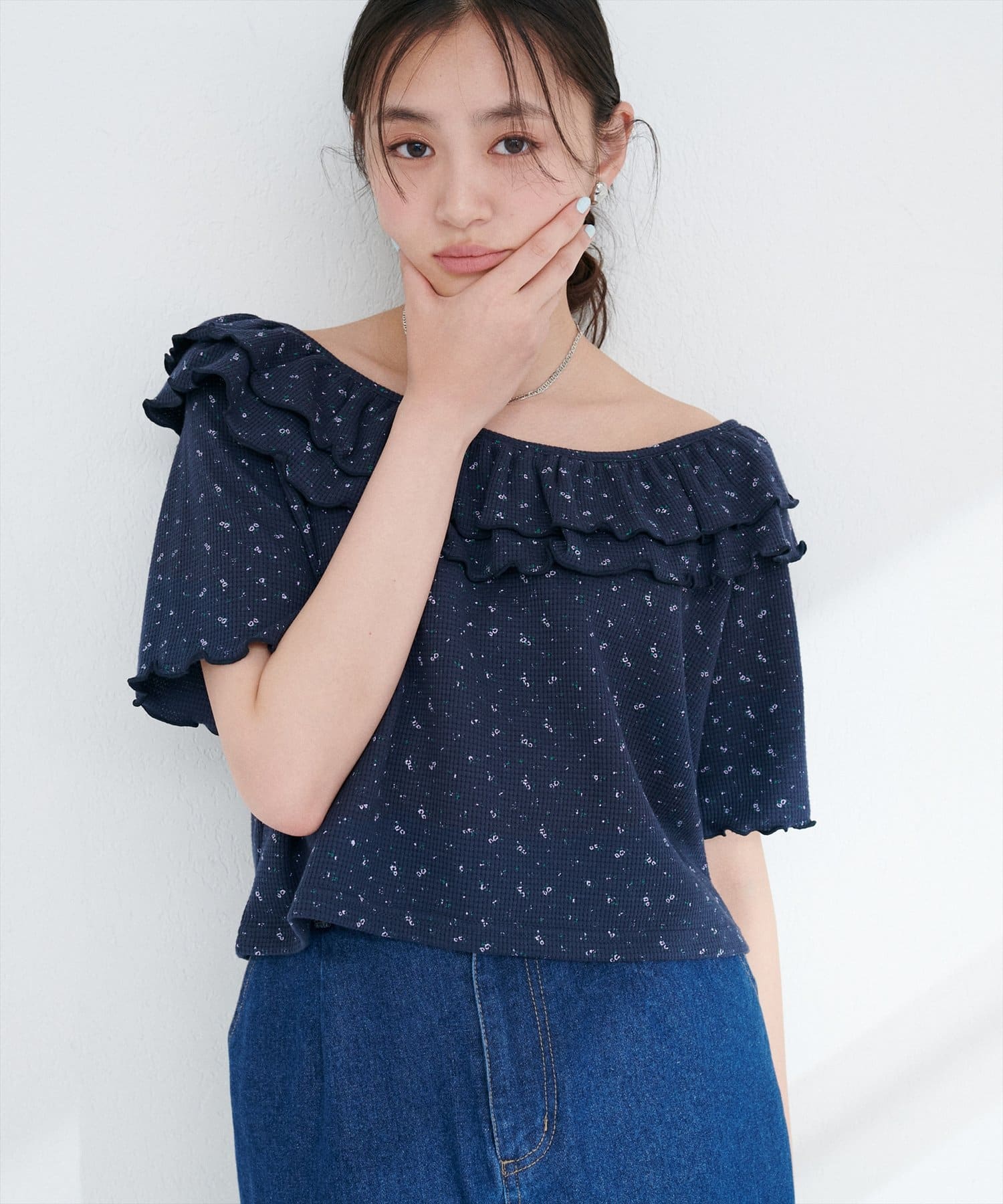 ふんわりフリルが大人可愛く、着回し力抜群のワッフルカットソー 。