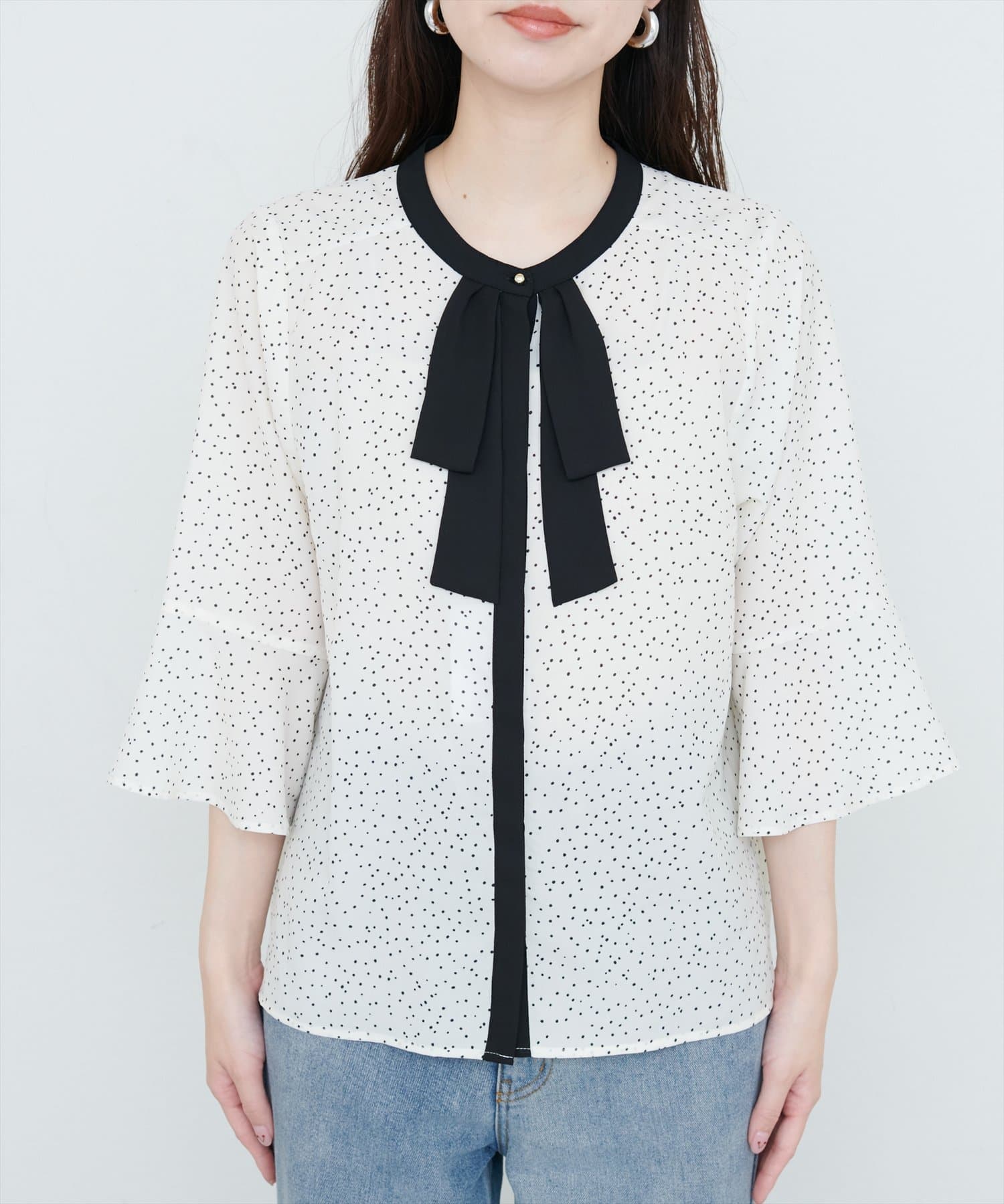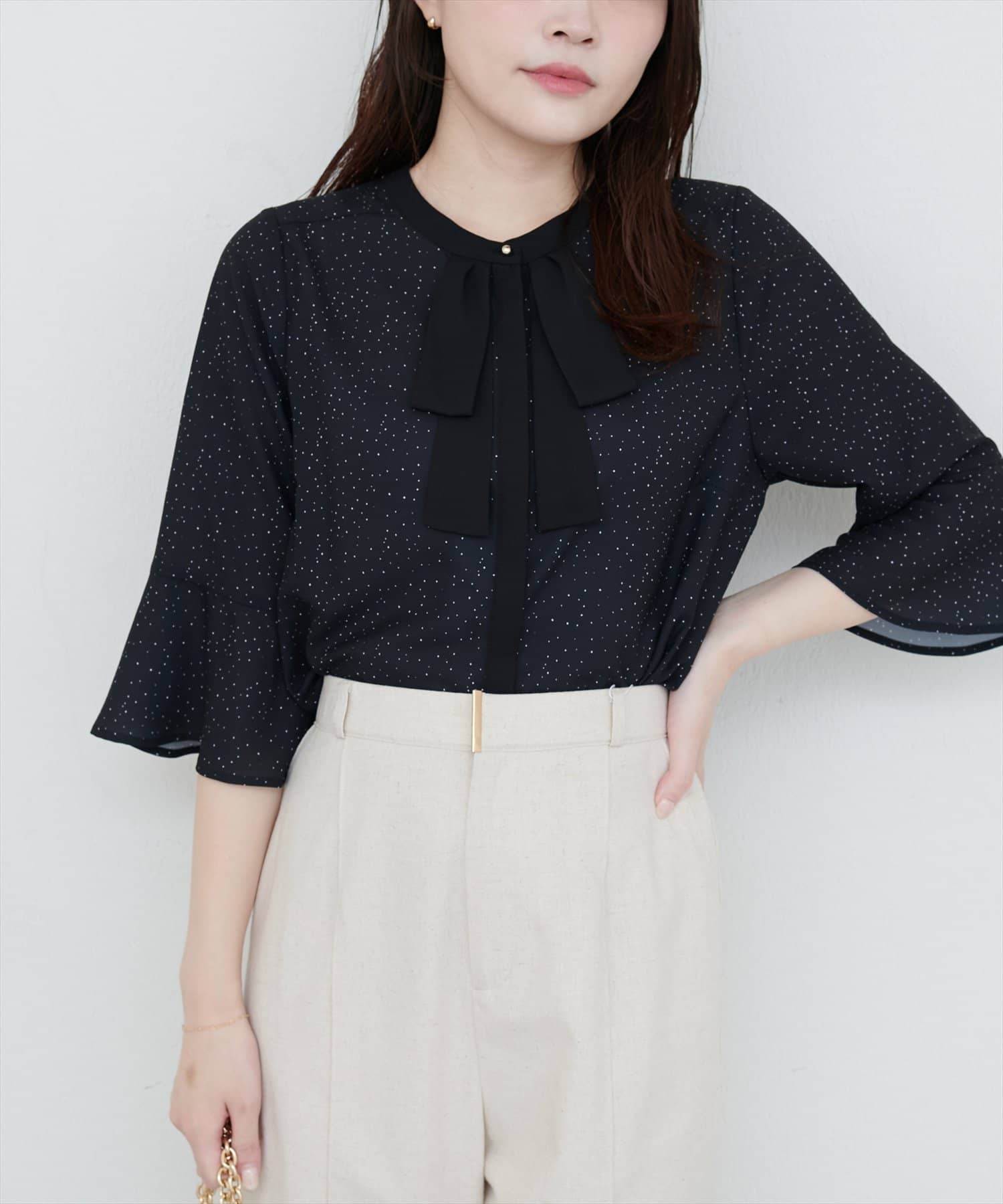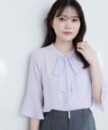 フレアカフス袖リボンボウタイブラウス