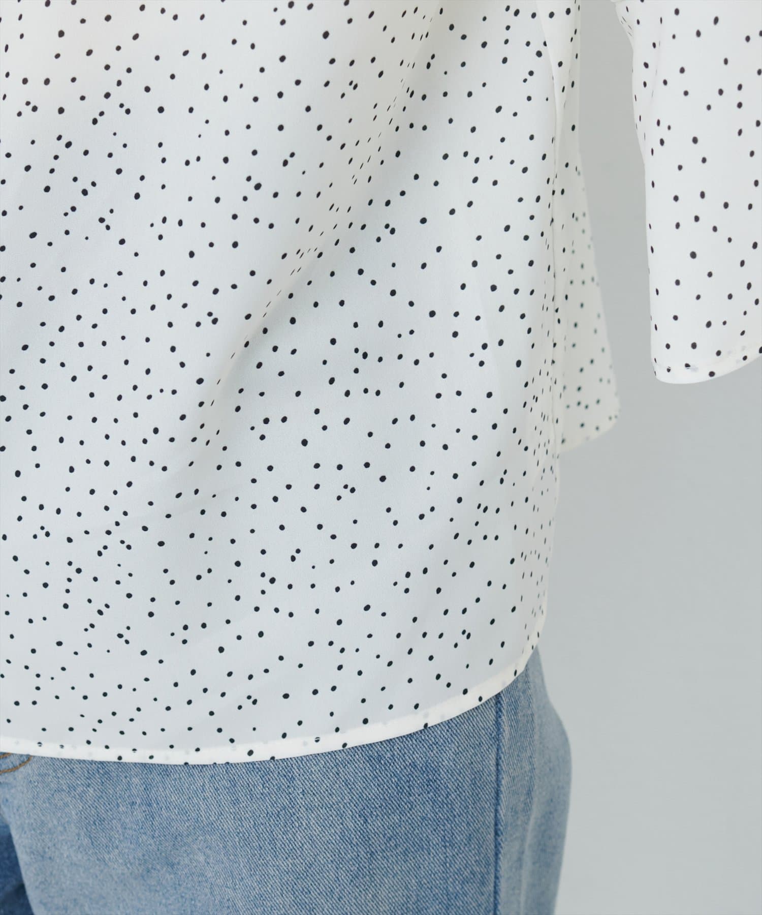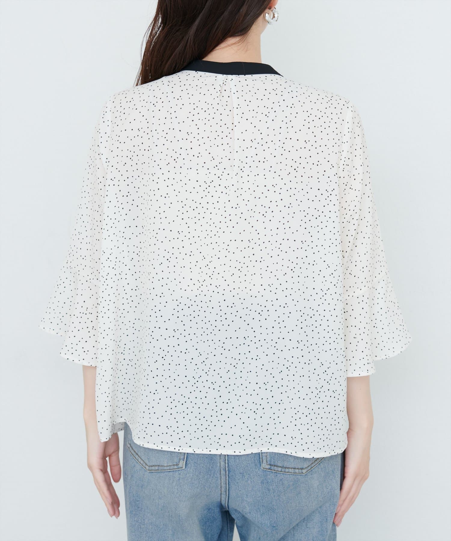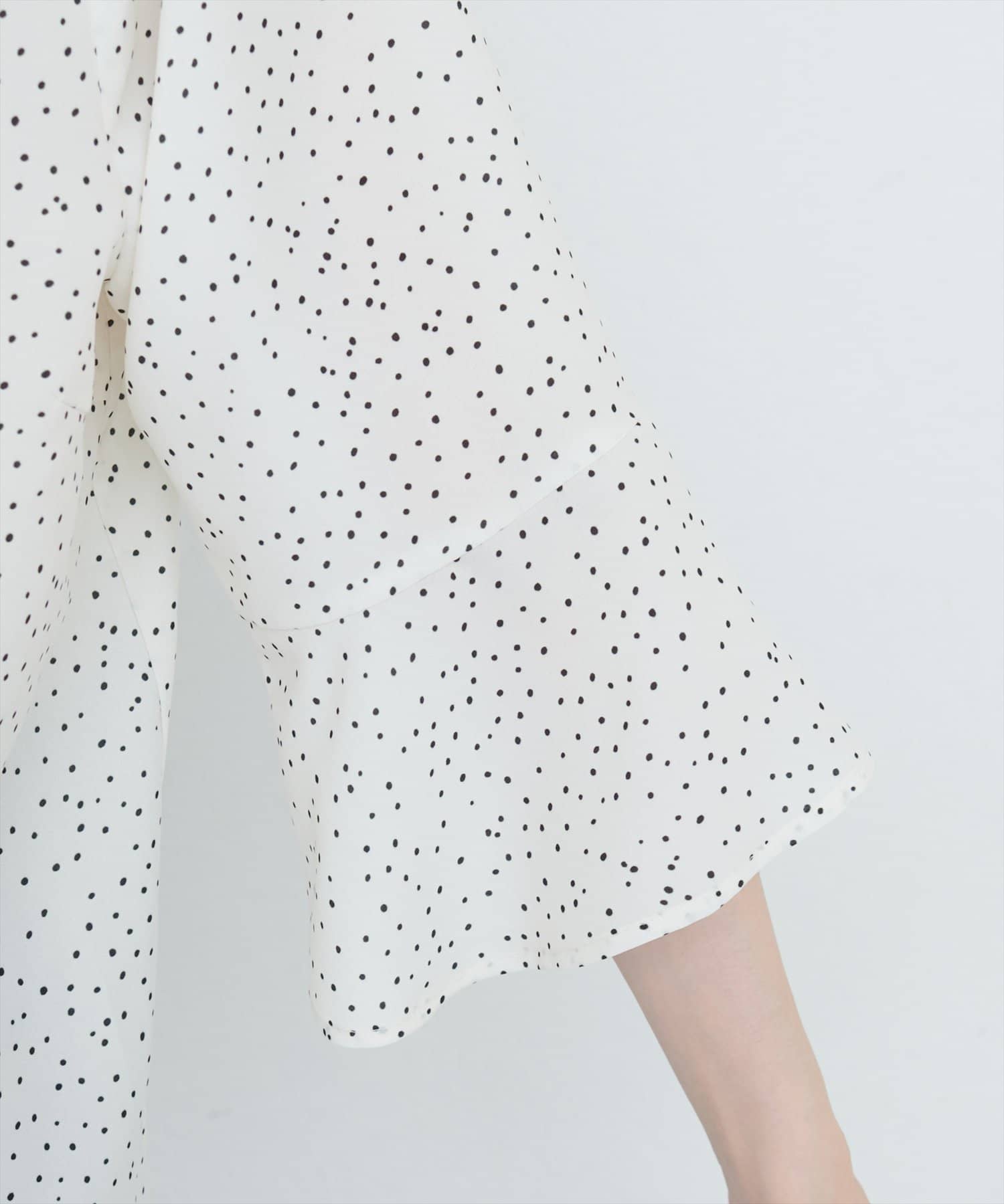 袖口のフレアデザインは、手元を華奢に見せてくれるだけでなく、動きのあるシルエットを作り出し、コーディネートに軽やかさを与えます。