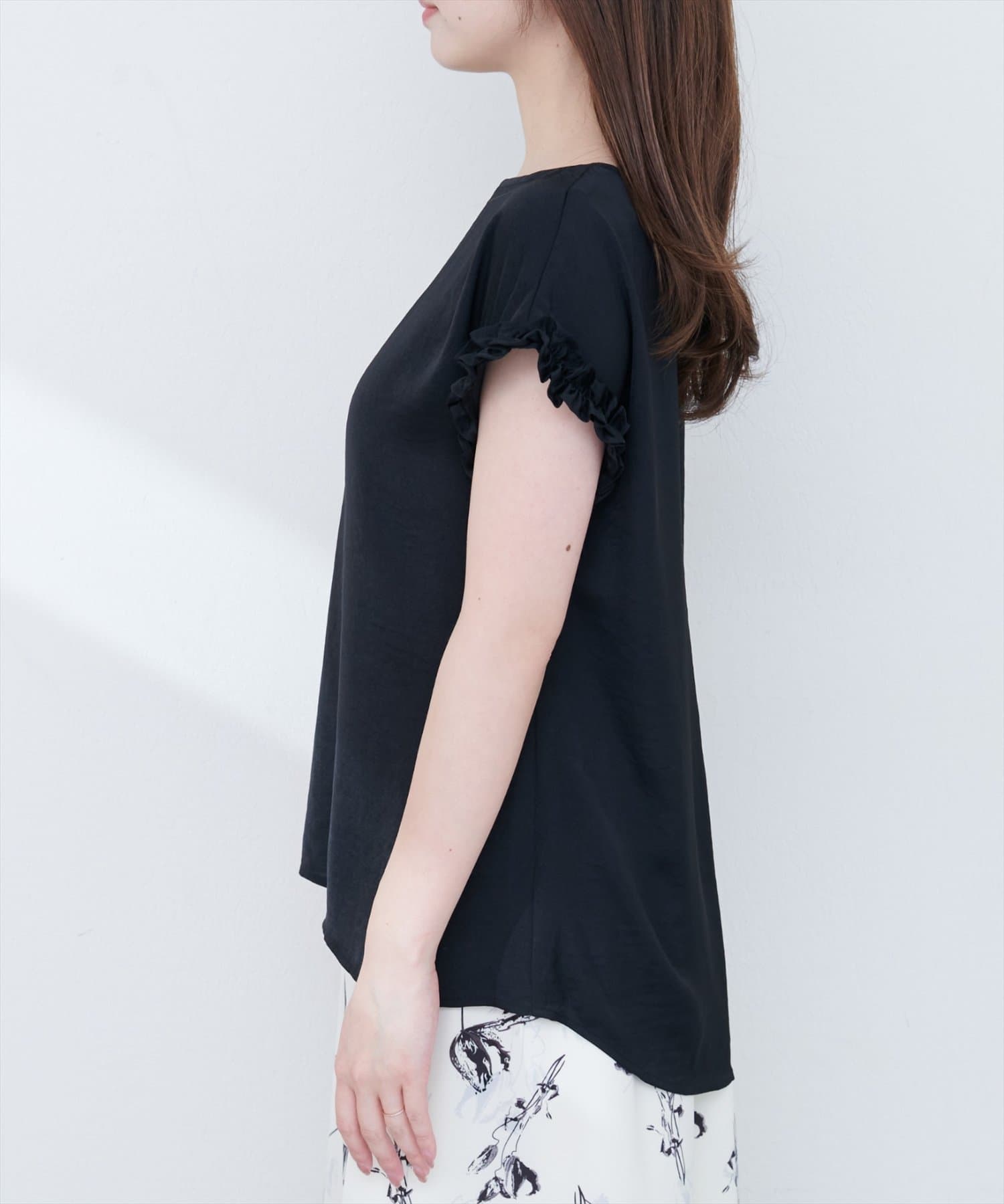 袖口フリルTブラウス