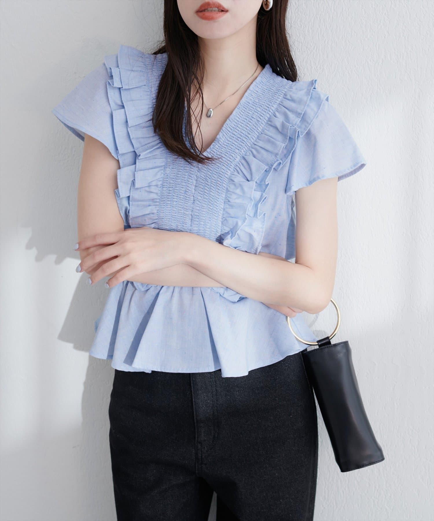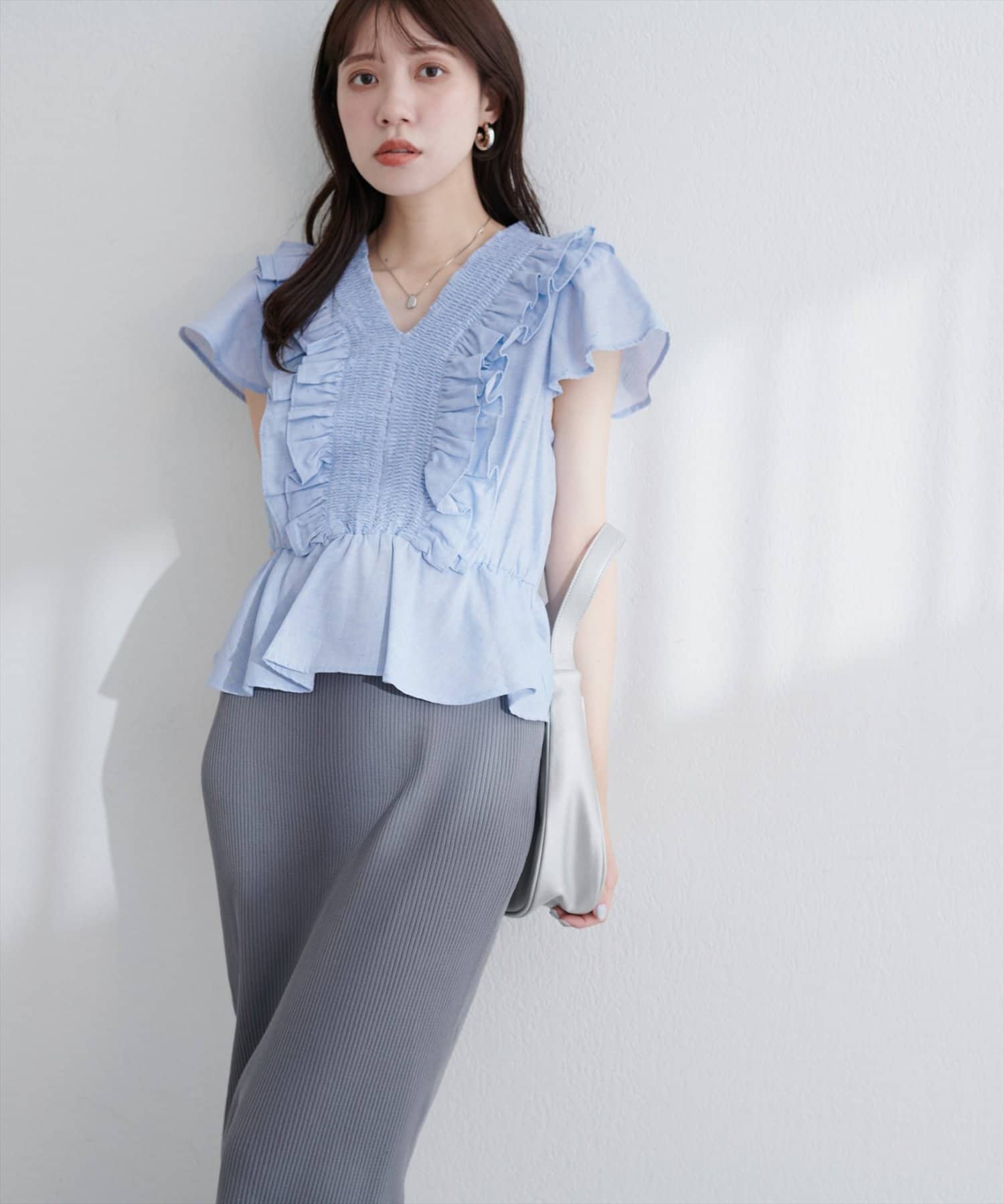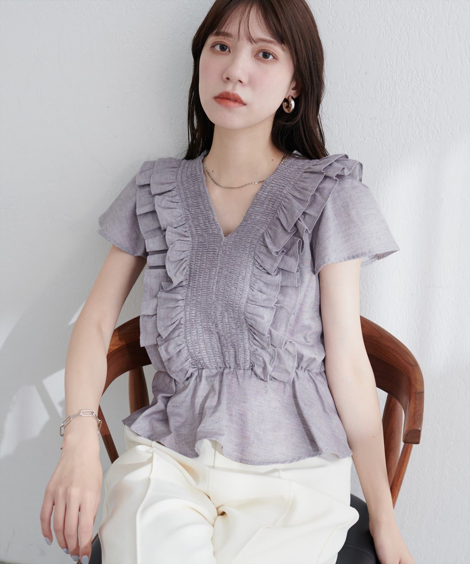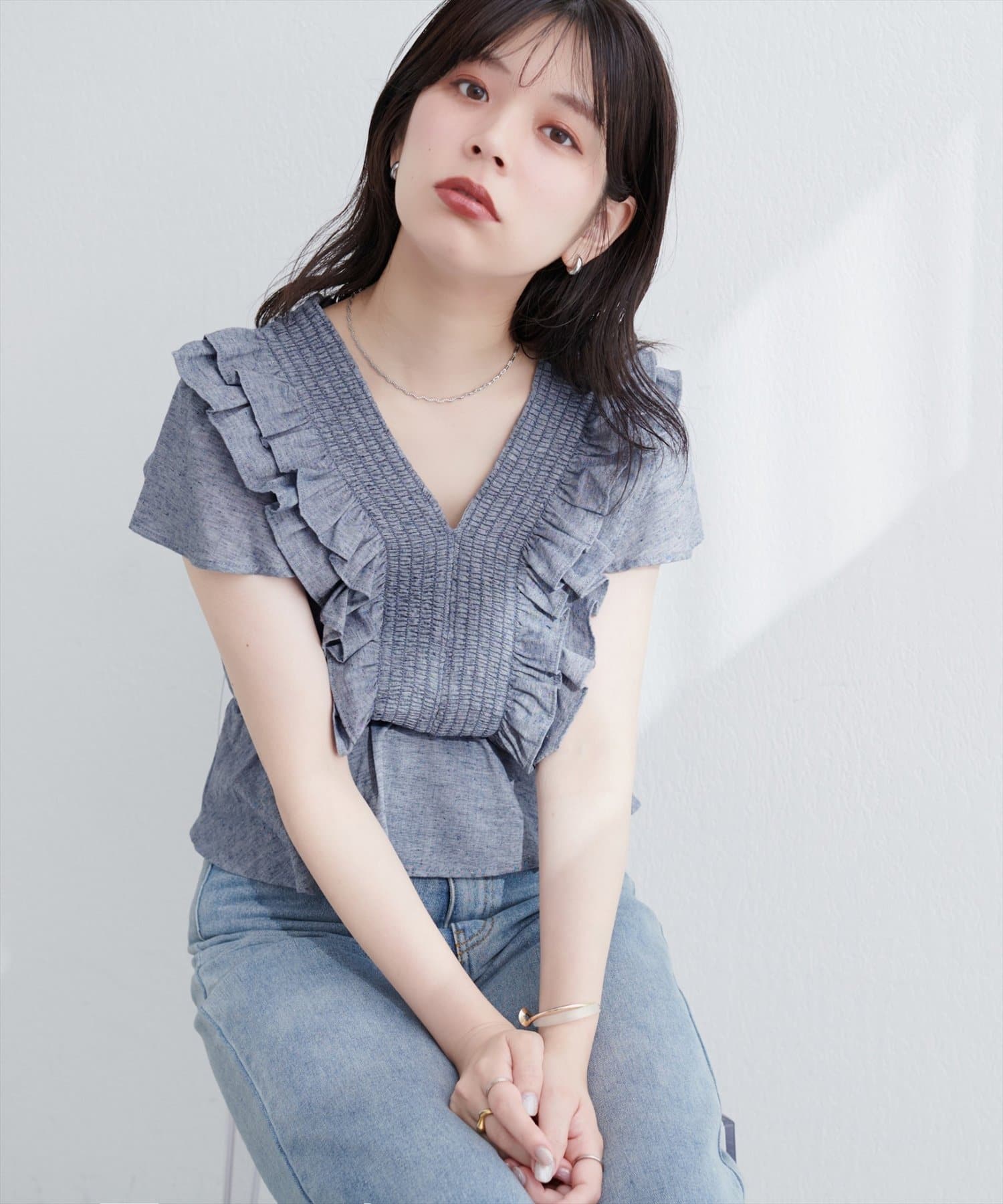 繊細なフリルが目を惹く、フェミニンブラウス。