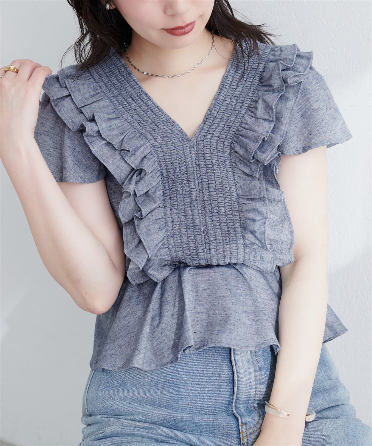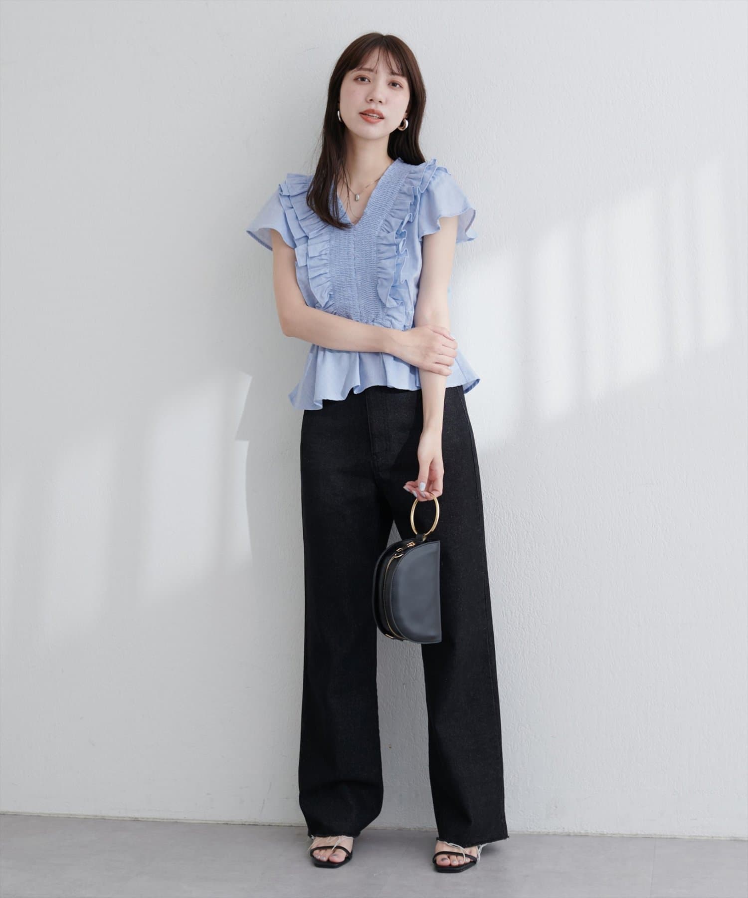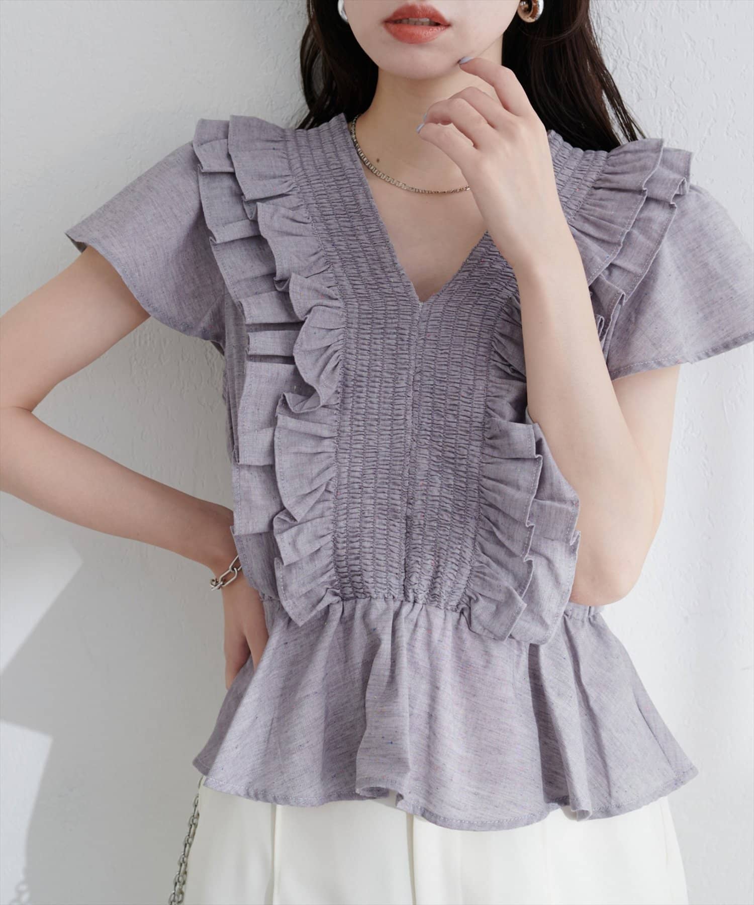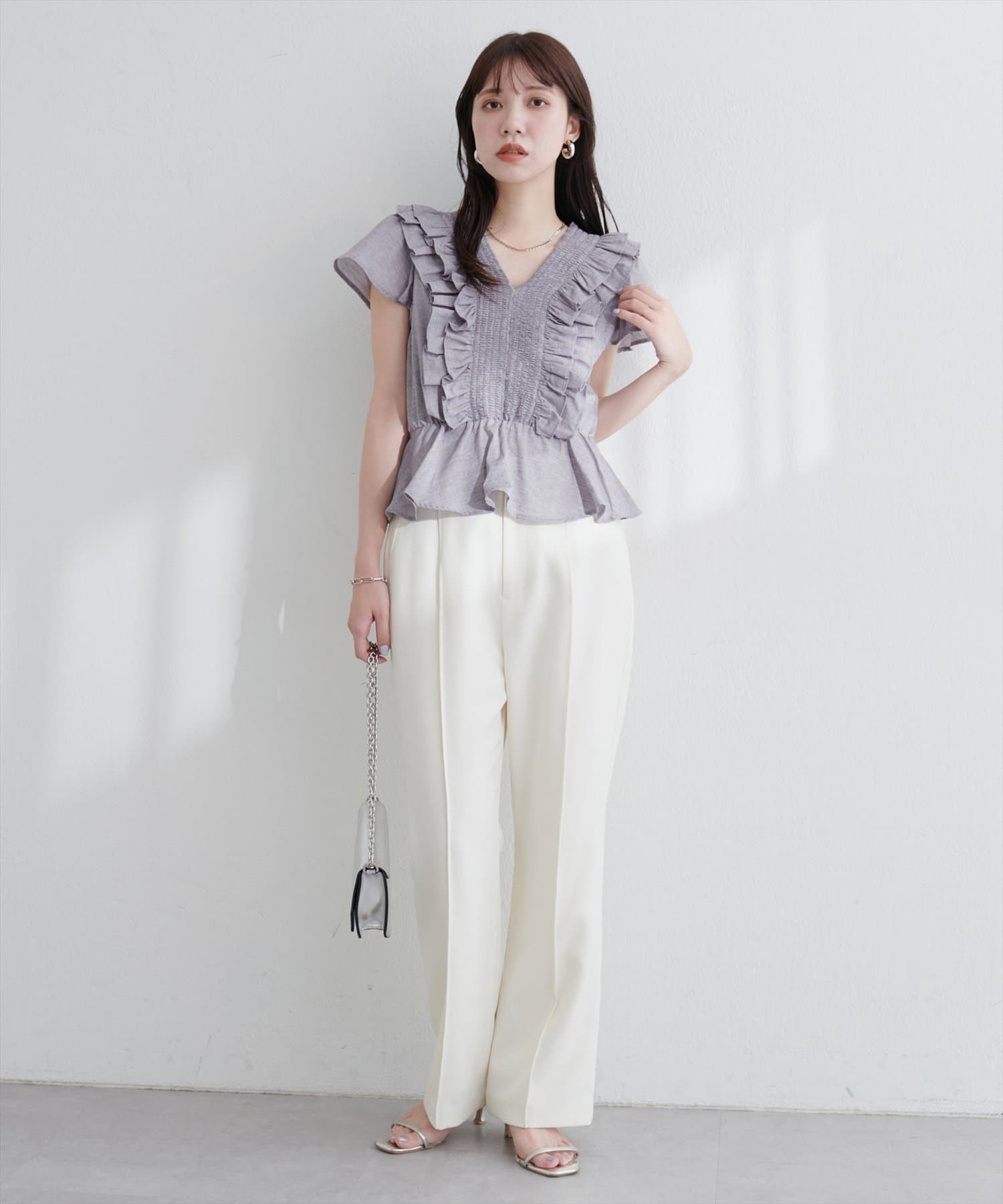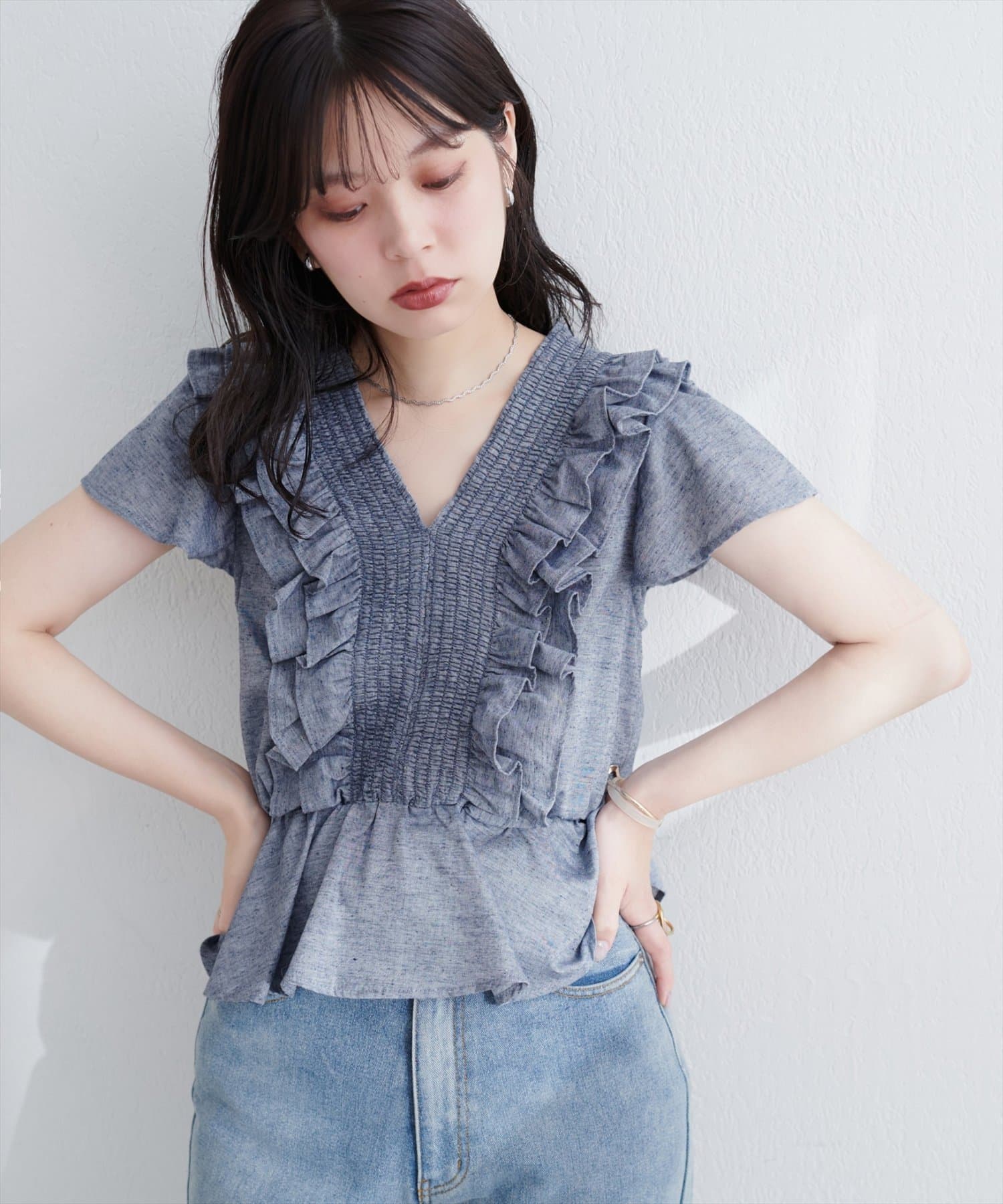 繊細なフリルが目を惹く、フェミニンブラウス。