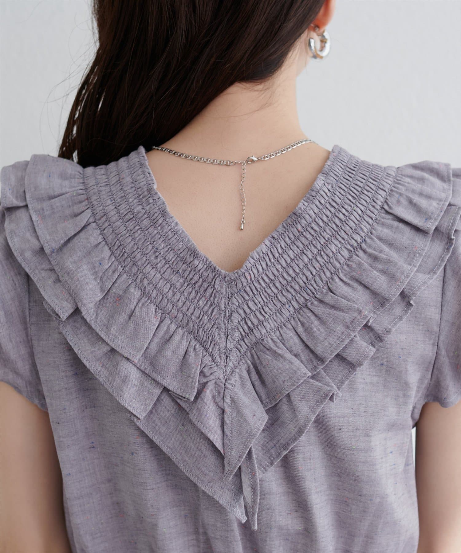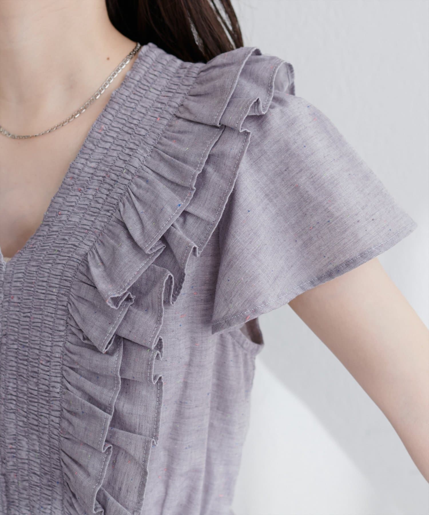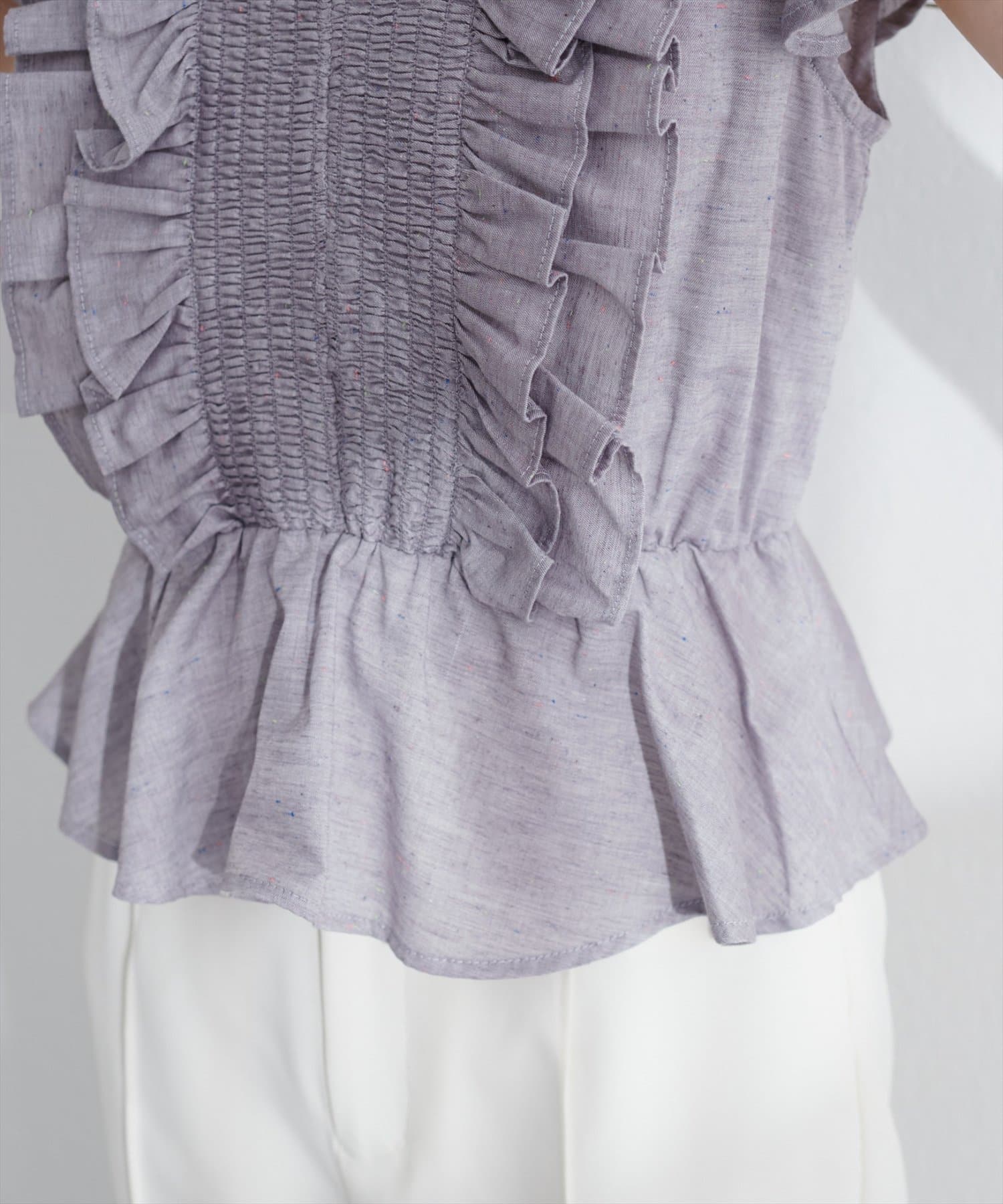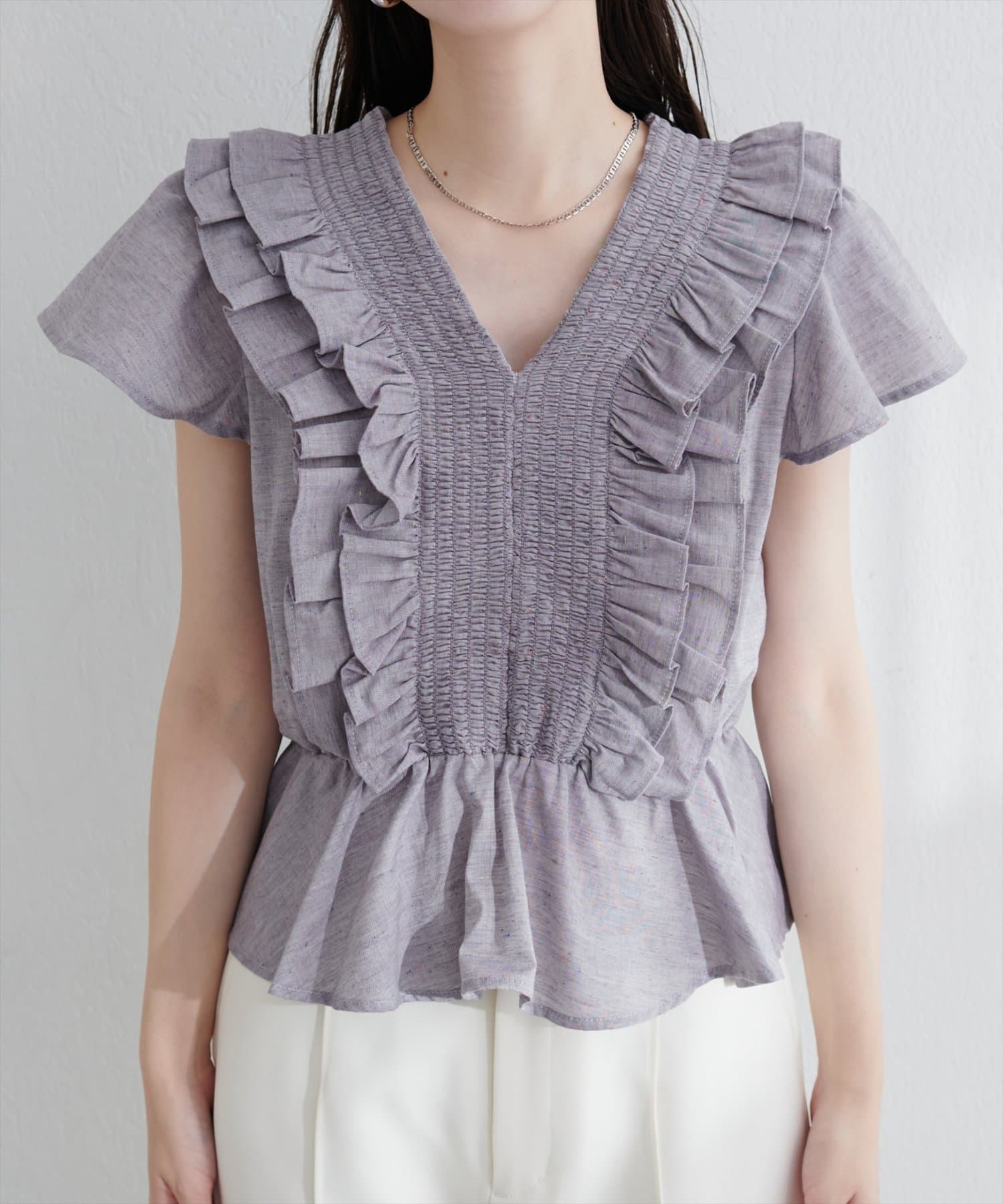 繊細なフリルが目を惹く、フェミニンブラウス。