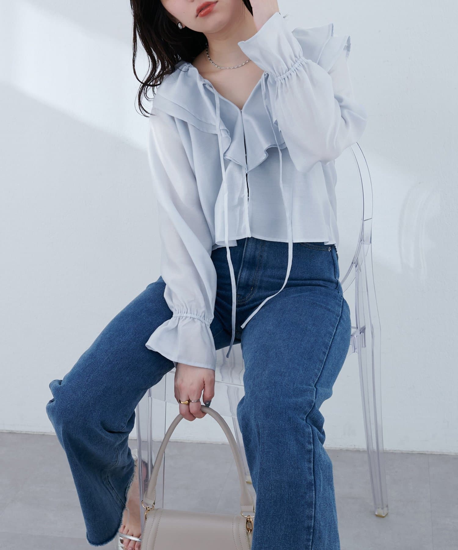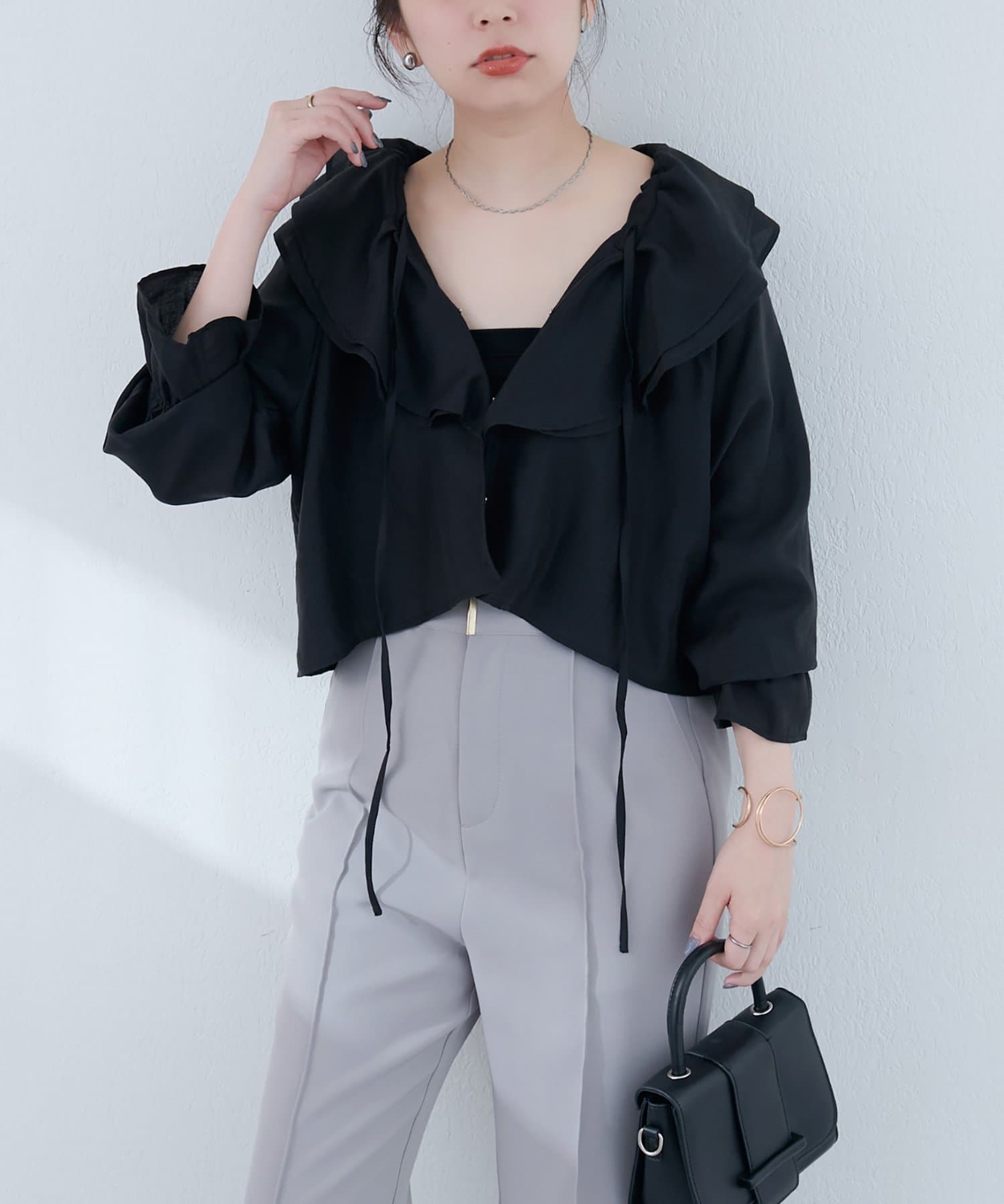 【sherbet line】接触冷感 ラッフル羽織ブラウス