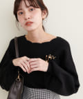 衿ぐり刺繍スカラップニット