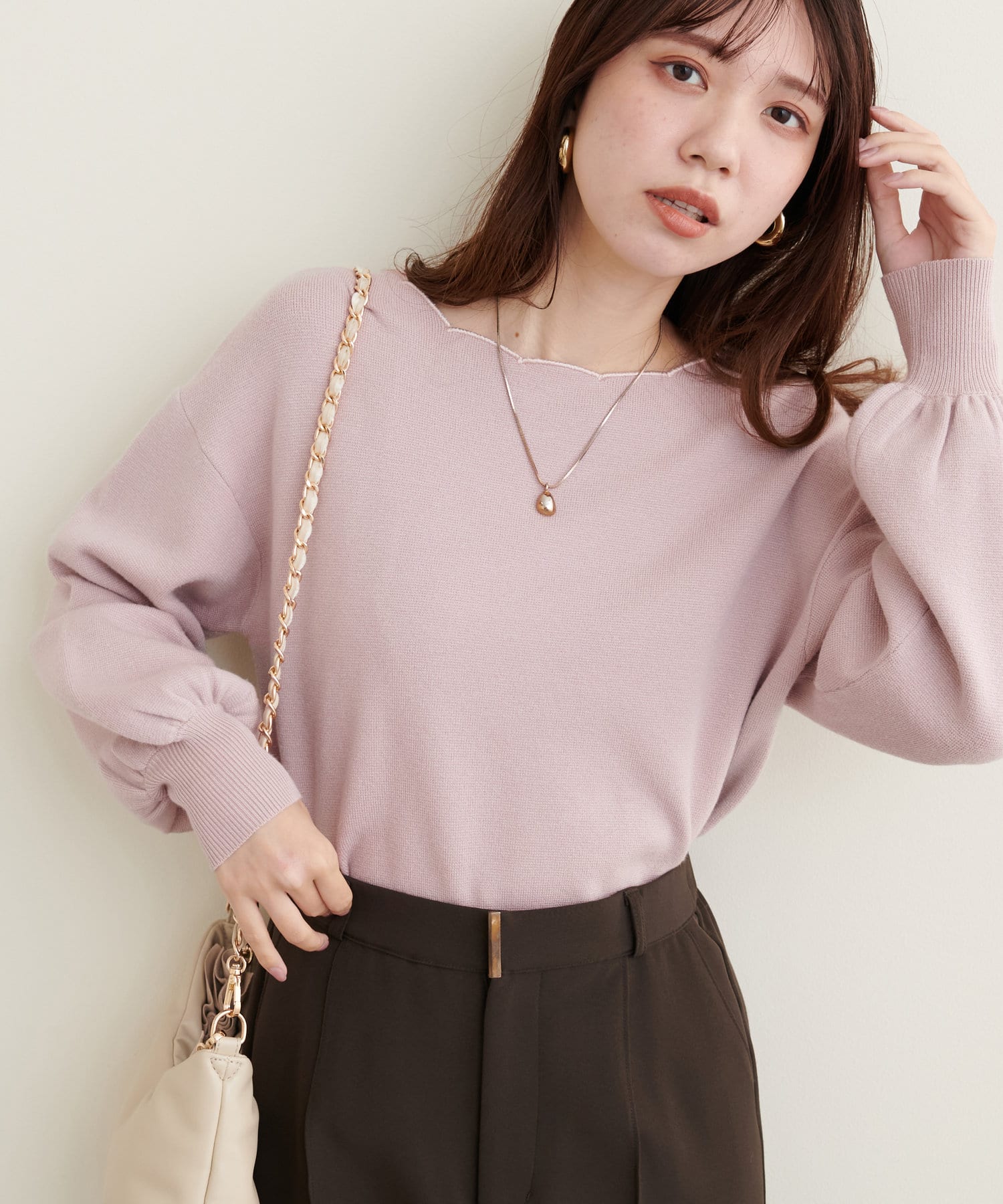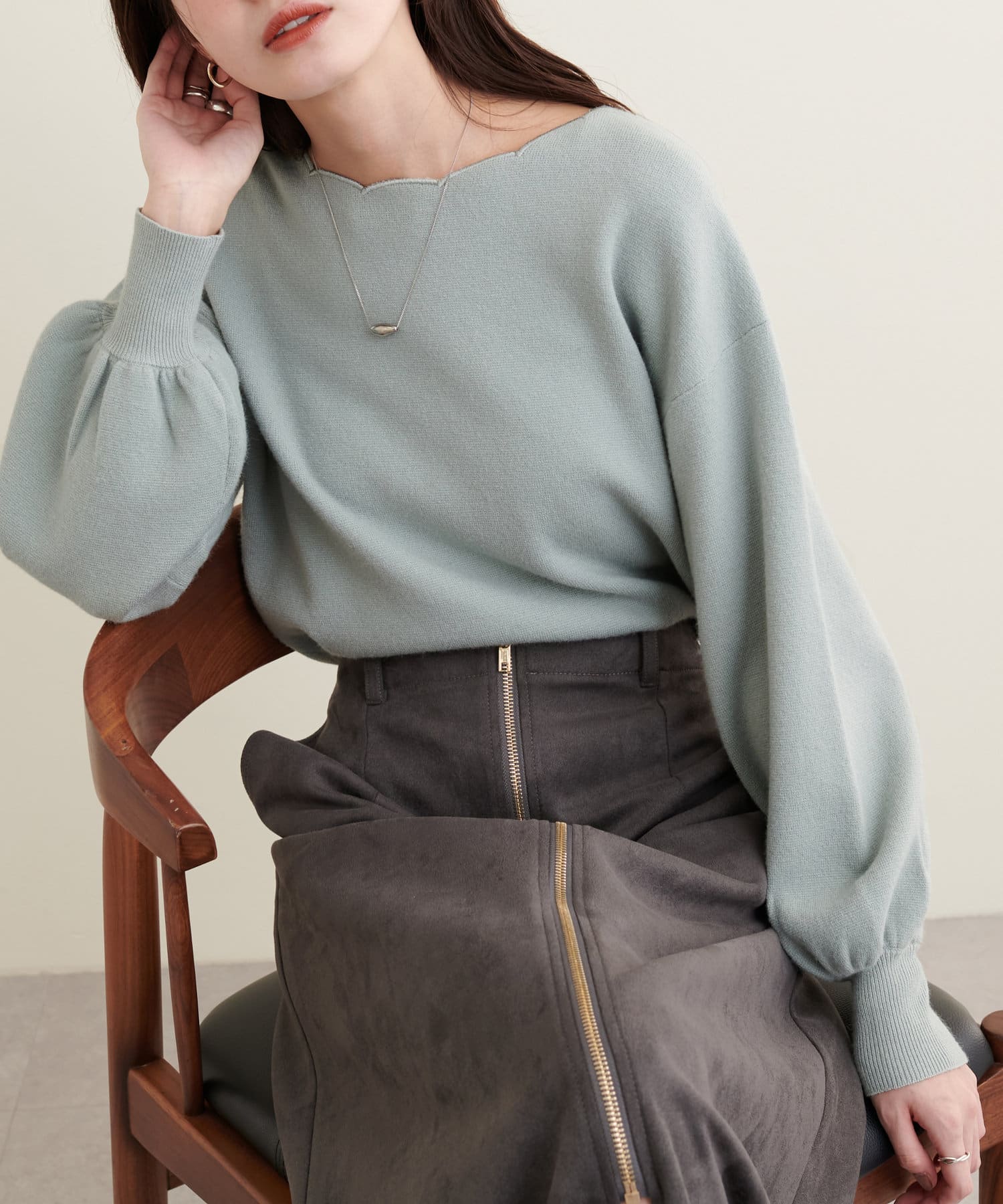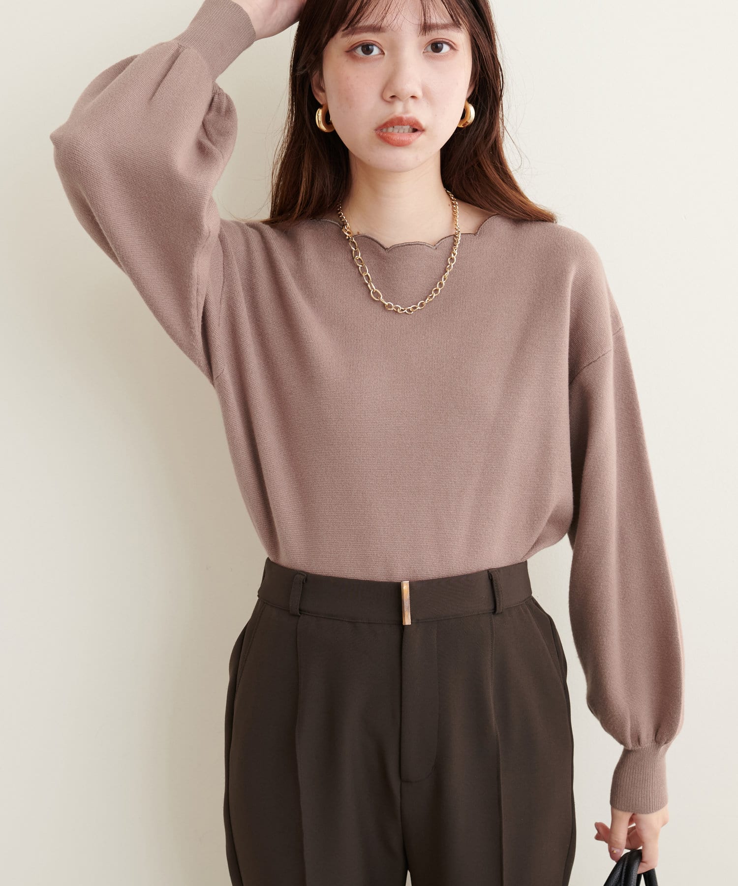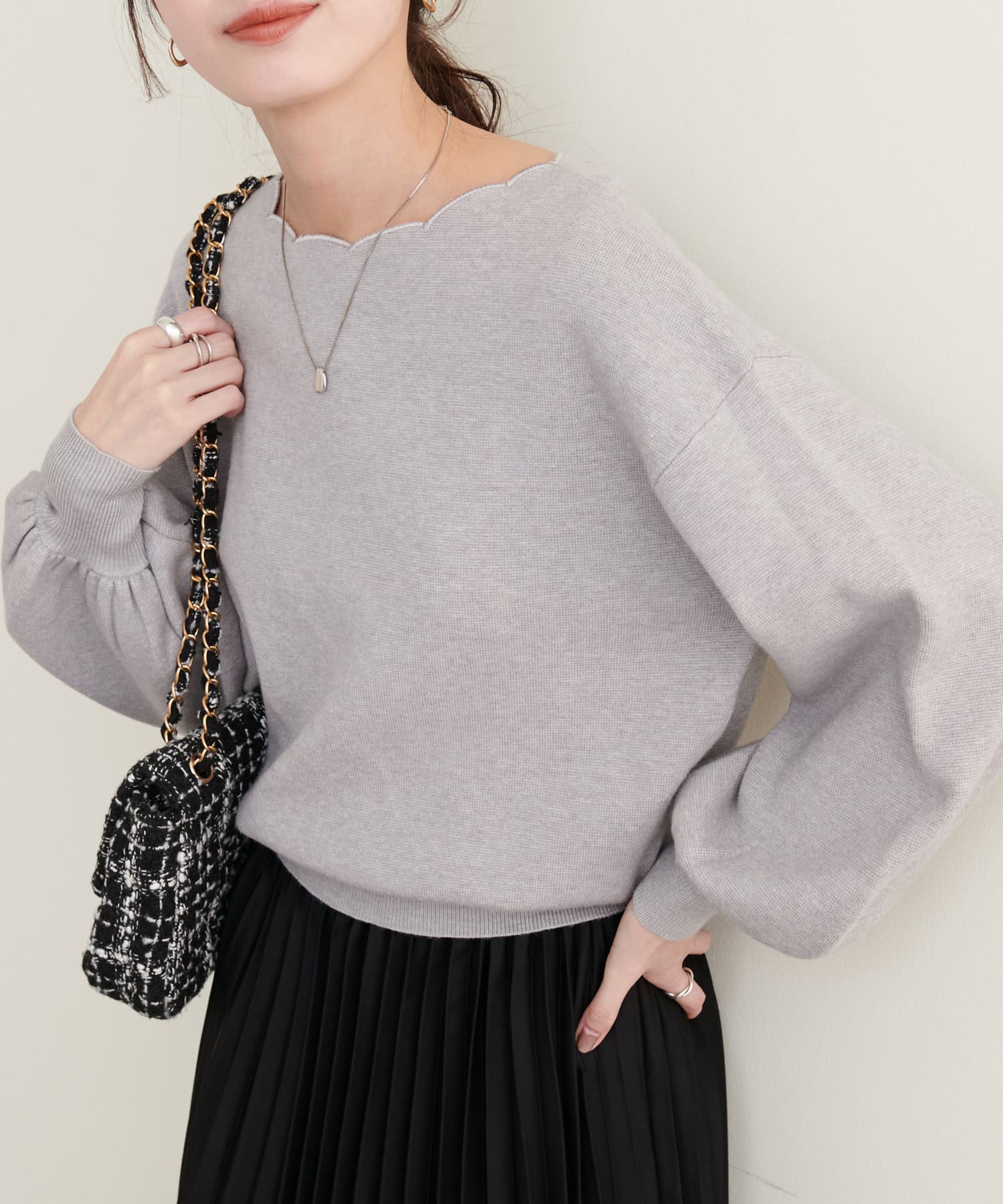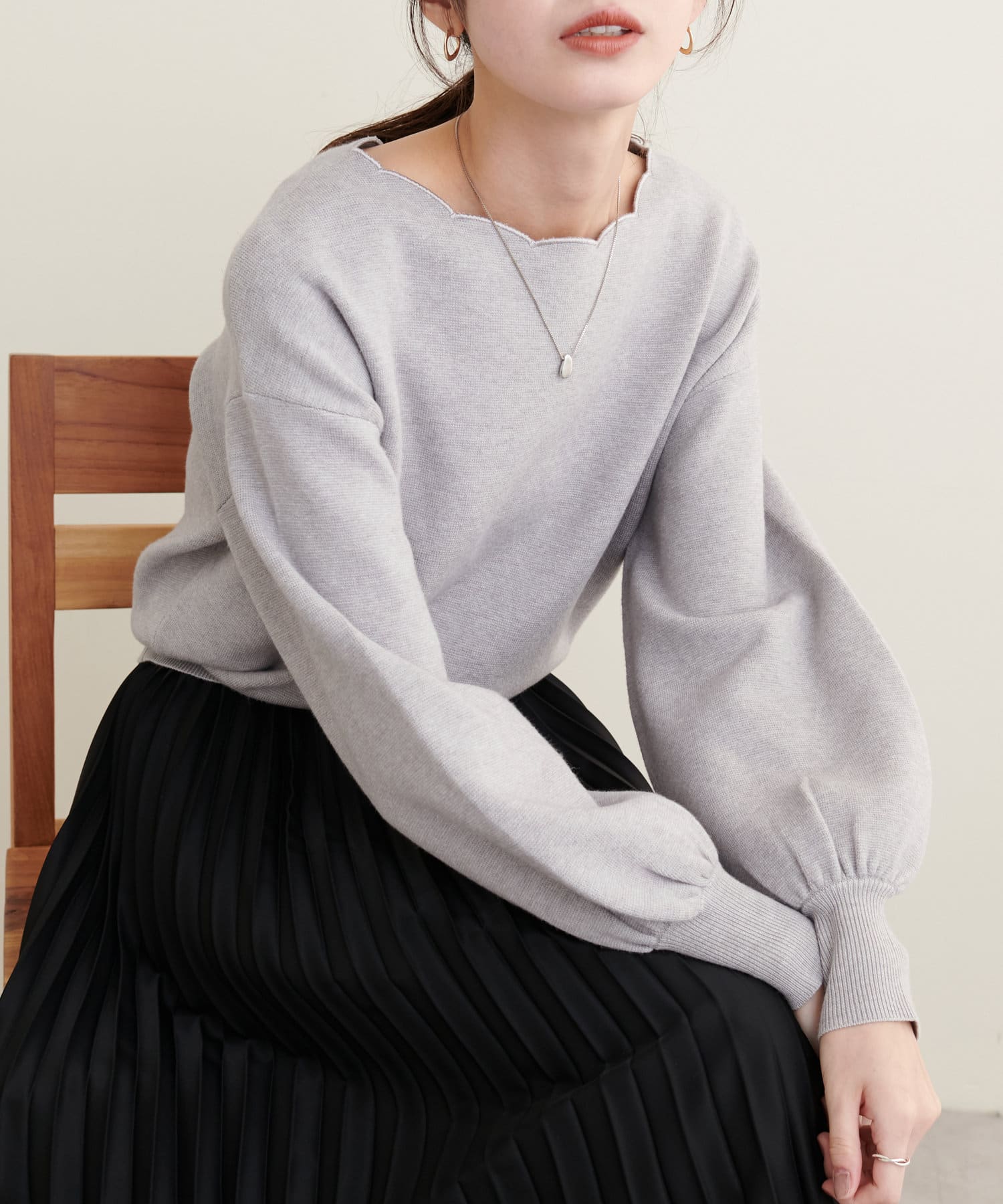 リバイバルアイテム!衿ぐりスカラップが大人可愛いニット