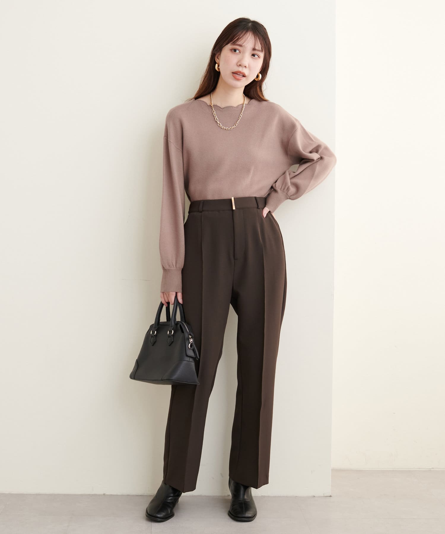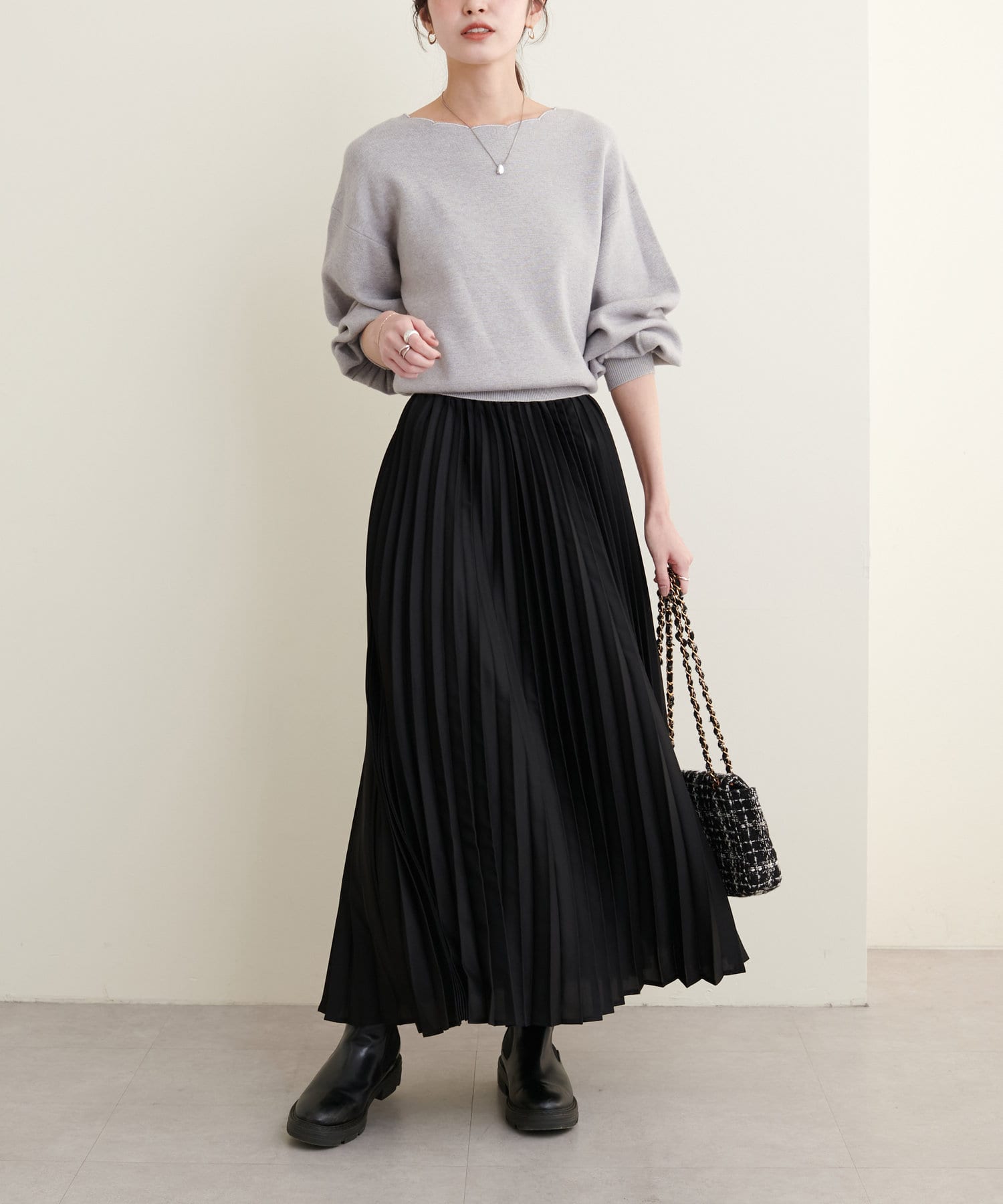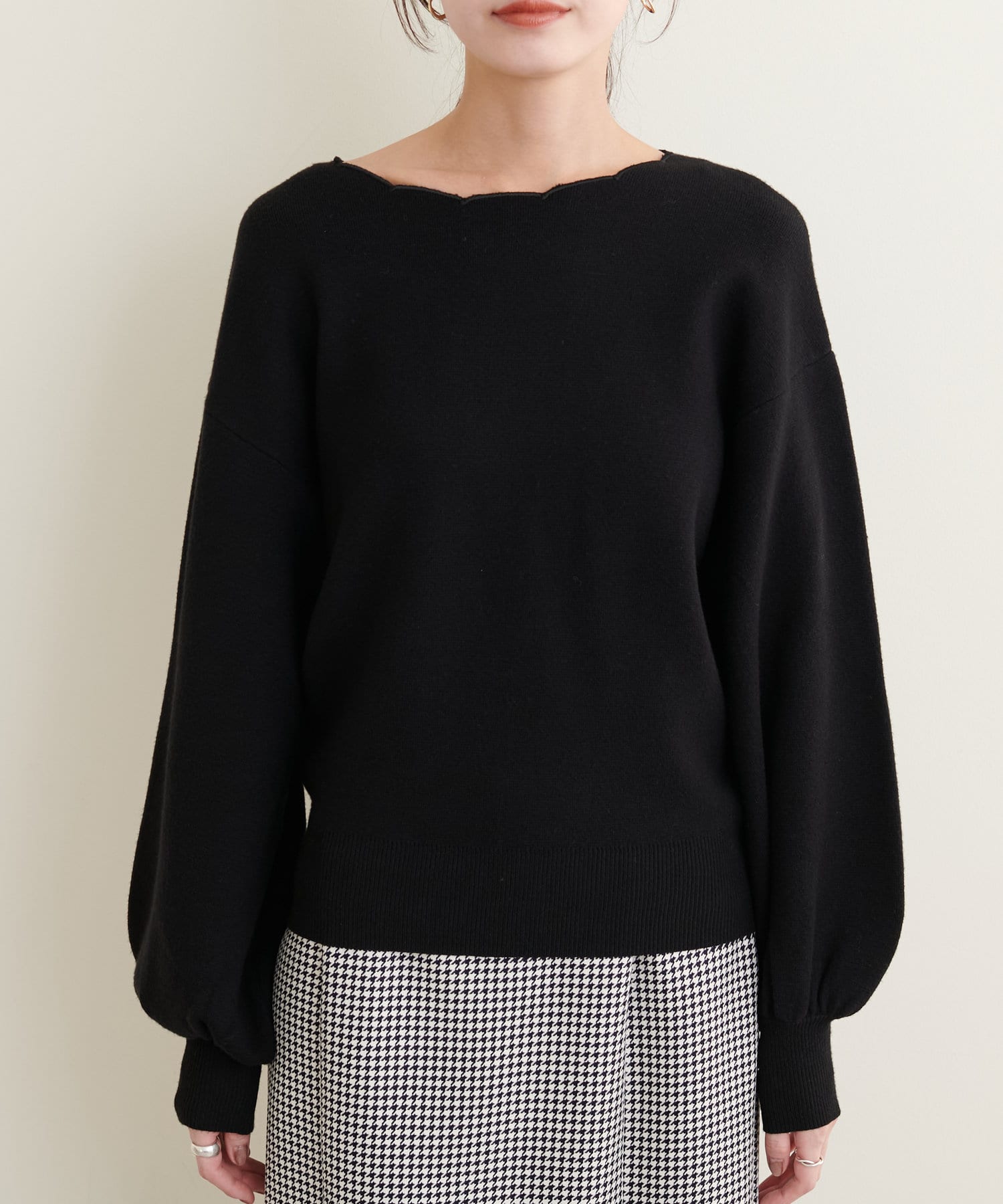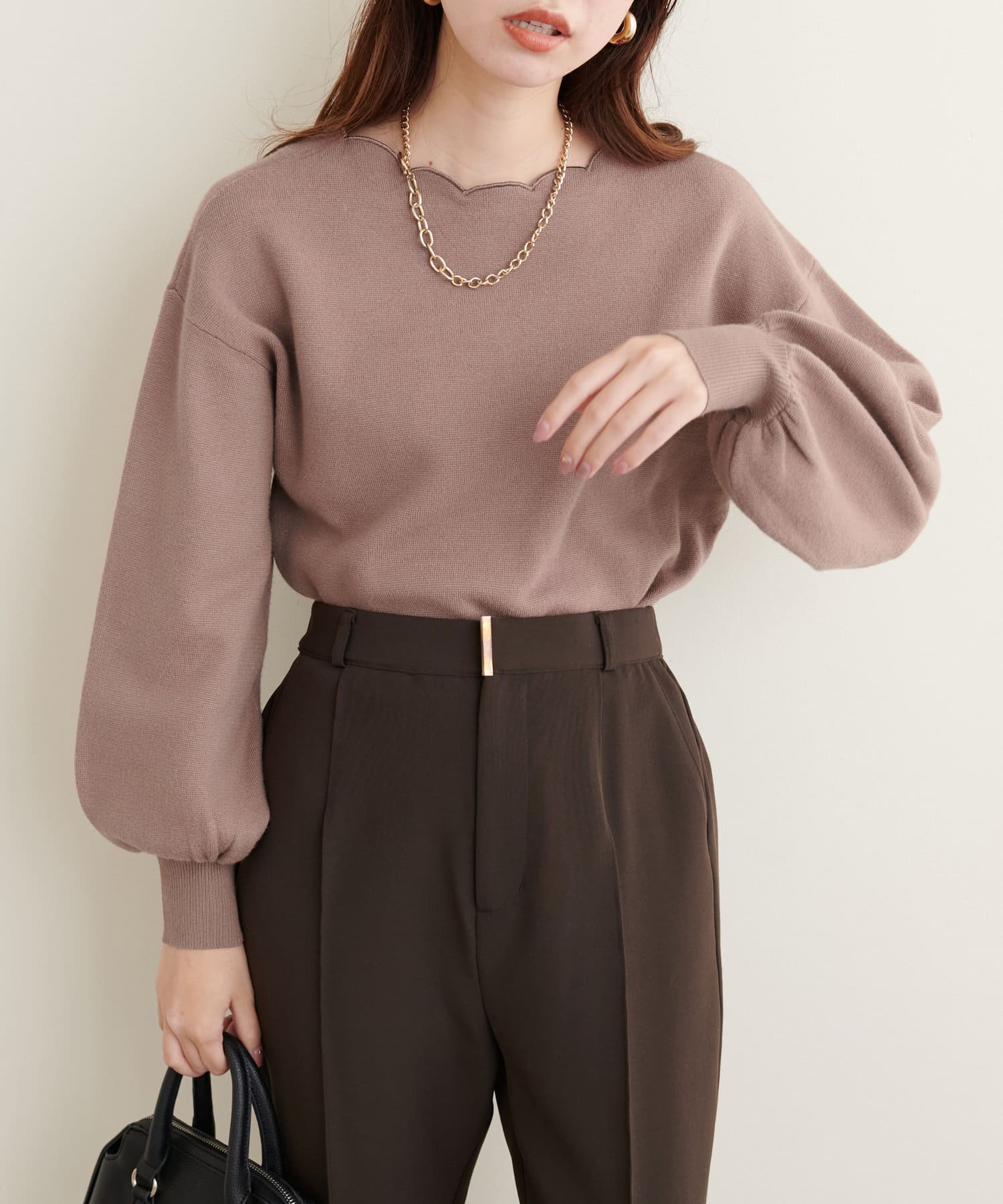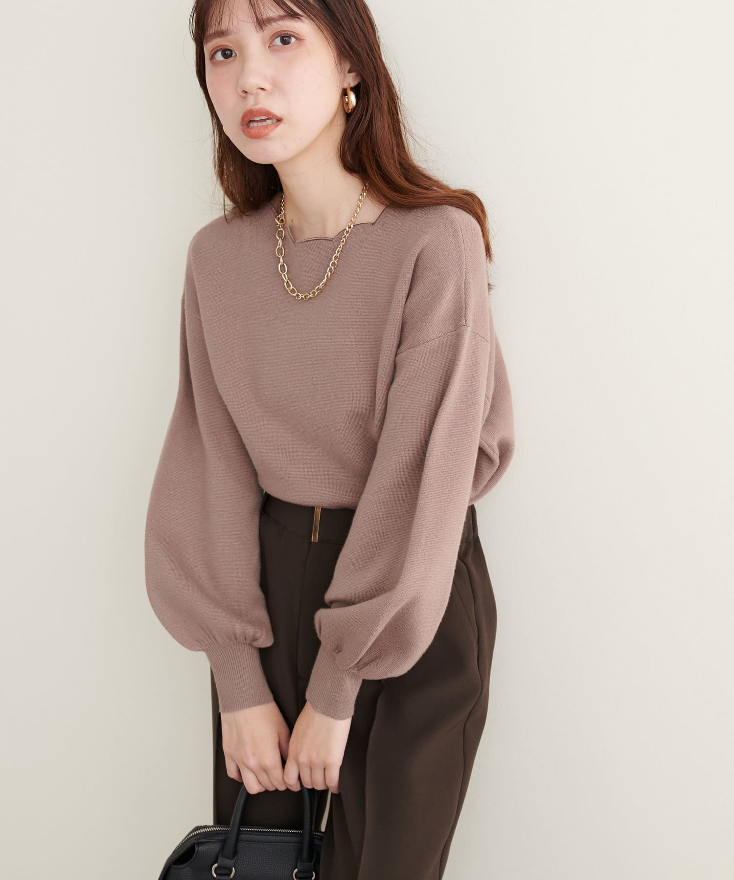 リバイバルアイテム!衿ぐりスカラップが大人可愛いニット