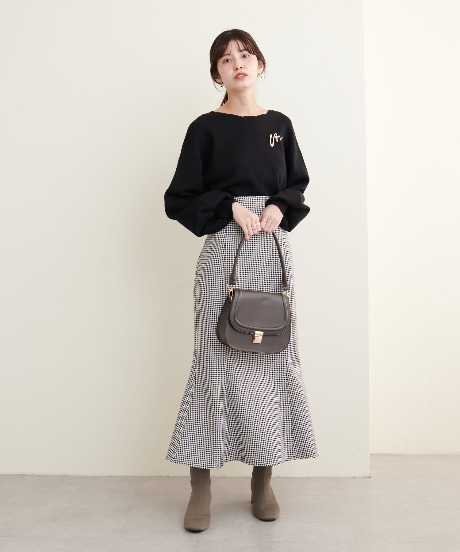 フレアスカートやマーメイドスカートを合わせたフェミニンな着こなしはもちろん、
