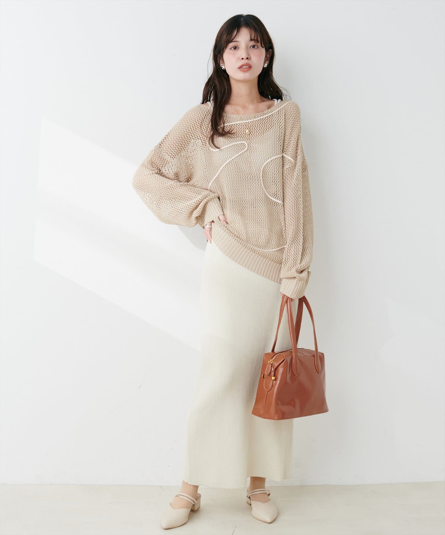 ざっくりとした透かし編みが魅力のニットプルオーバーが登場。