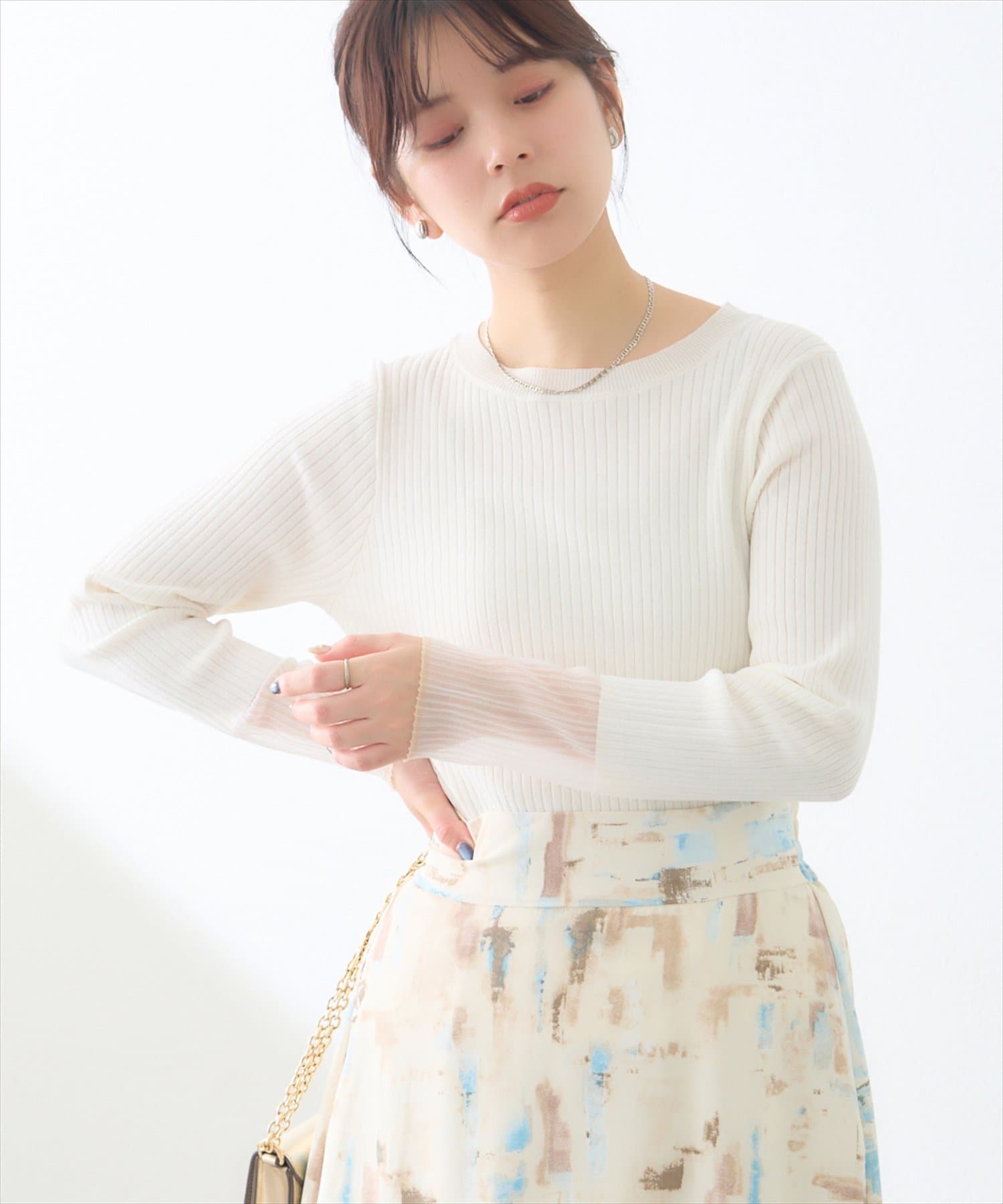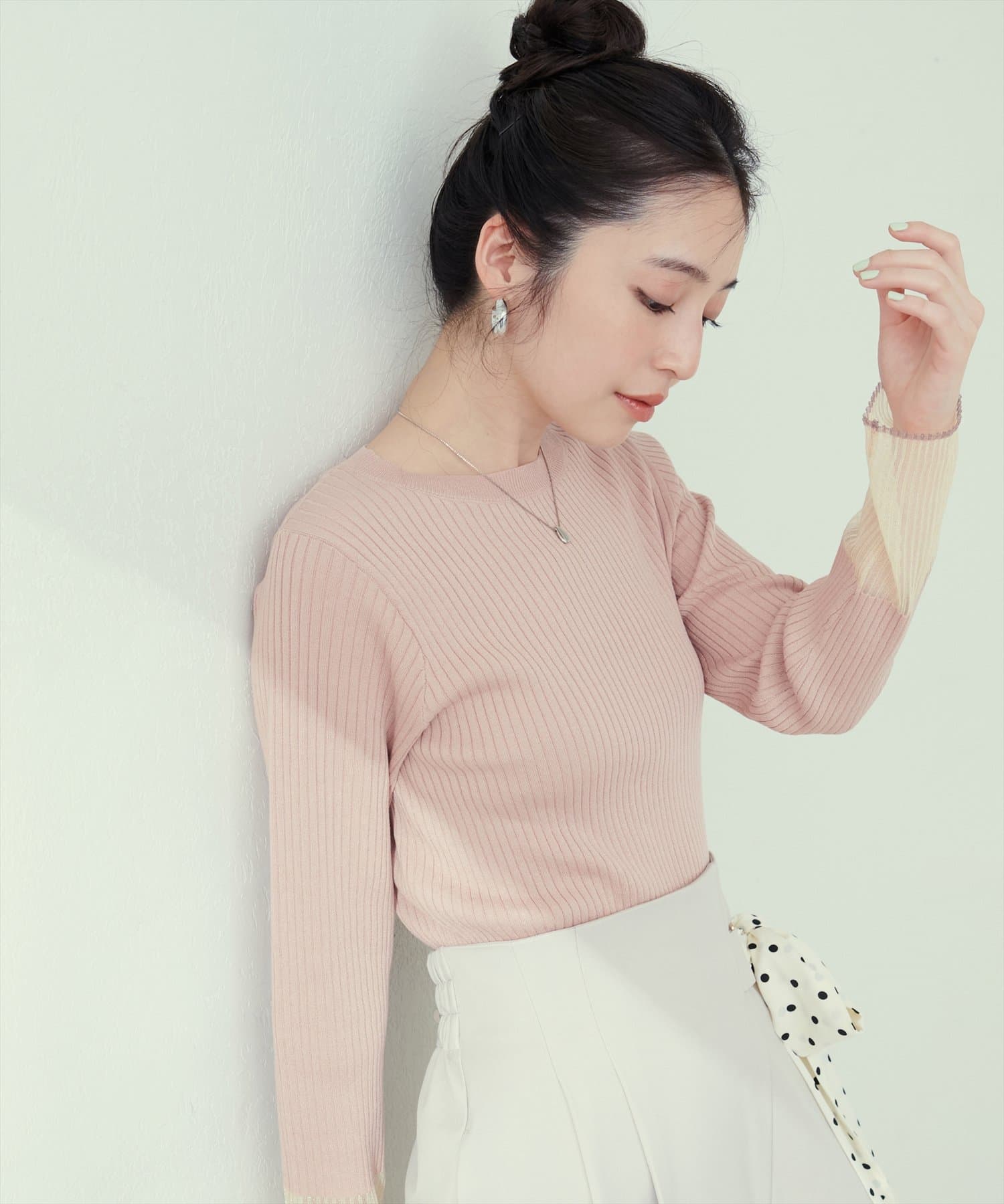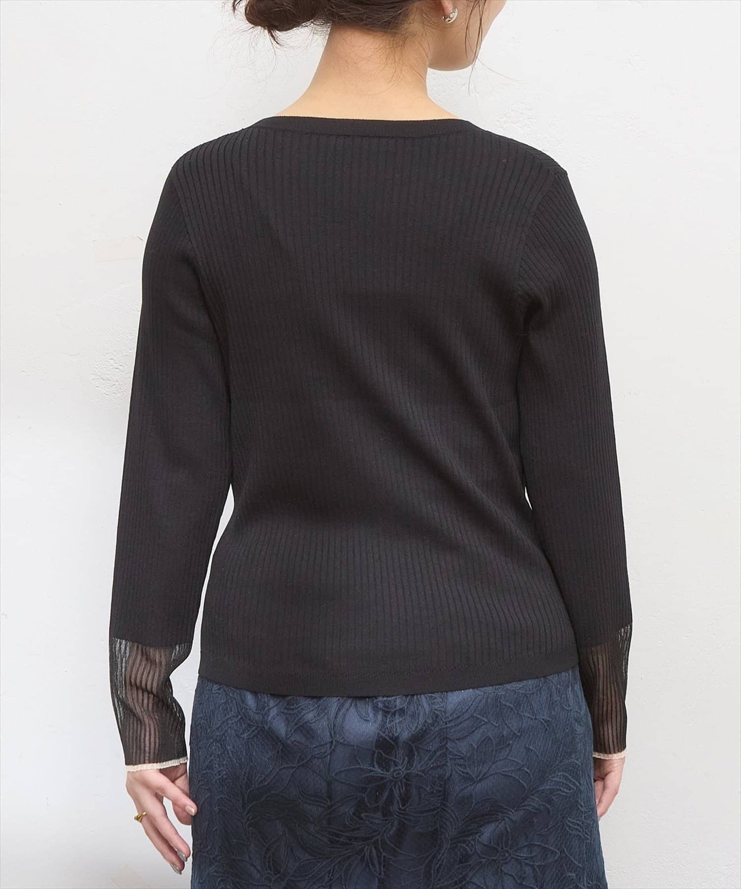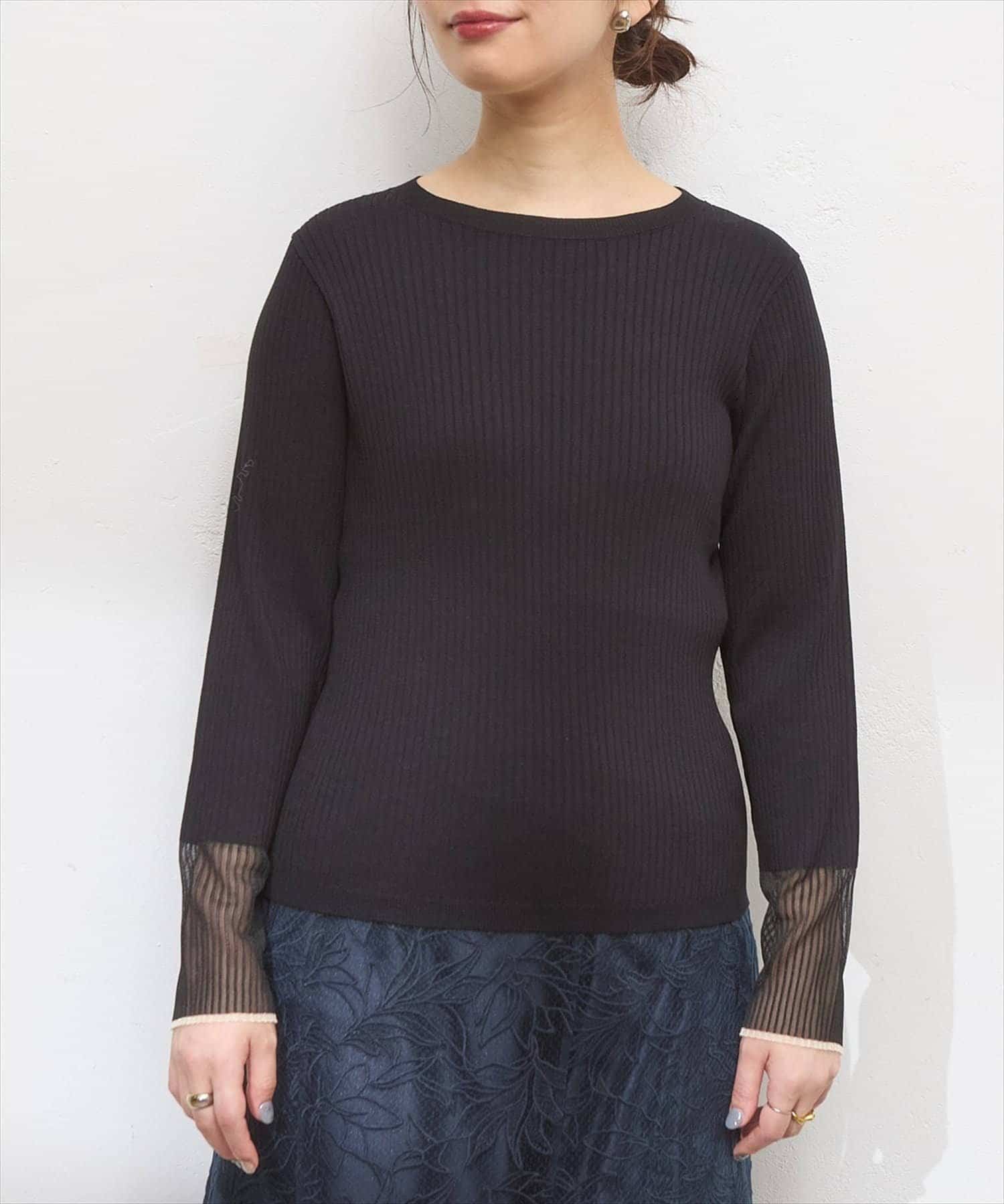 袖口シアーリブニット