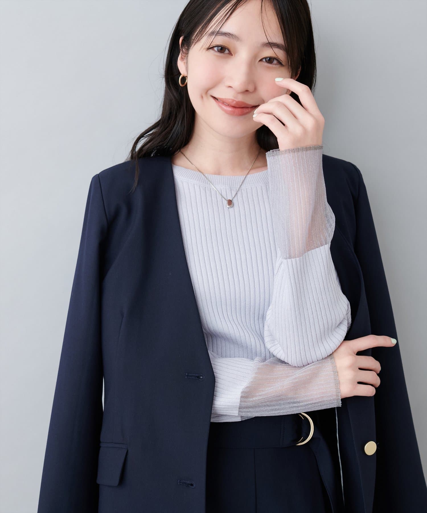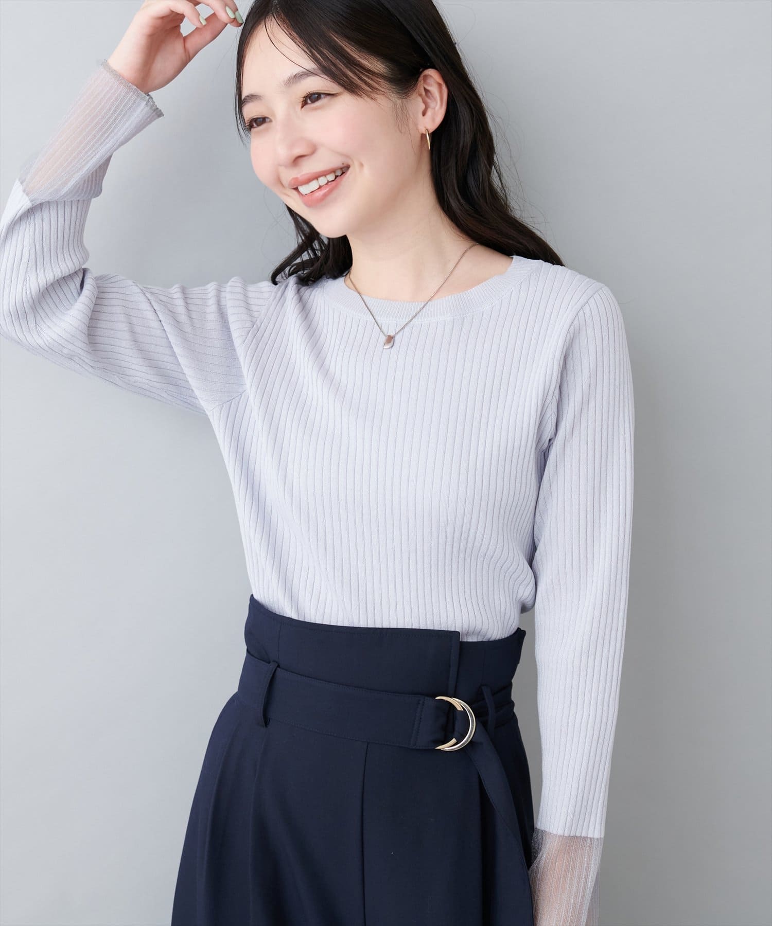 • natural couture(ナチュラルクチュール) 袖口シアーリブニット