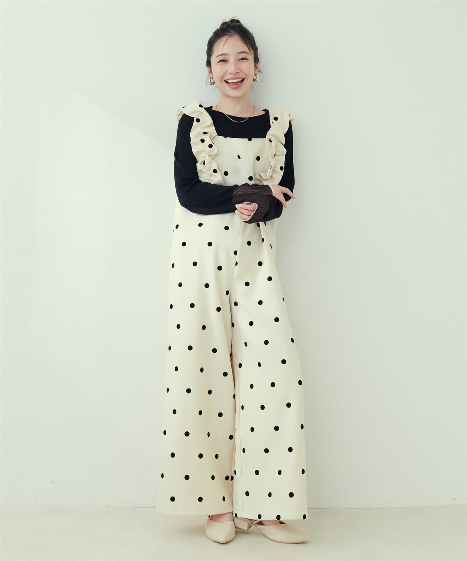 お好みでサロペットやキャミソールのインナーとして合わせても袖口部分がポイント見えして◎