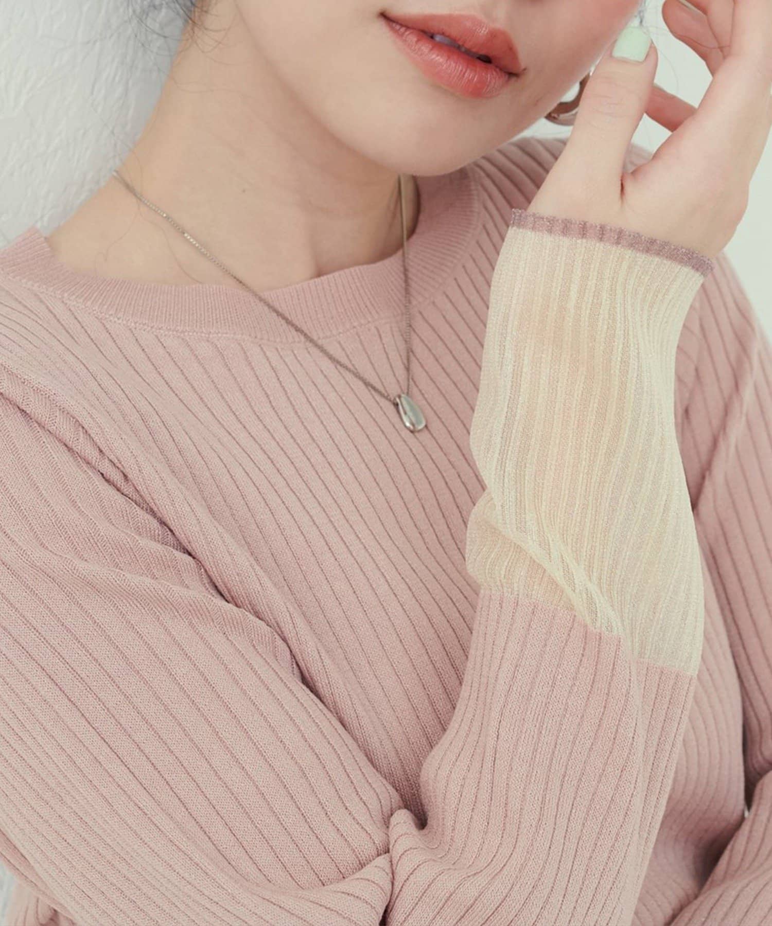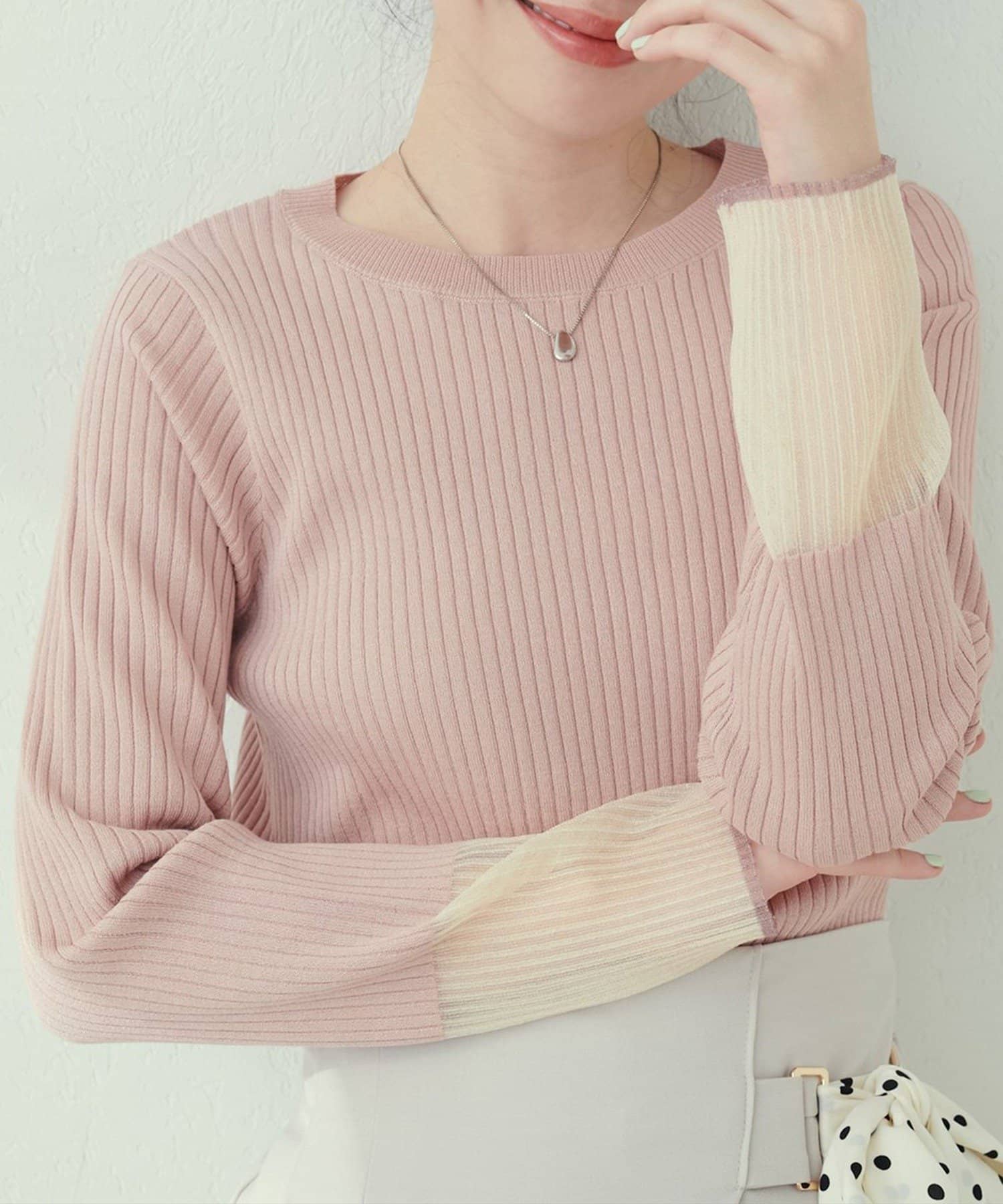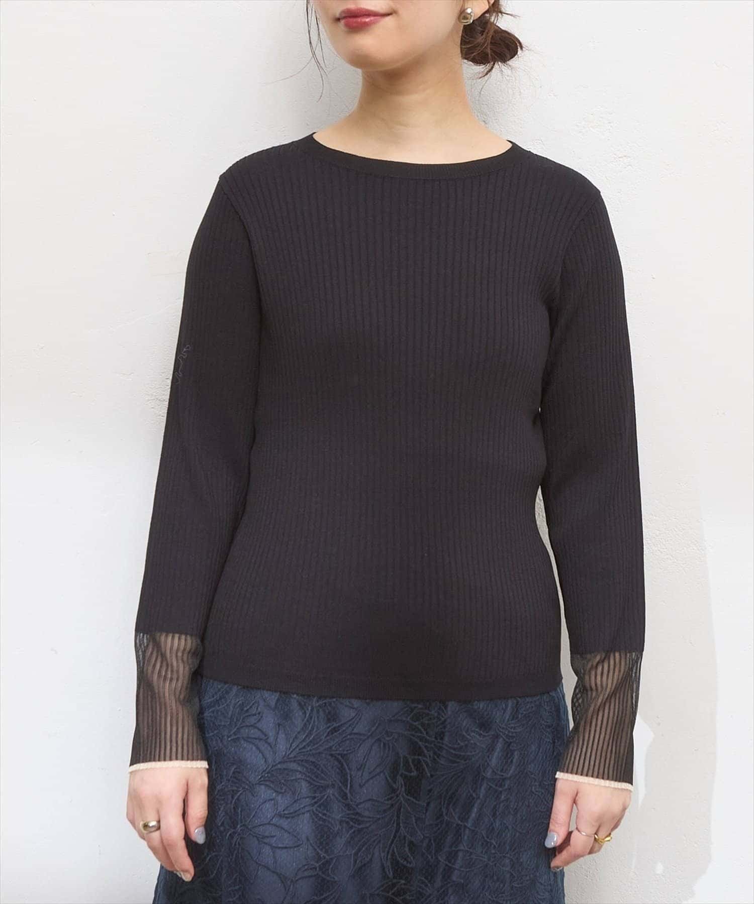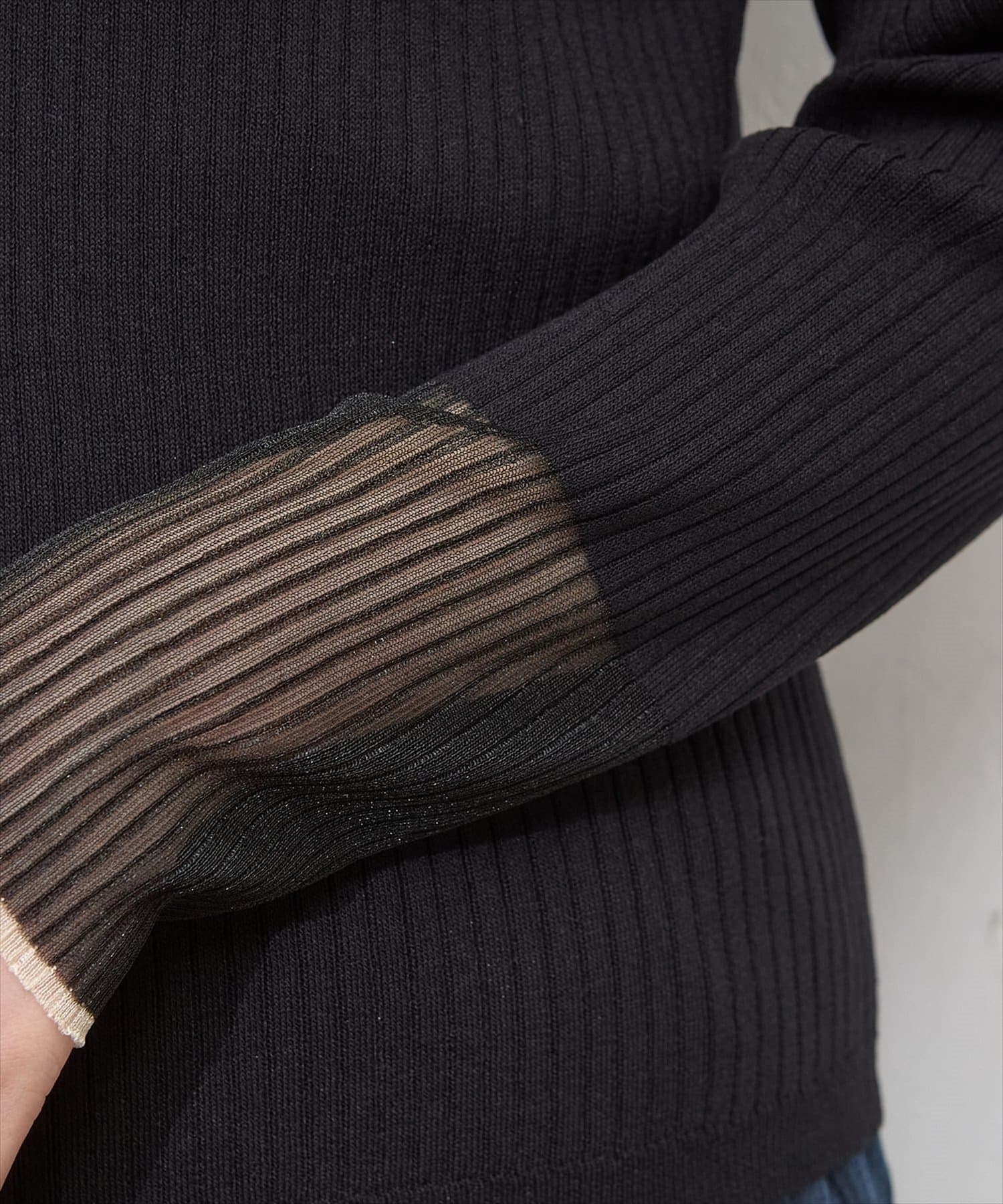 【natural couture】袖口シアーリブニット