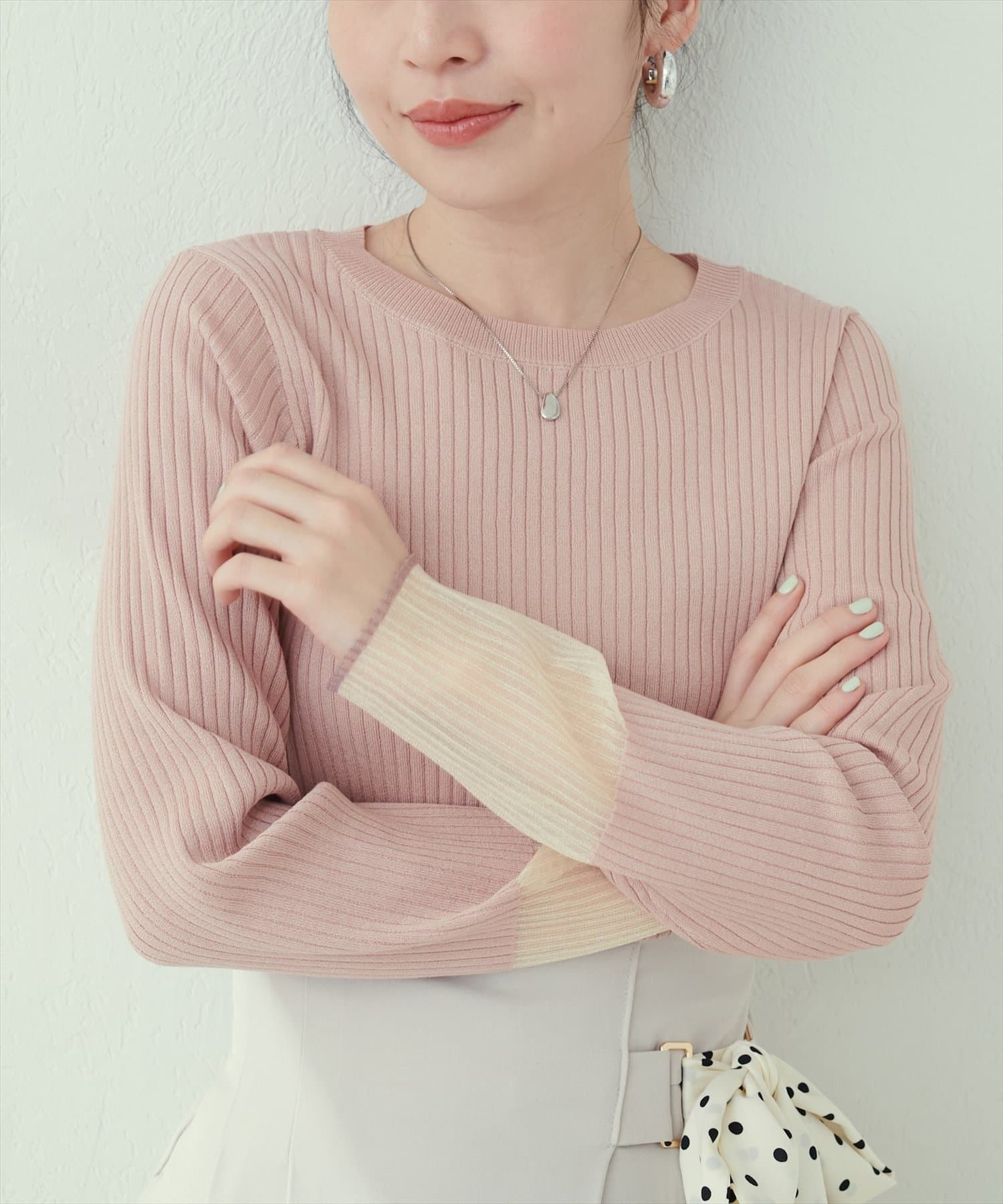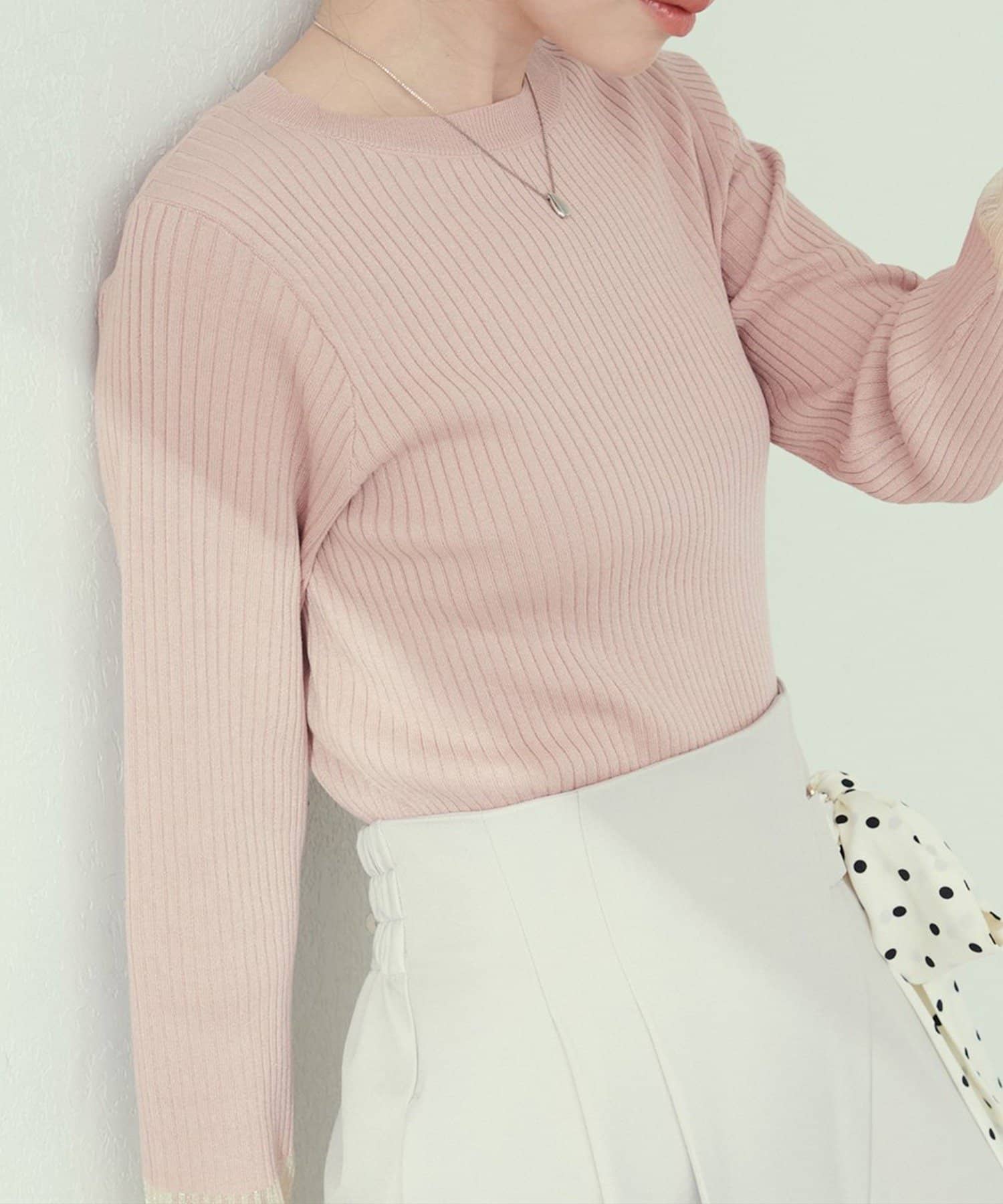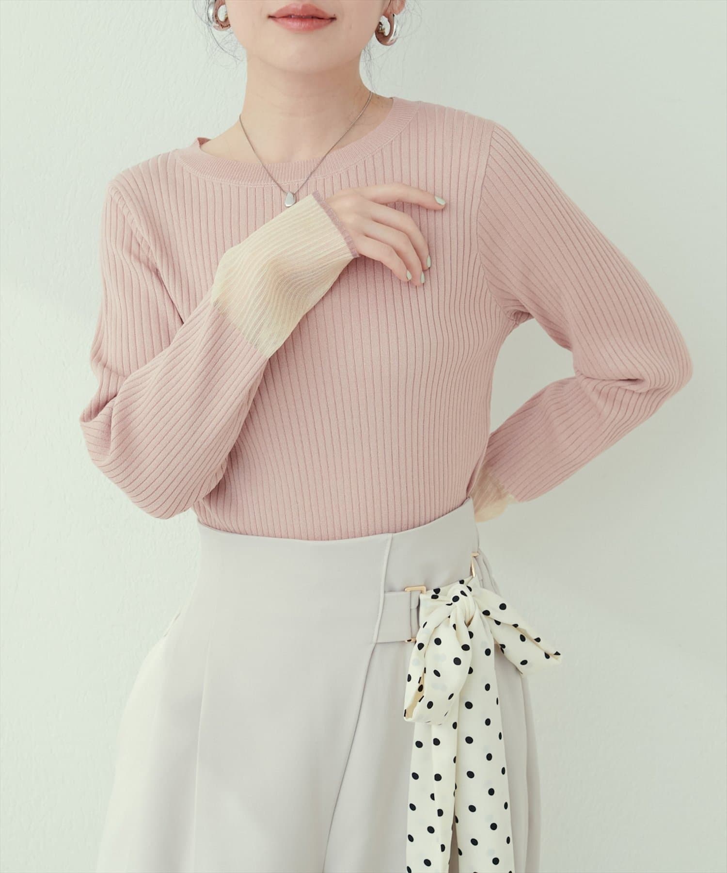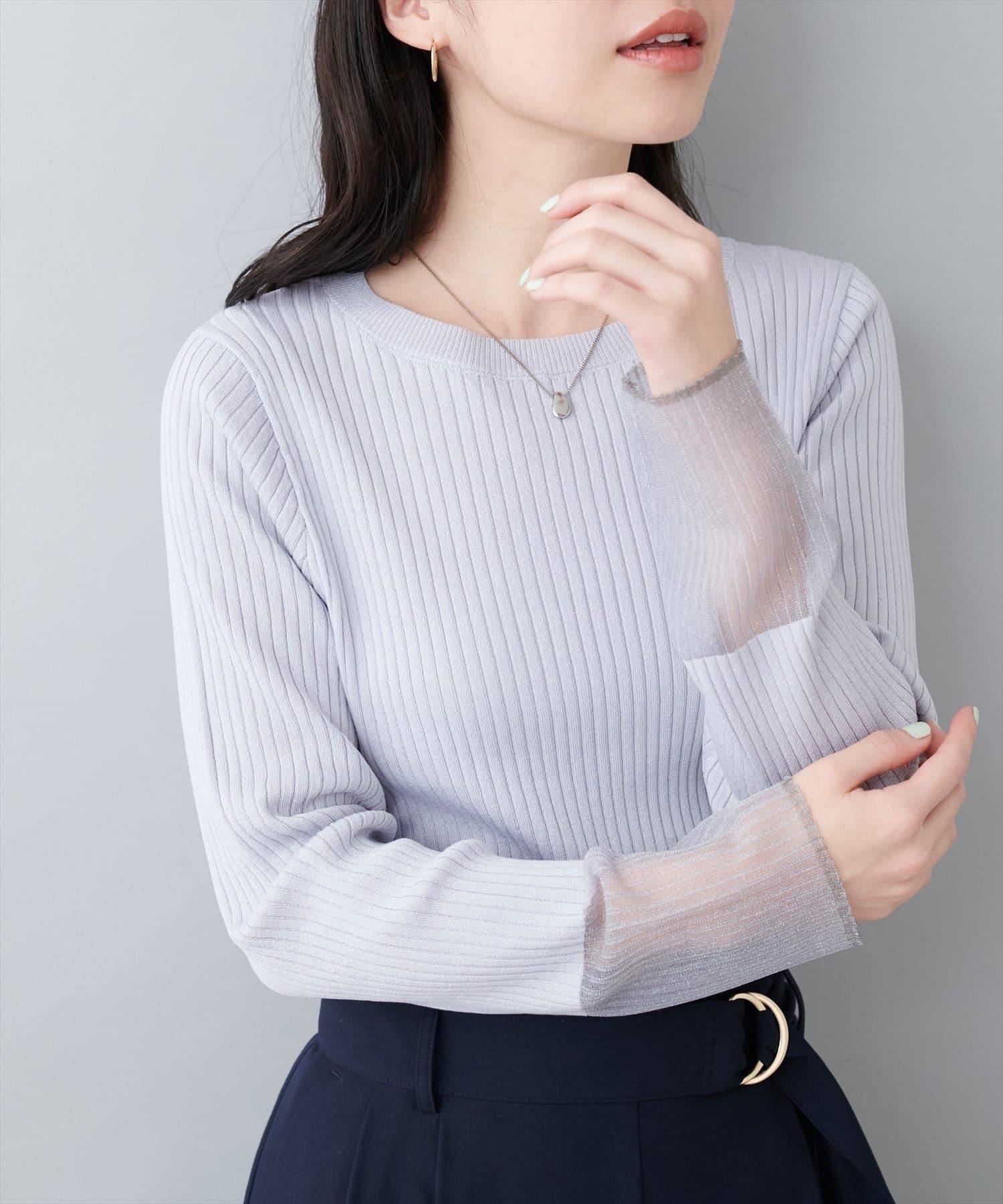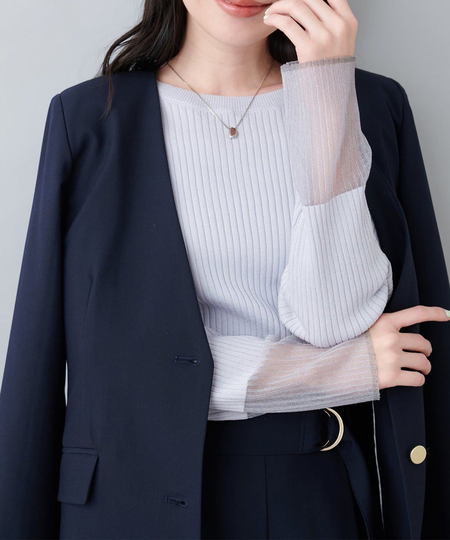 【natural couture】袖口シアーリブニット