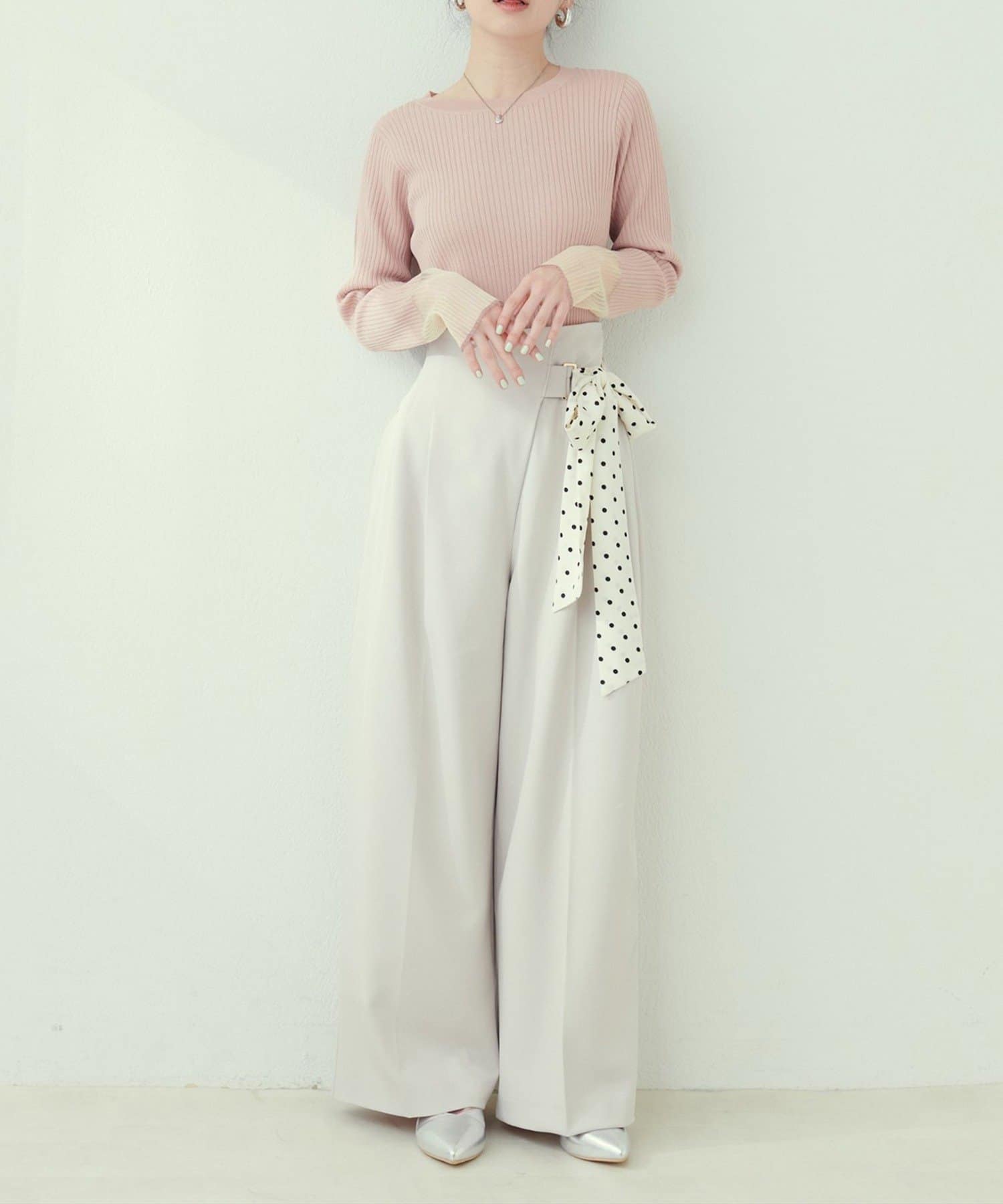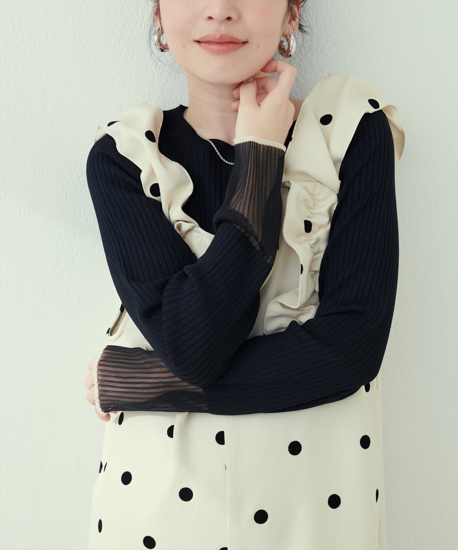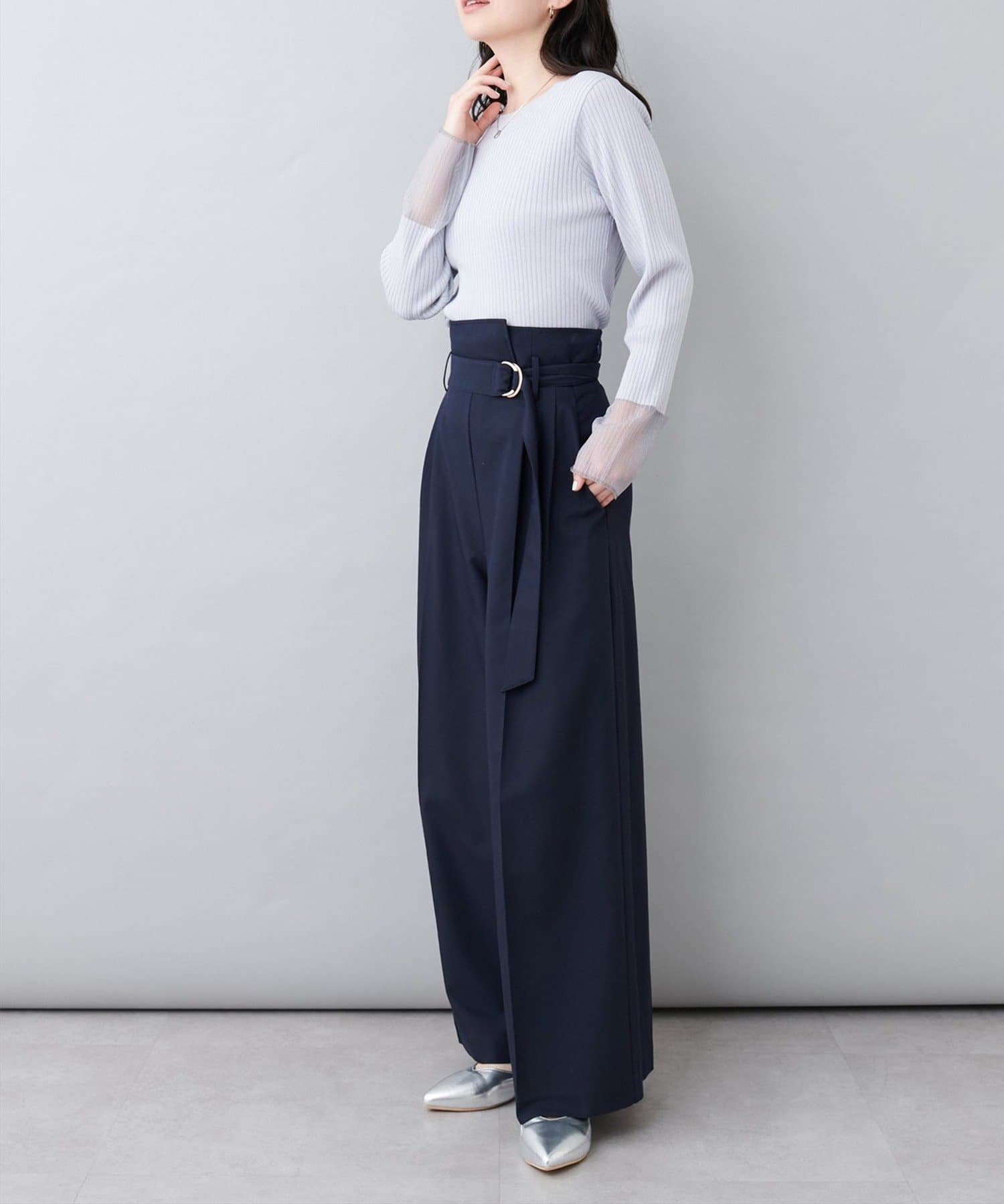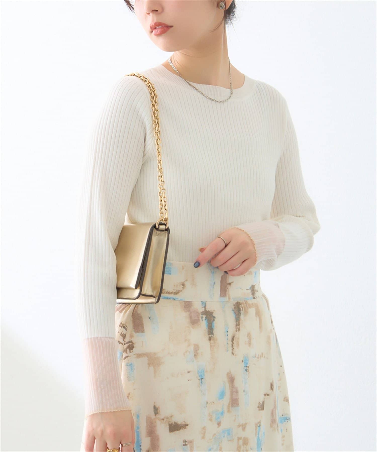 【natural couture】袖口シアーリブニット
