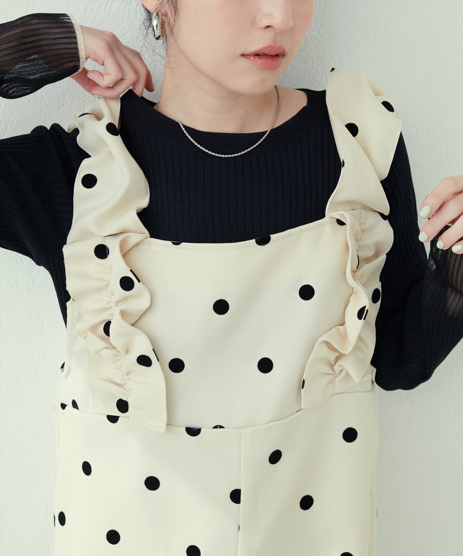 お好みでサロペットやキャミソールのインナーとして合わせても袖口部分がポイント見えして◎