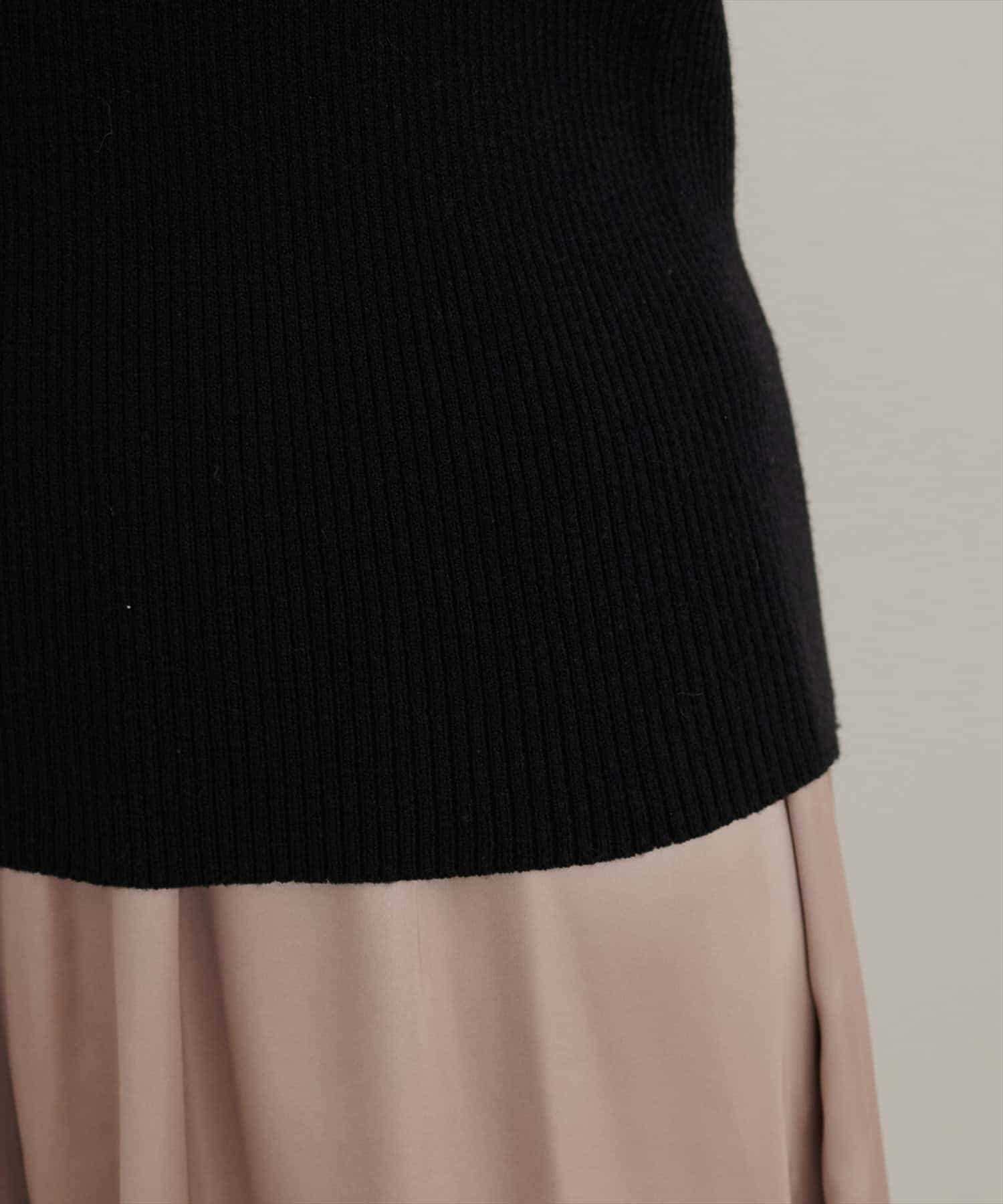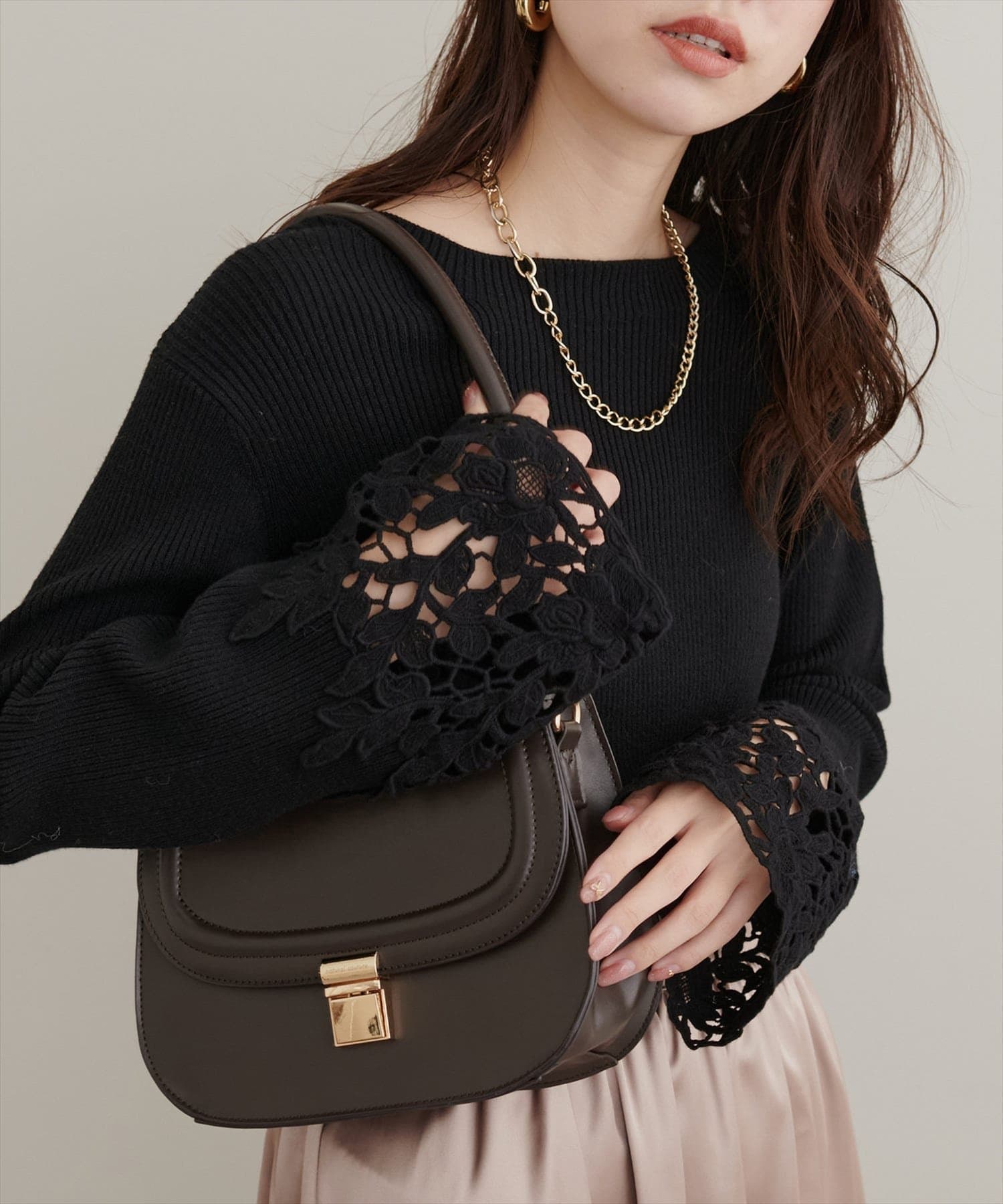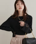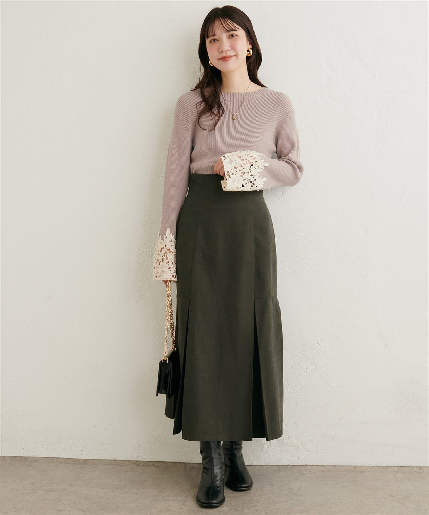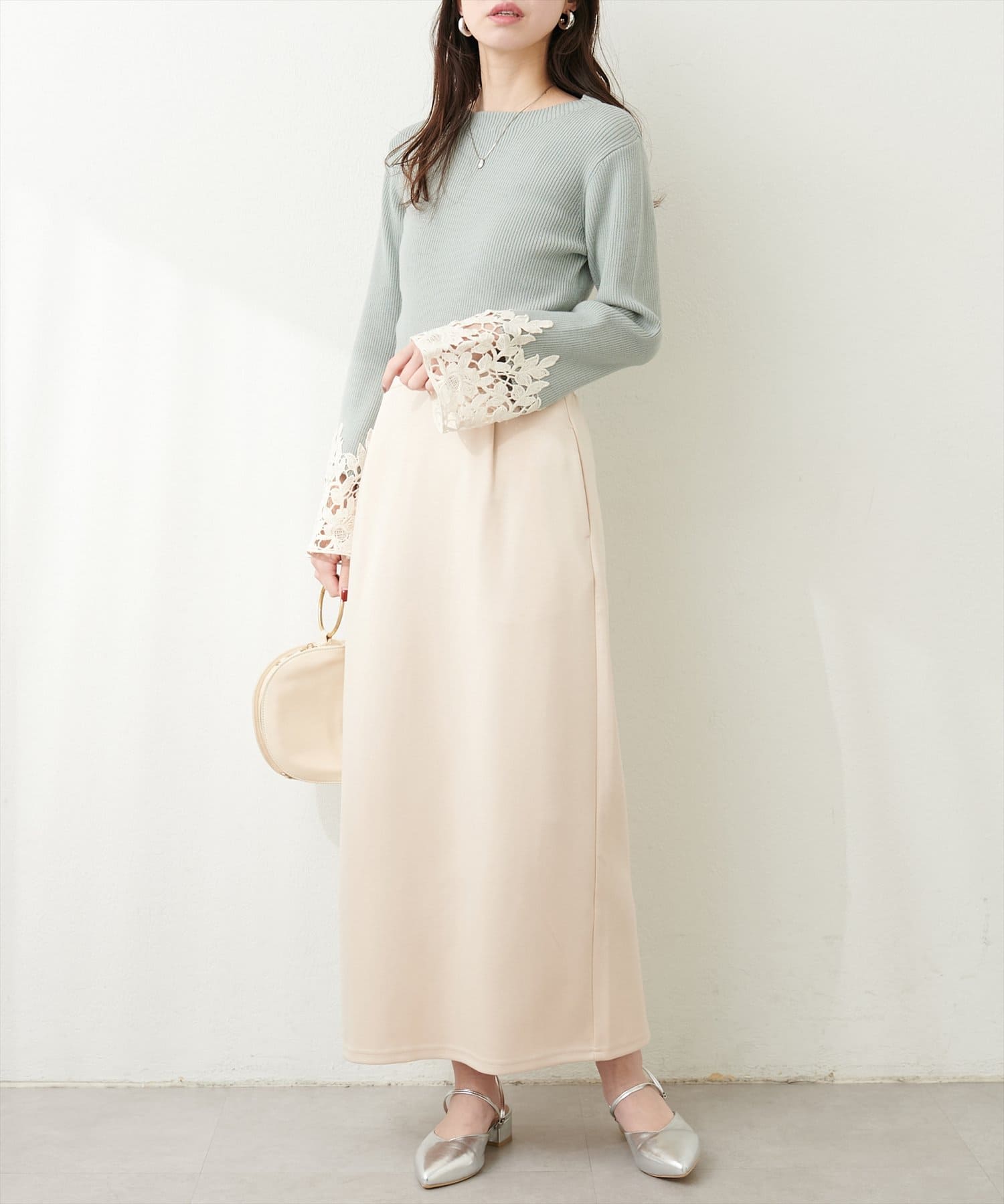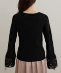 シンプルなリブニットに袖口の刺繍レースが華やかなニット。
