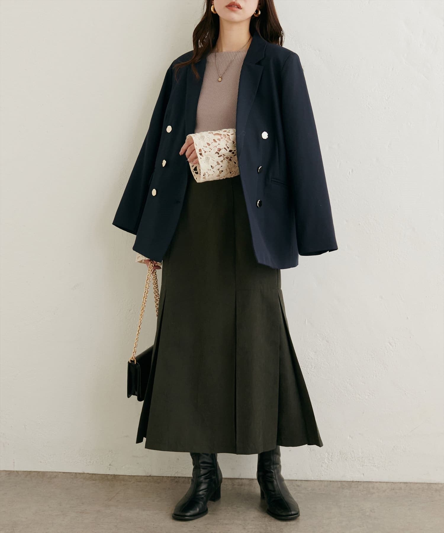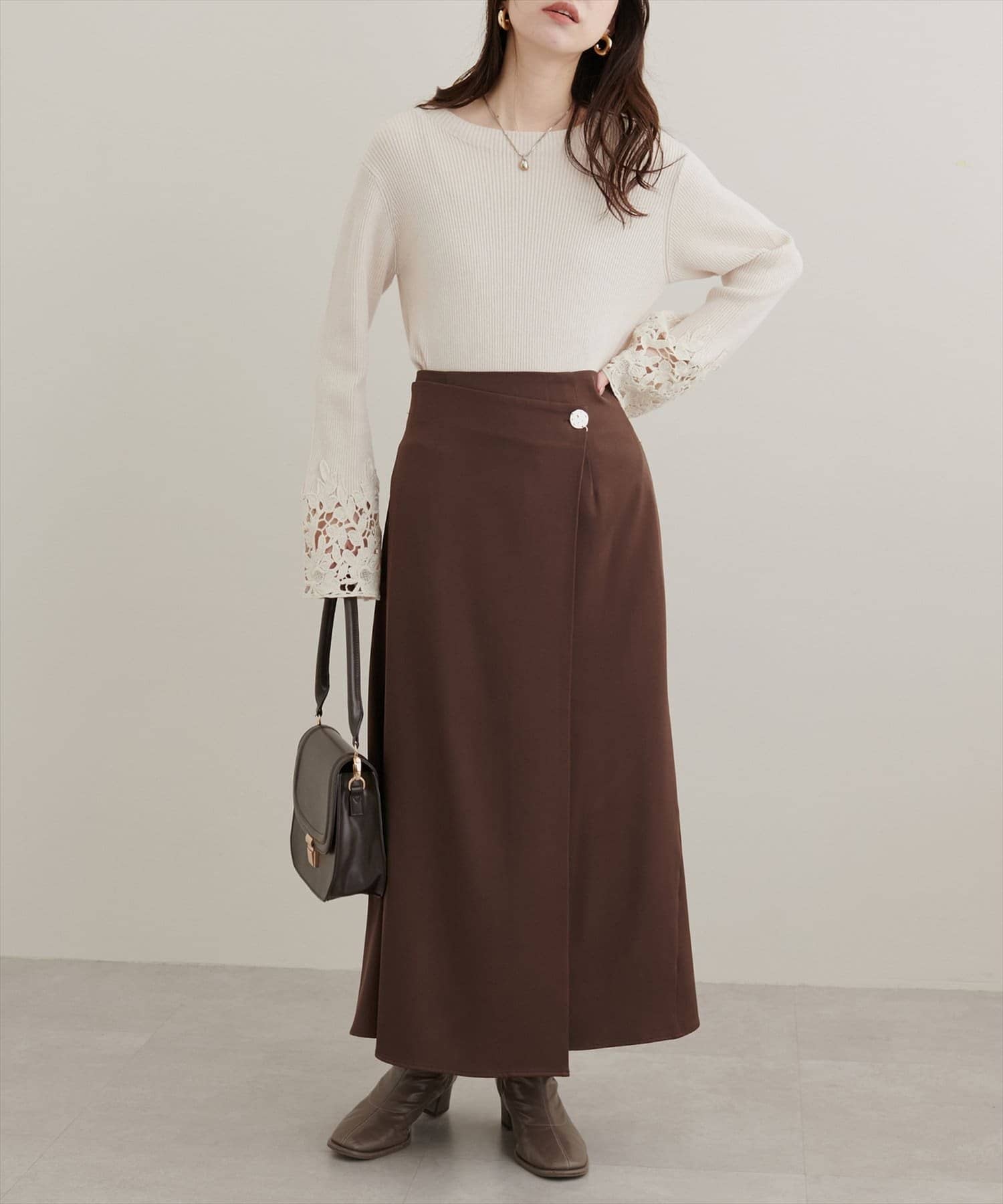 シンプルなナロースカートやマーメイドスカートできれいめに、デニムやフレアパンツでカジュアルに、