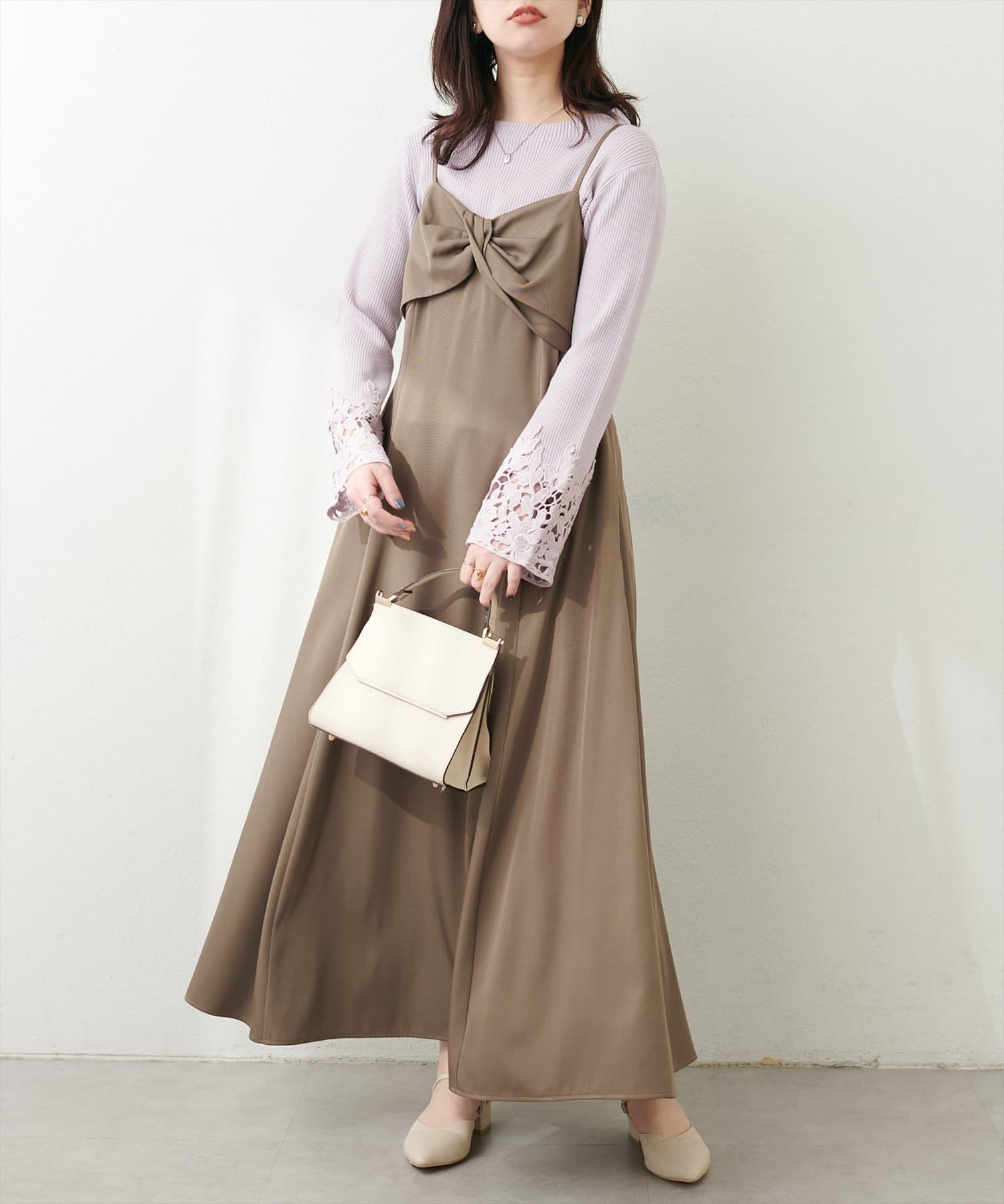 キャミワンピースで袖口を目立たせるスタイリングもおすすめです。