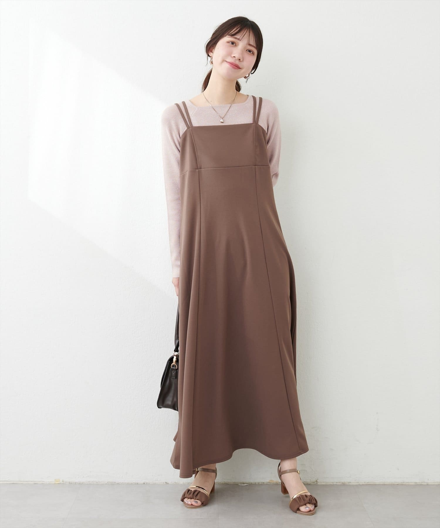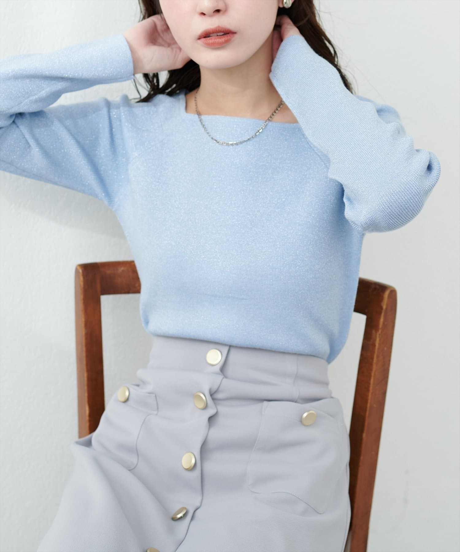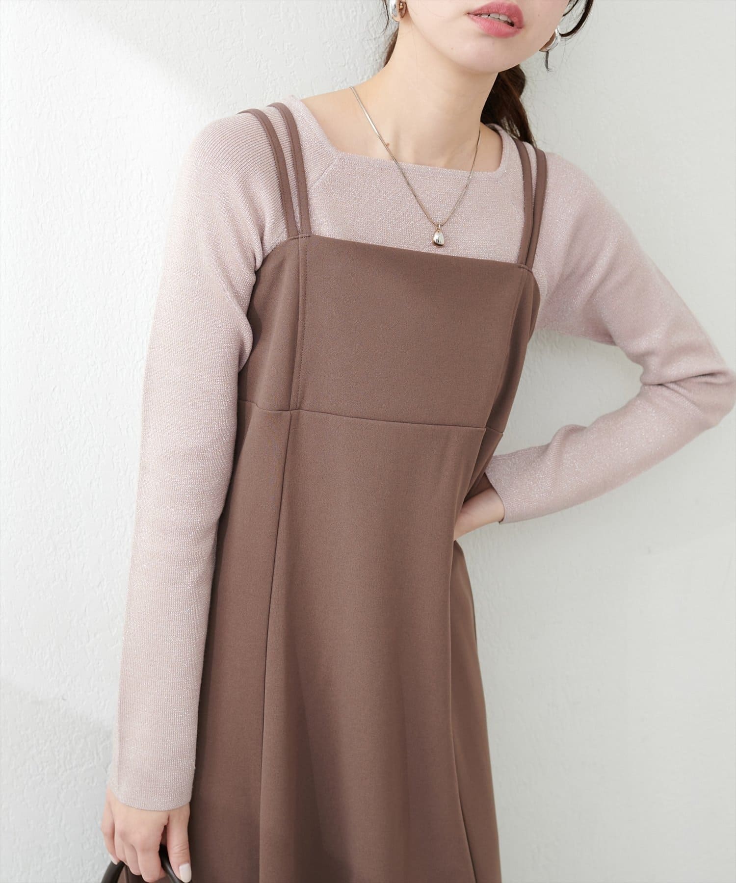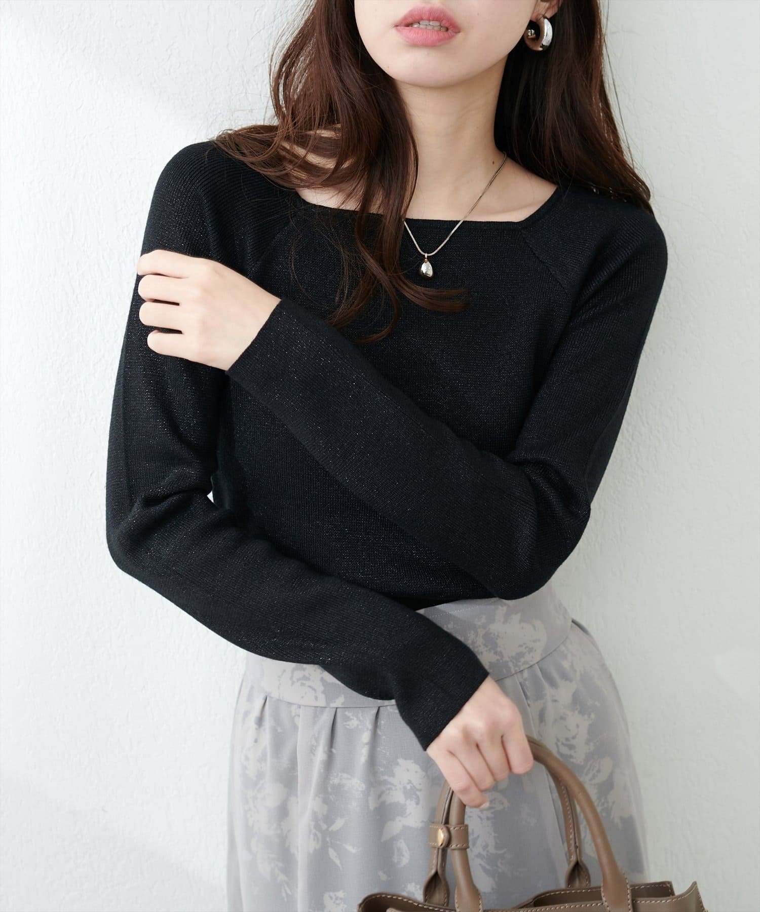 スクエアネックですっきり華奢見えし上品な印象に。