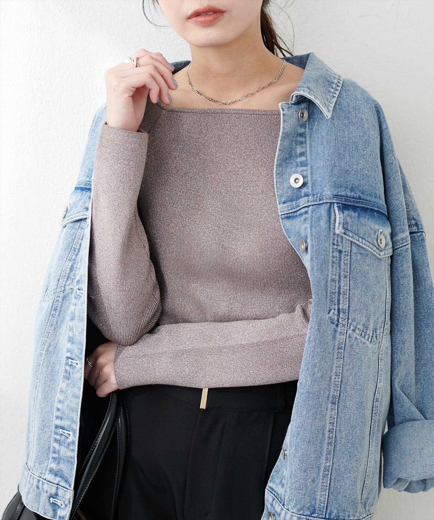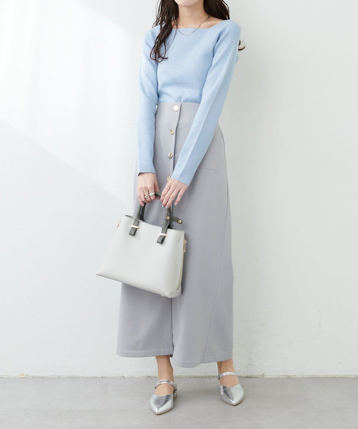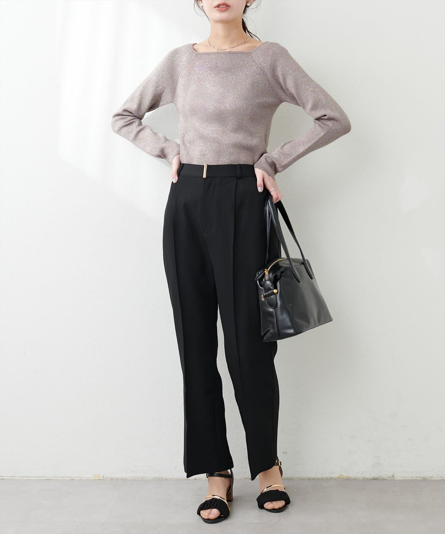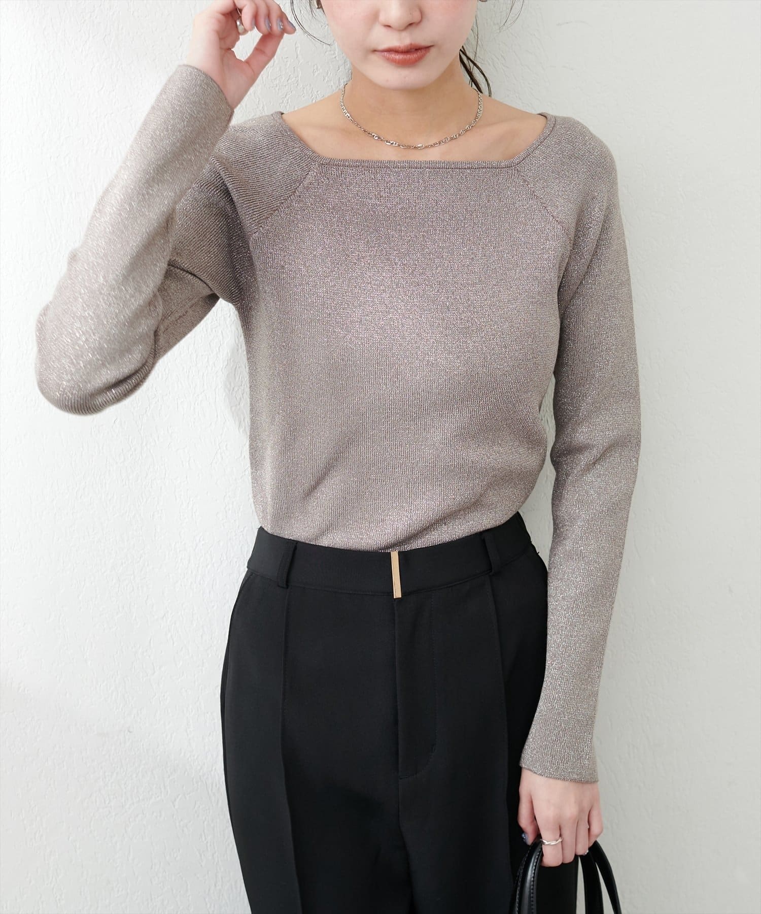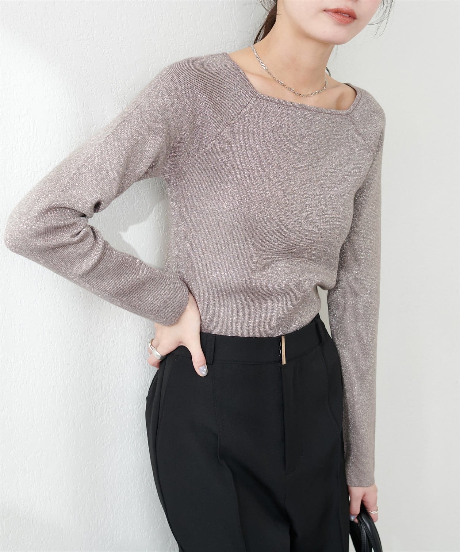 キラッとしたラメ感が大人見えするリブニット。