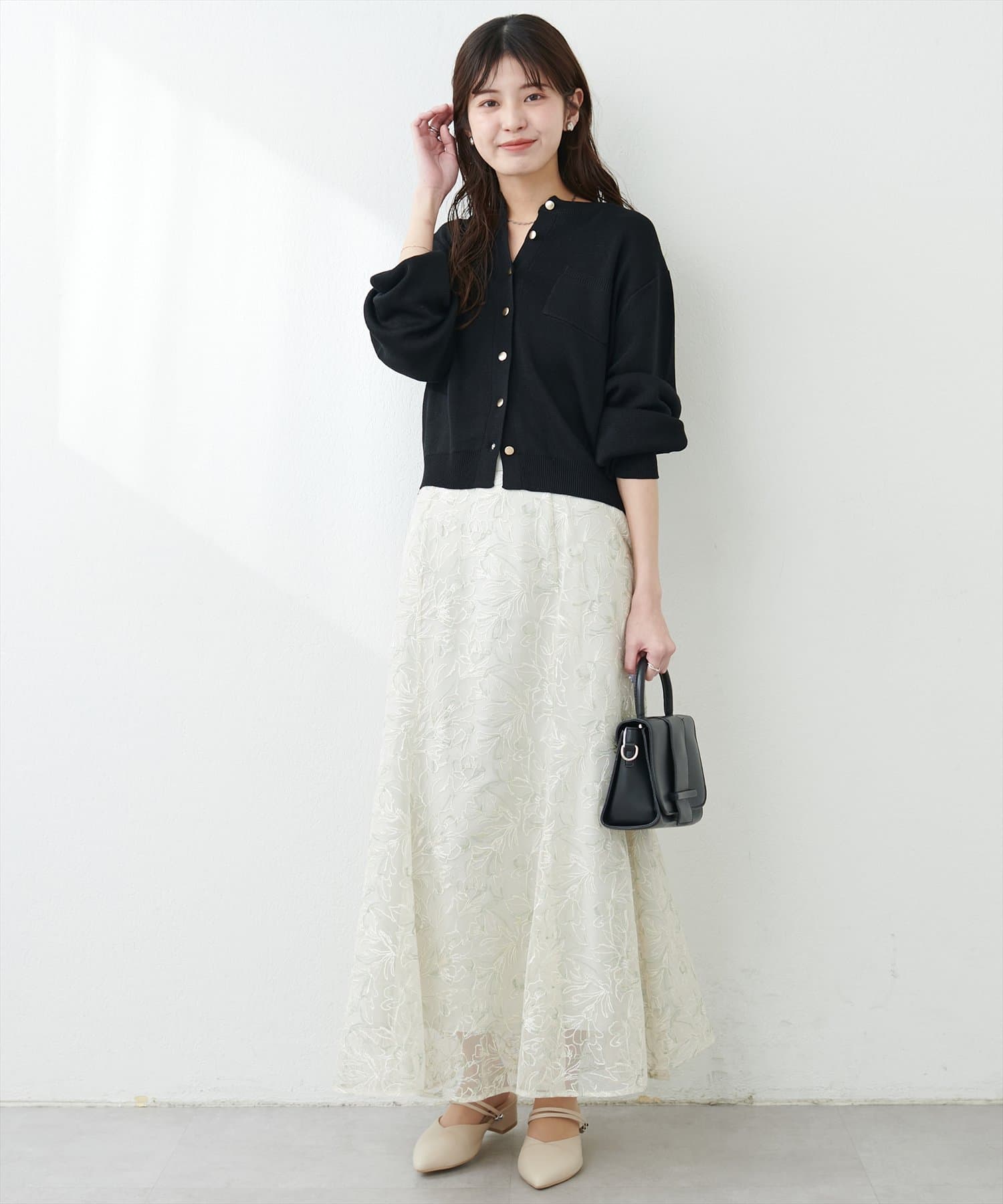 ポケット付きのデザインで、ほんのりカジュアル感と女性らしい柔らかさを演出してくれます。