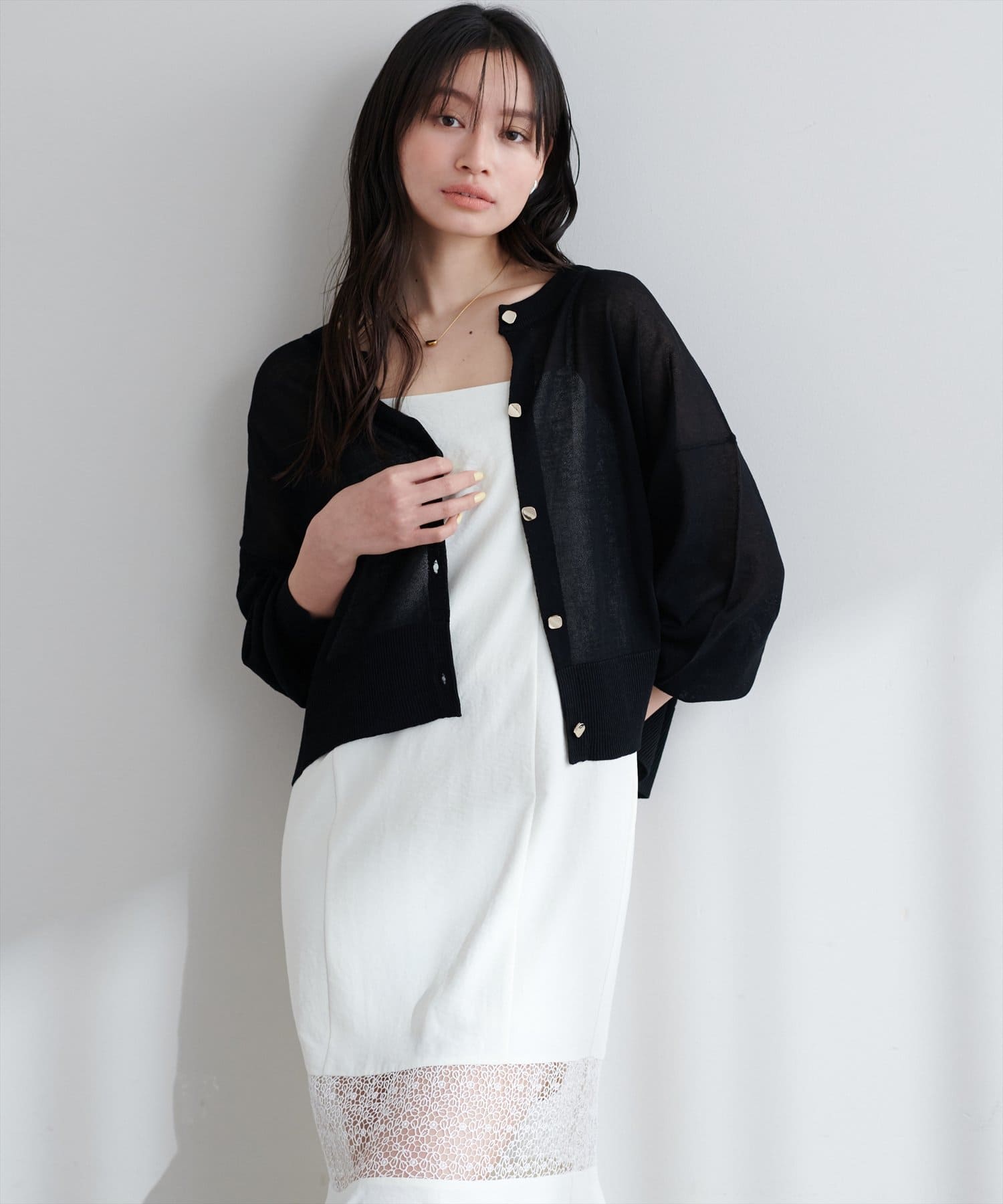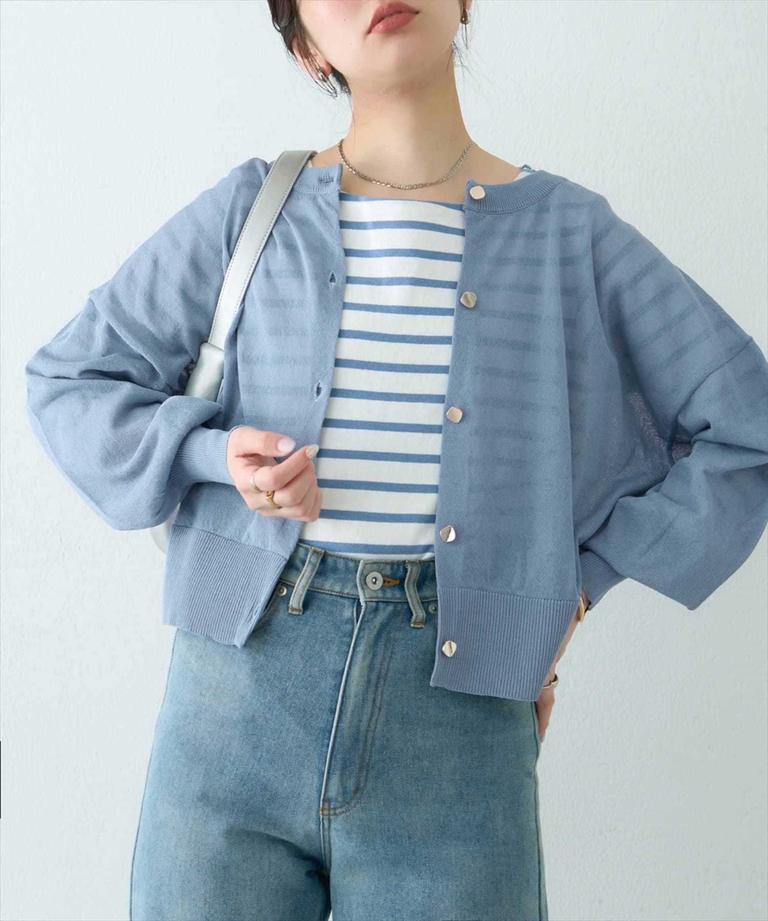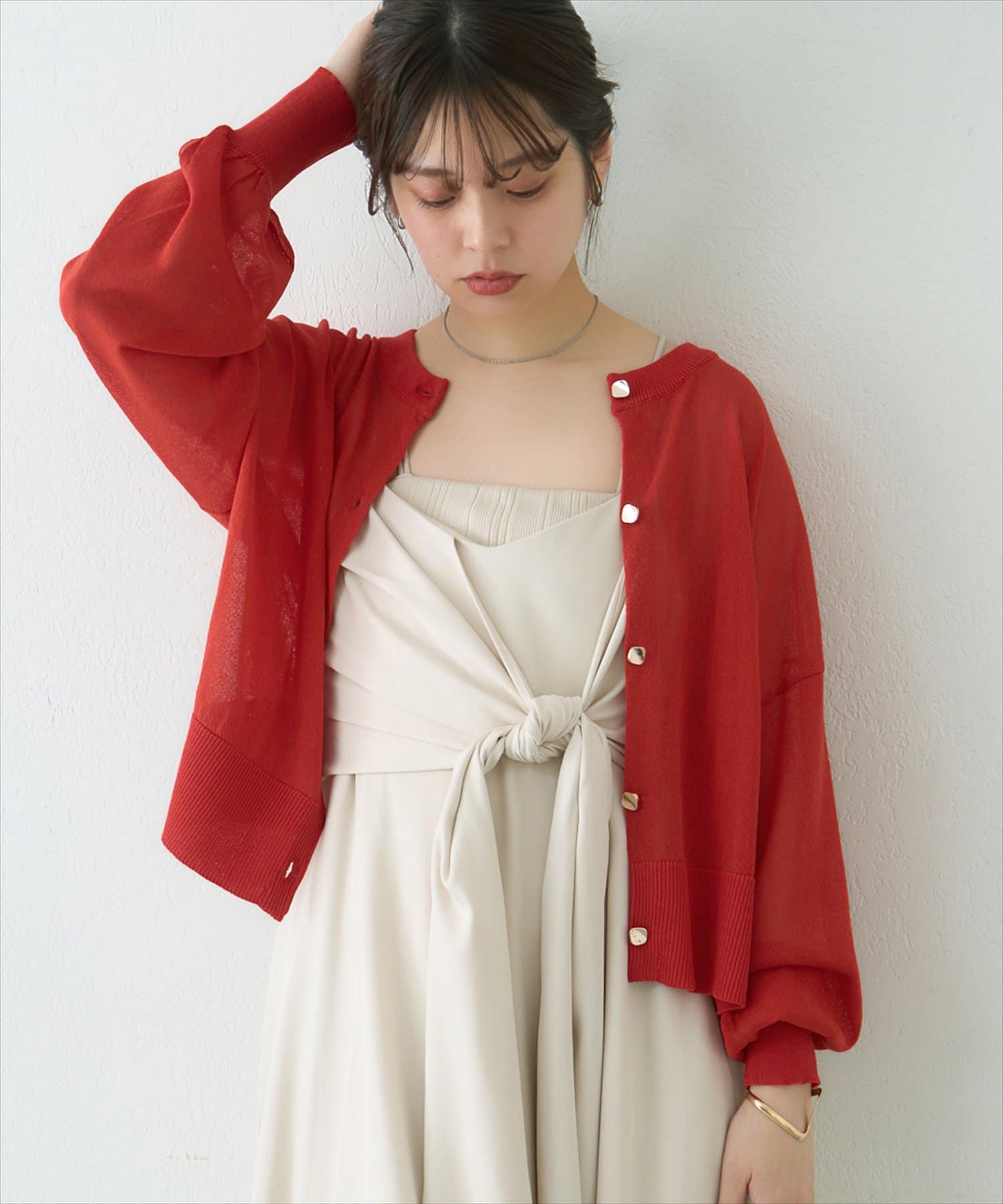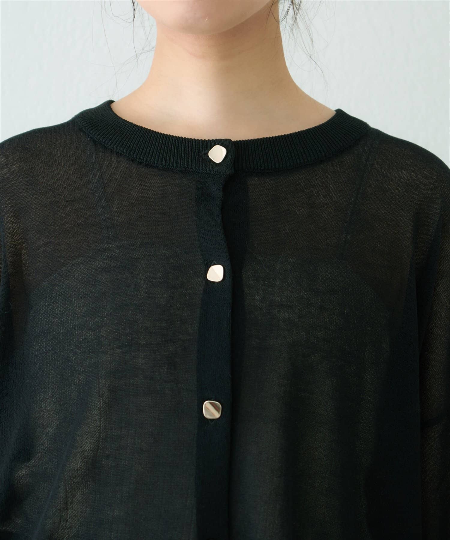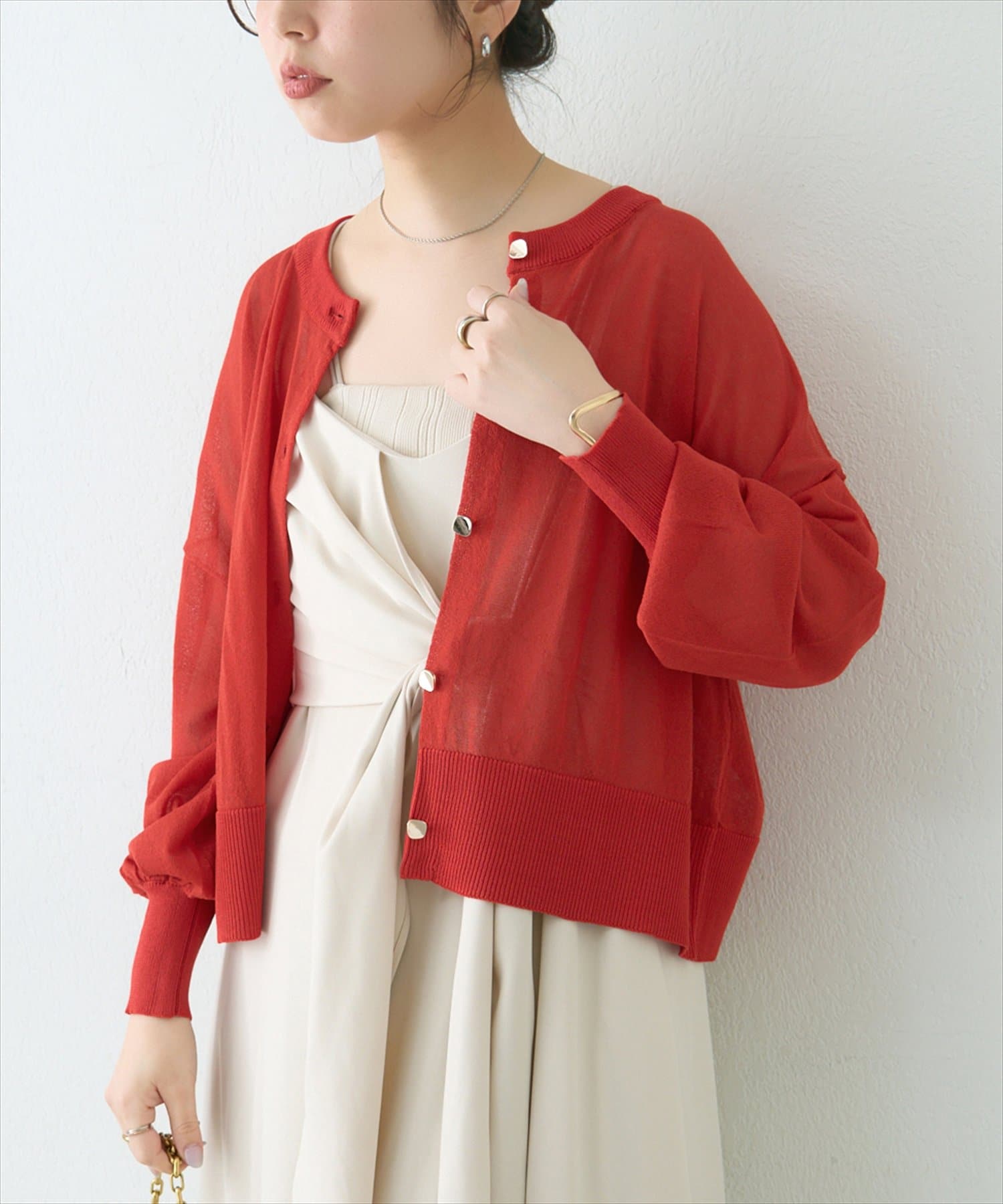 程よいシアー感と金ボタンが上品な大人のカーディガン。