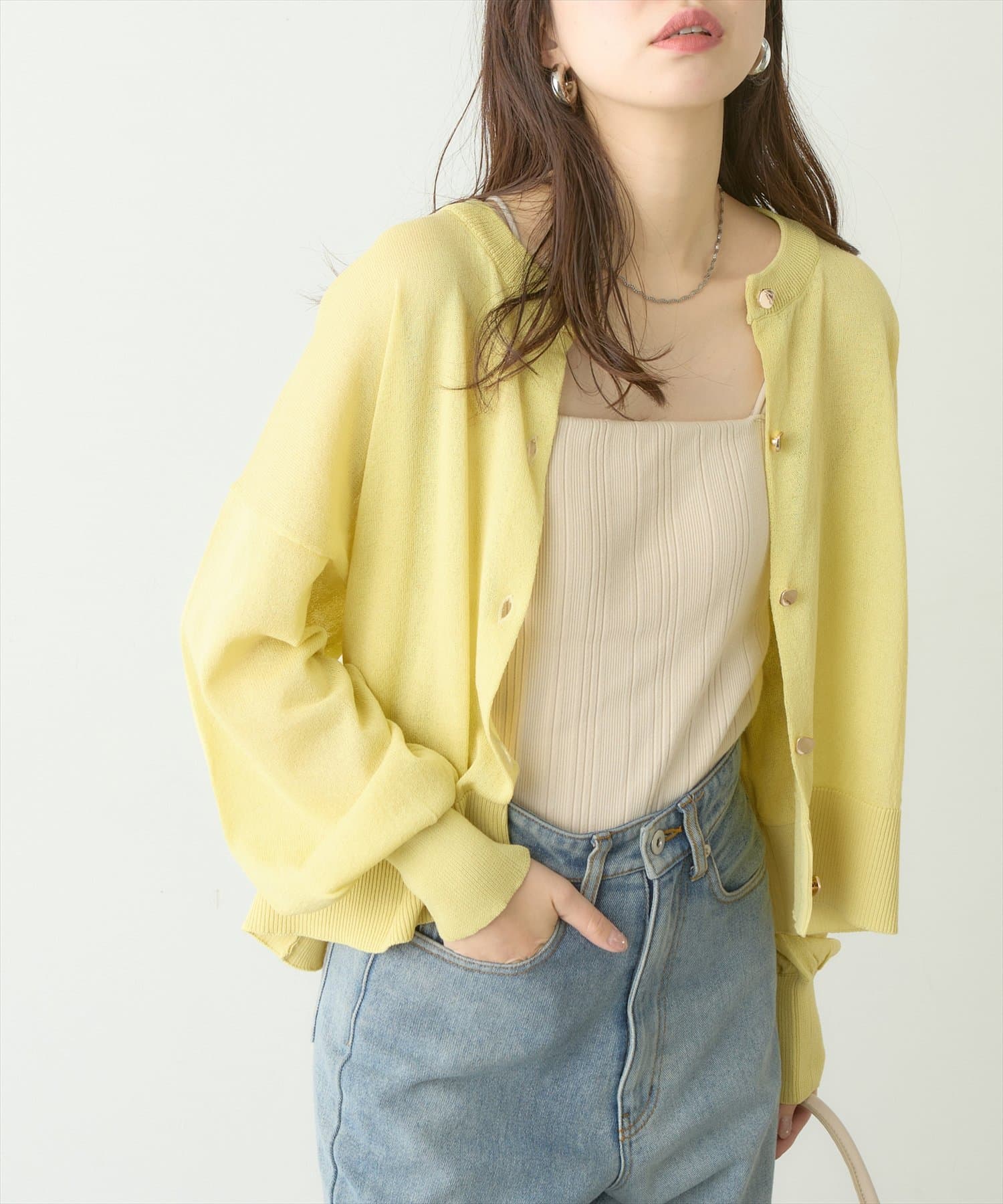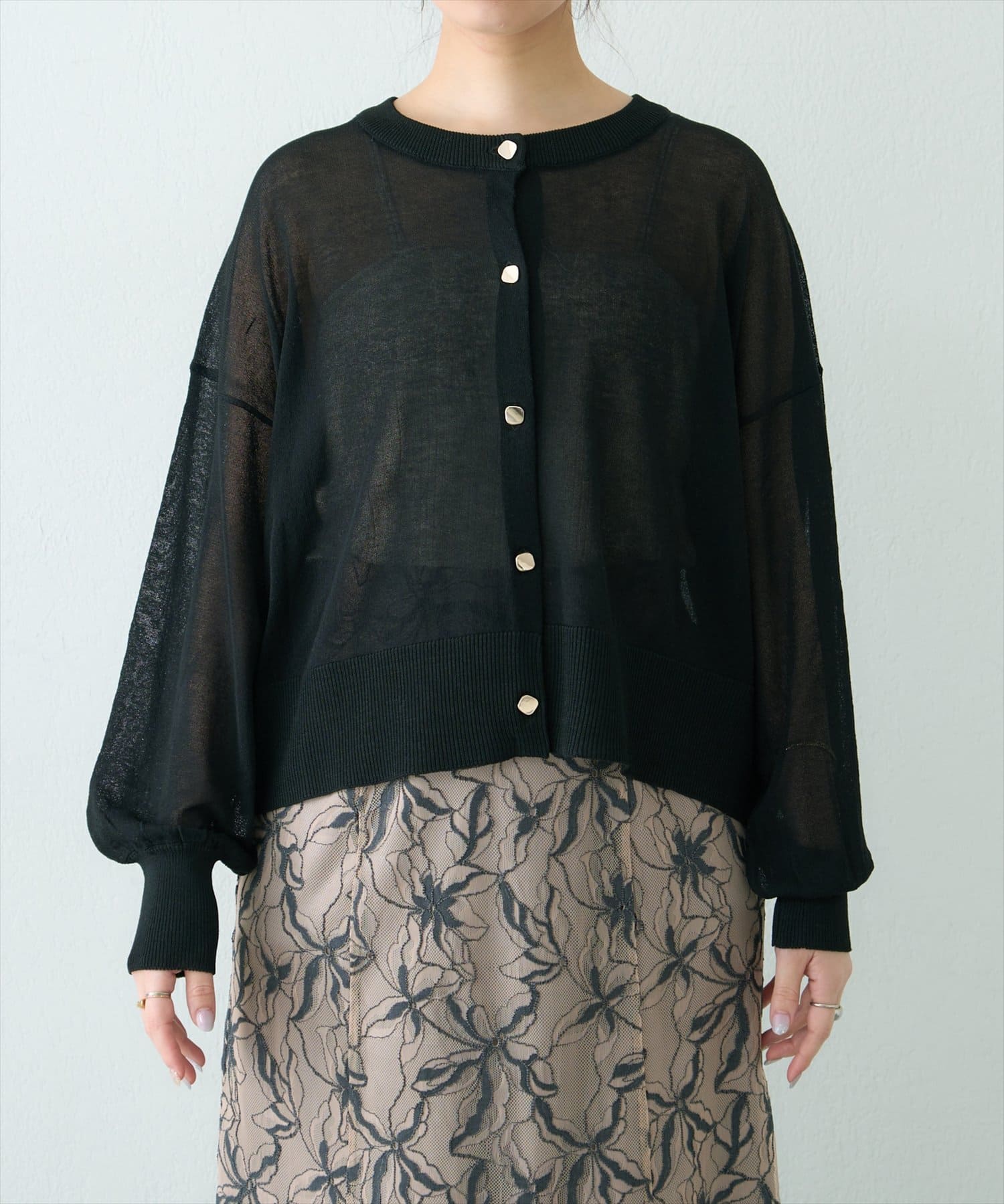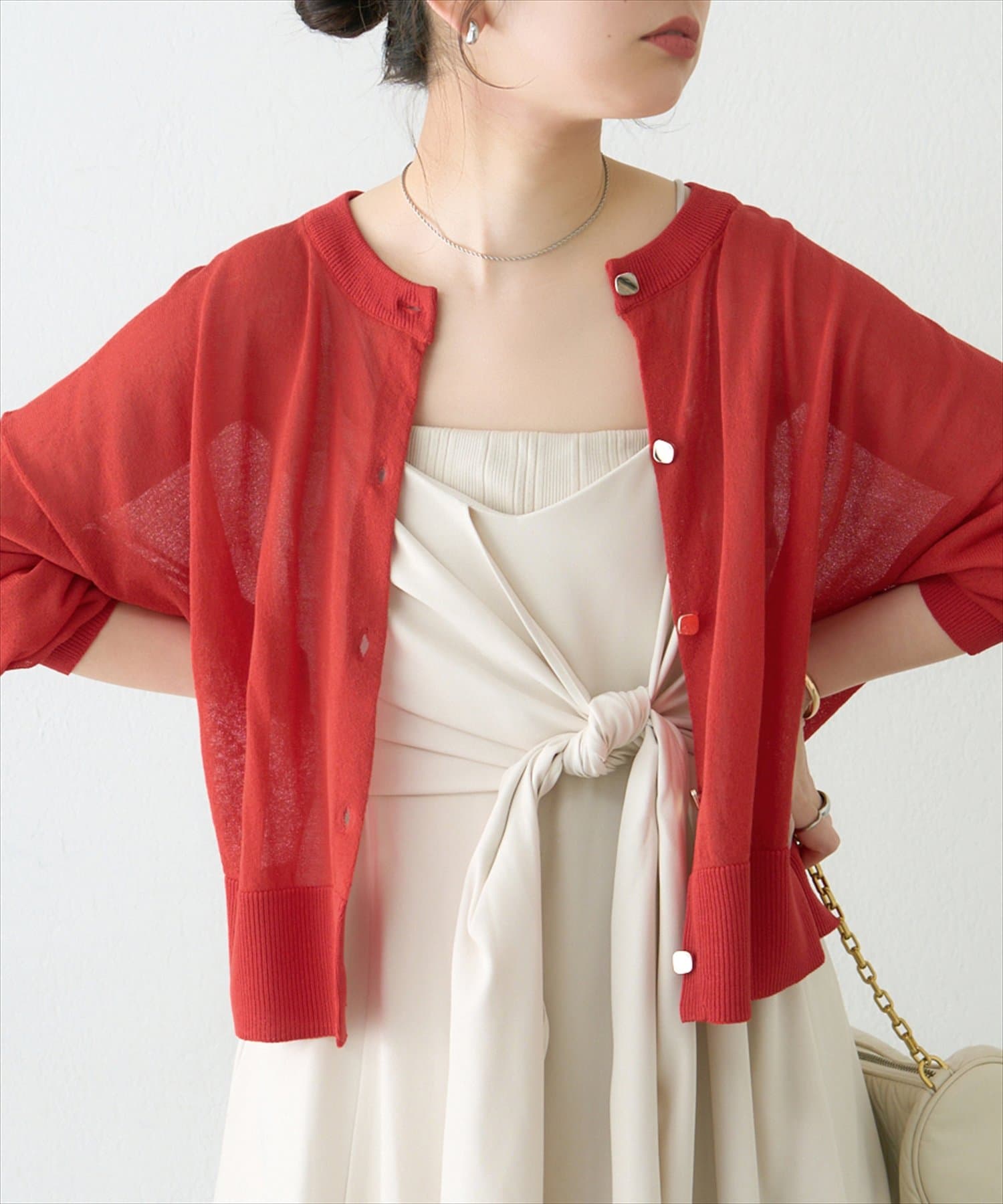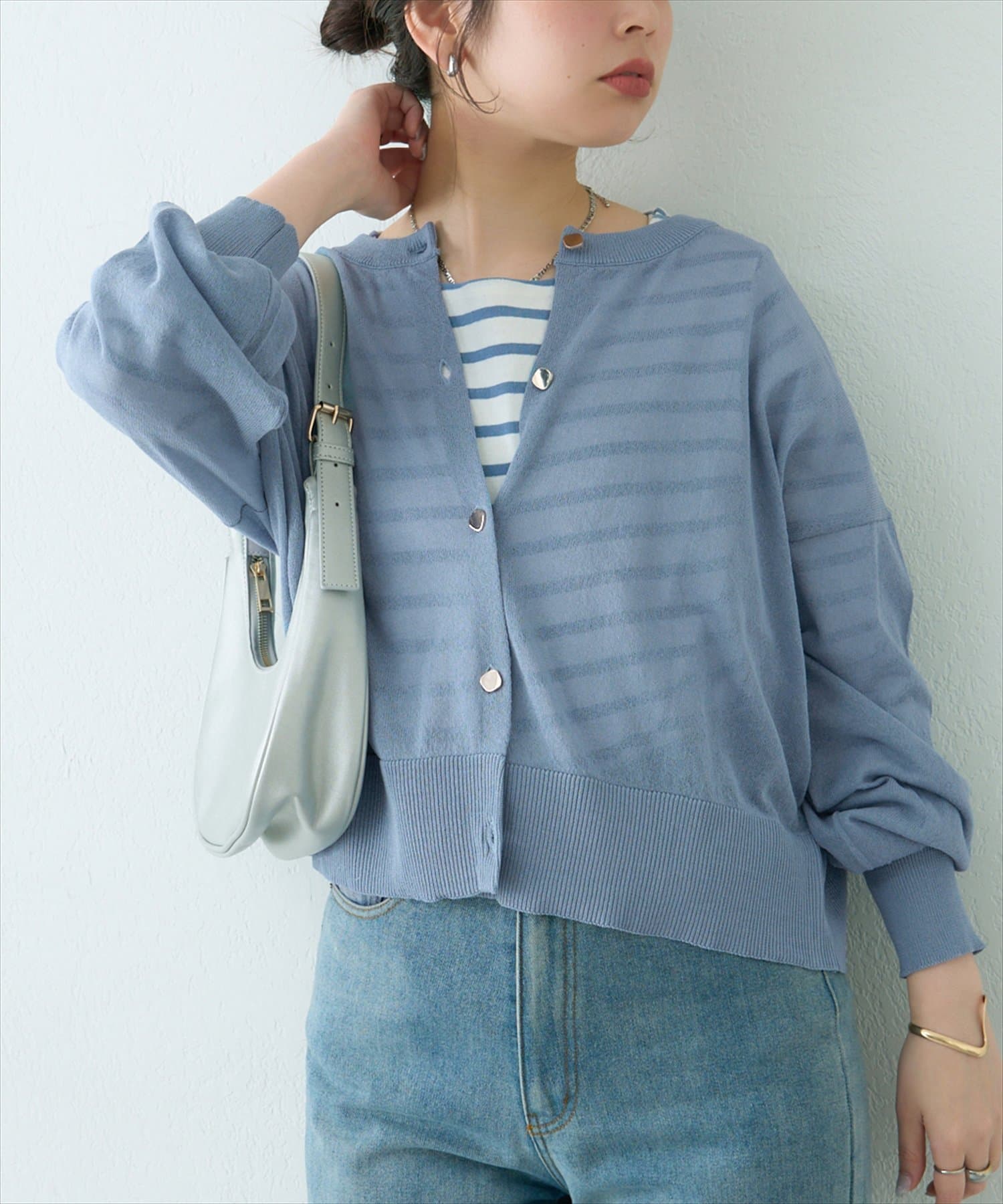 程よいシアー感と金ボタンが上品な大人のカーディガン。