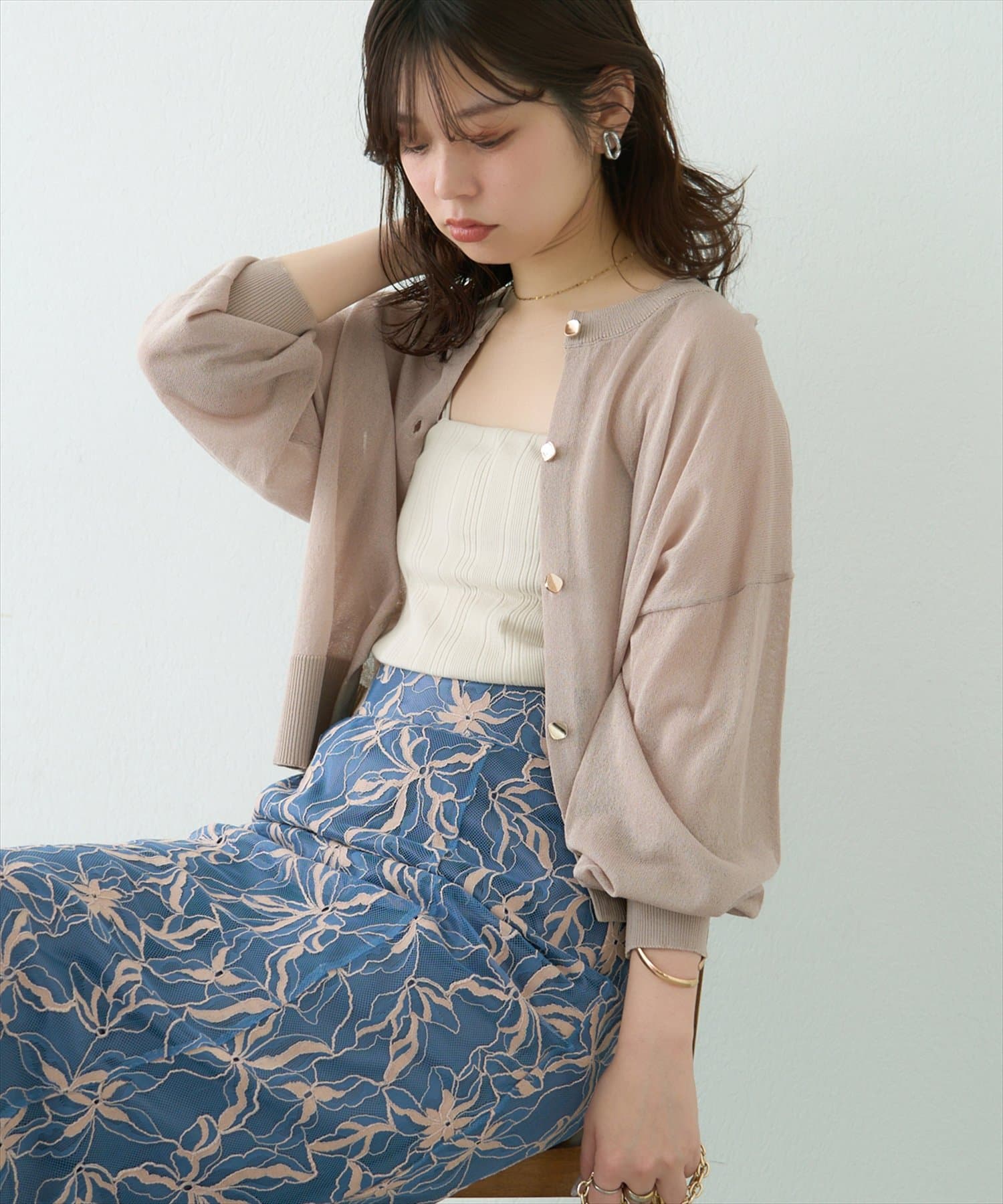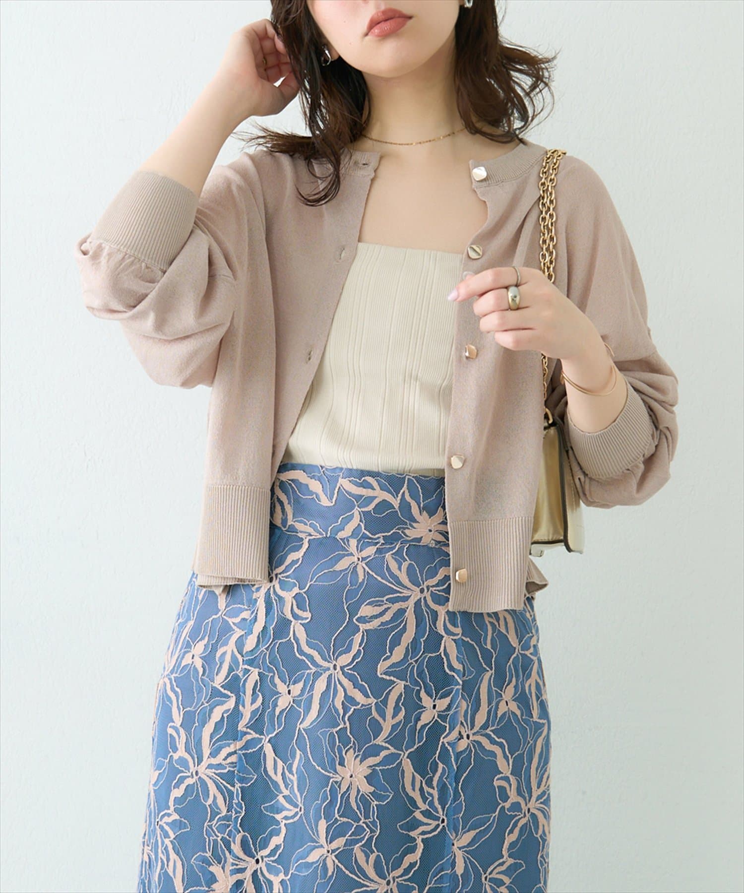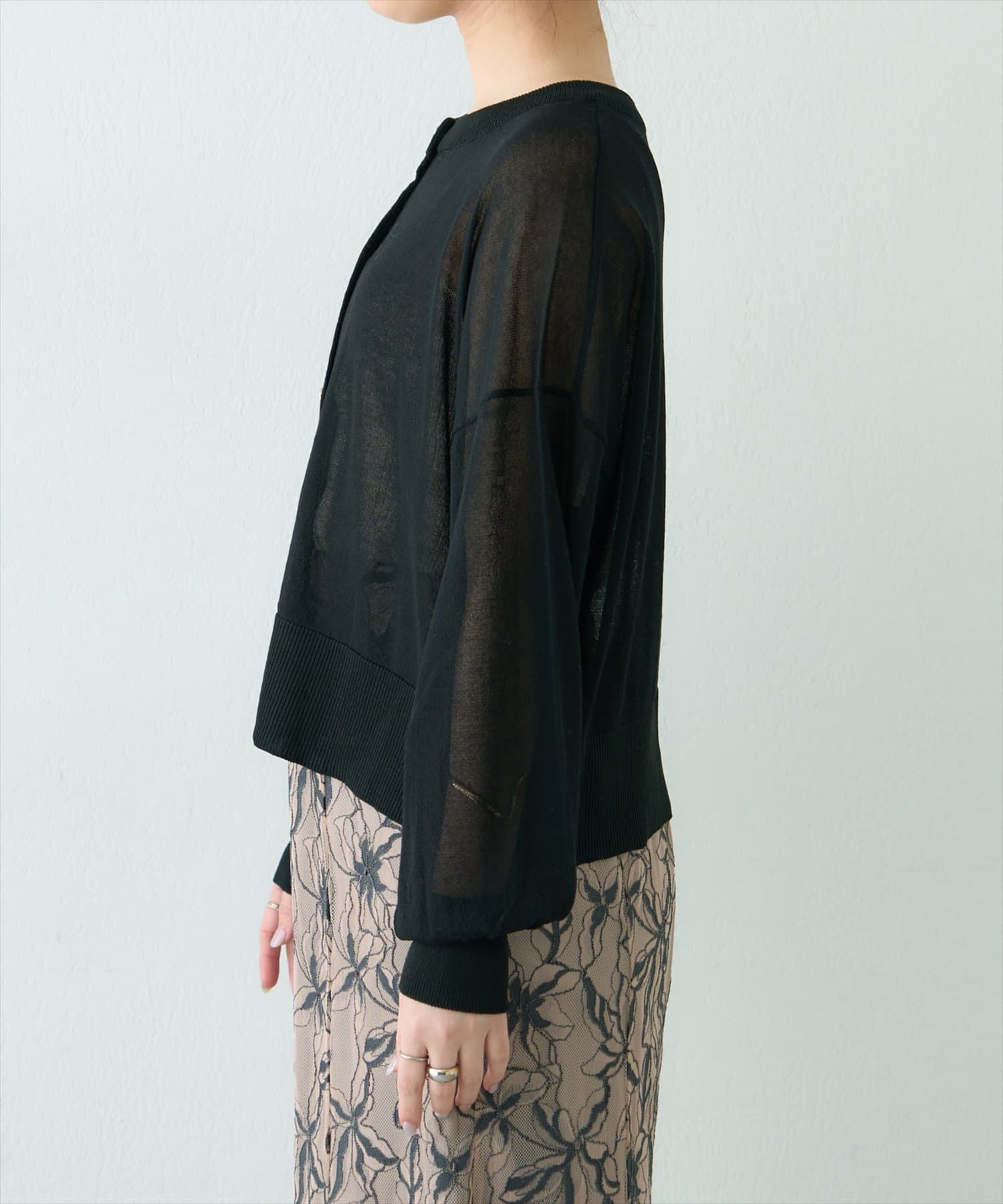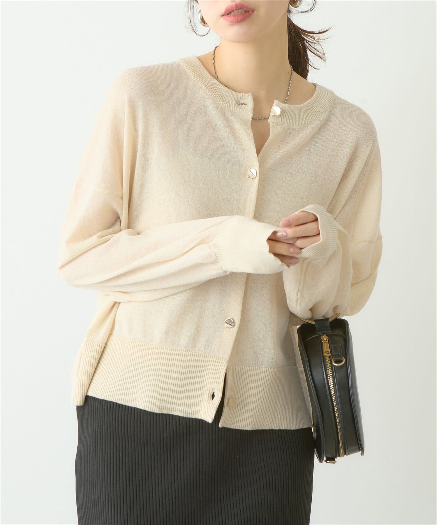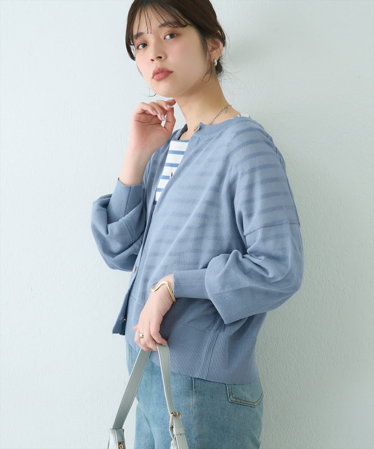 程よいシアー感と金ボタンが上品な大人のカーディガン。
