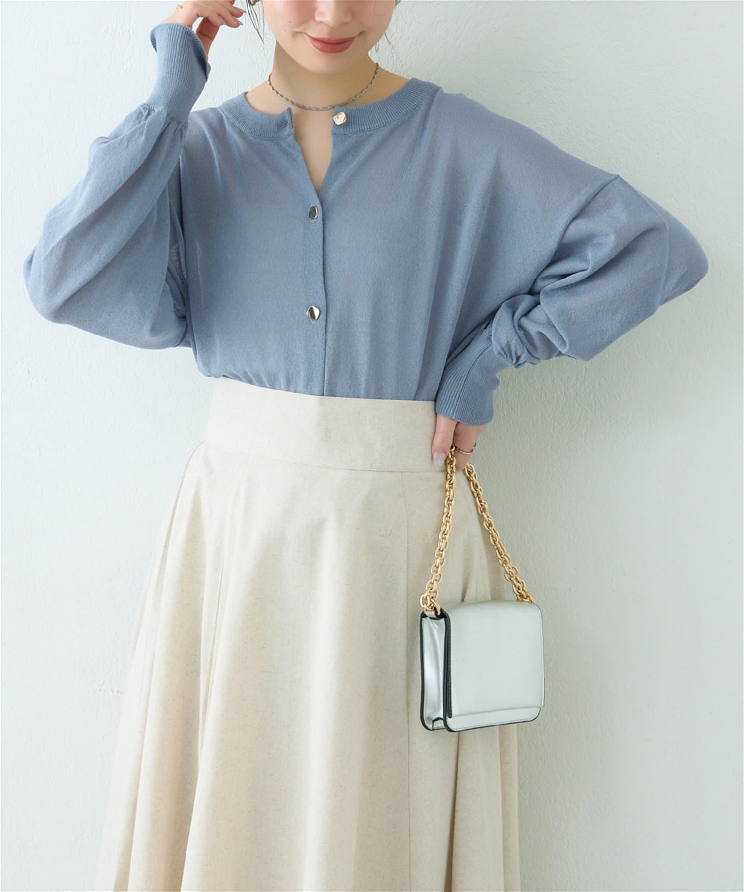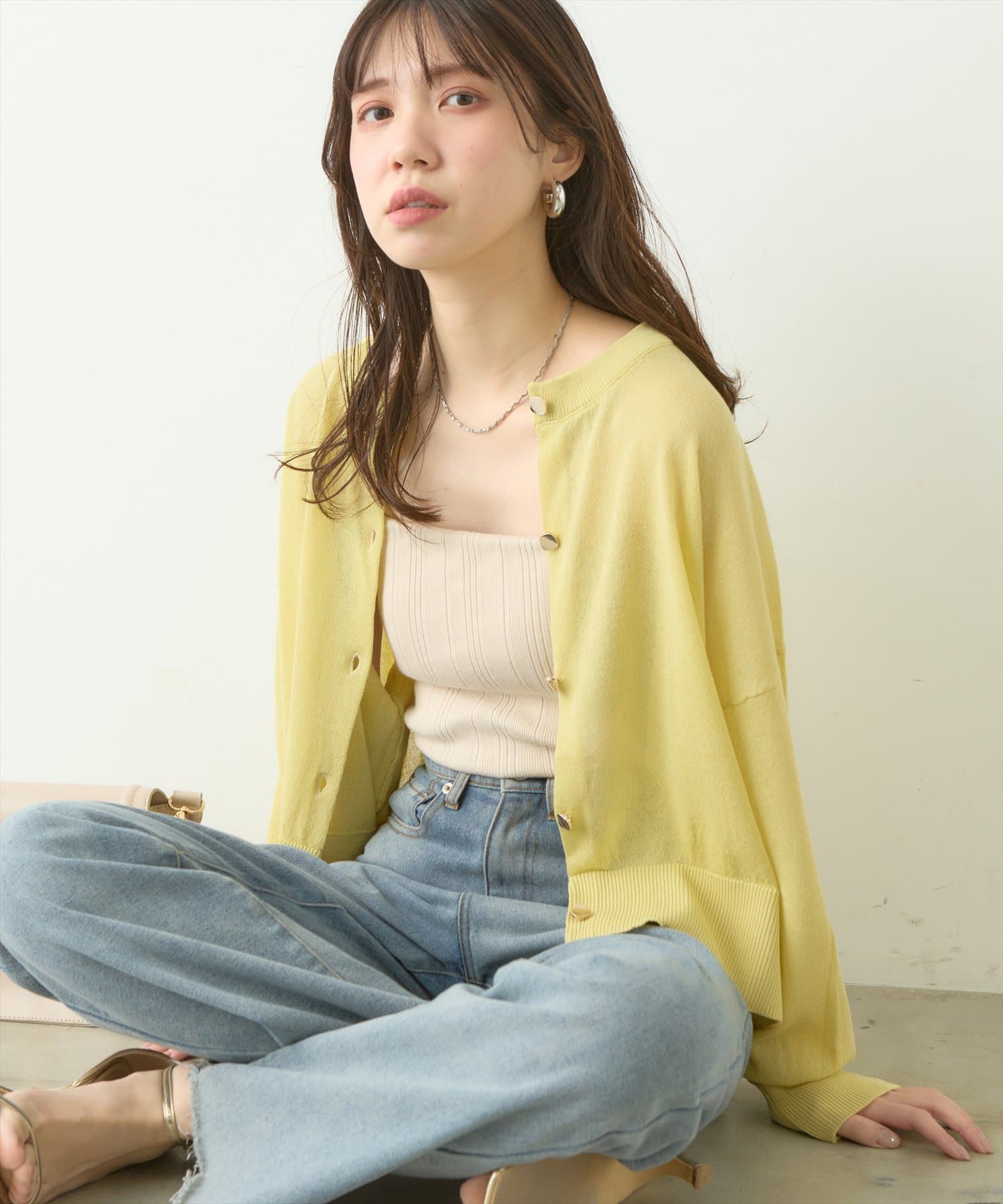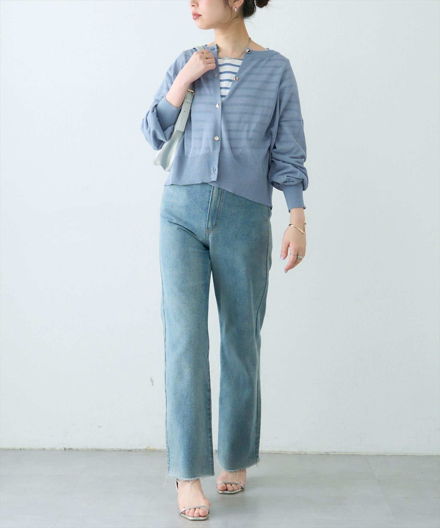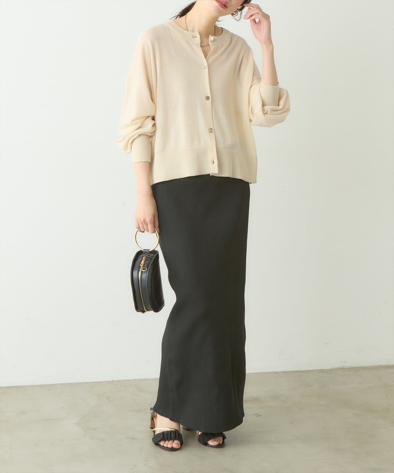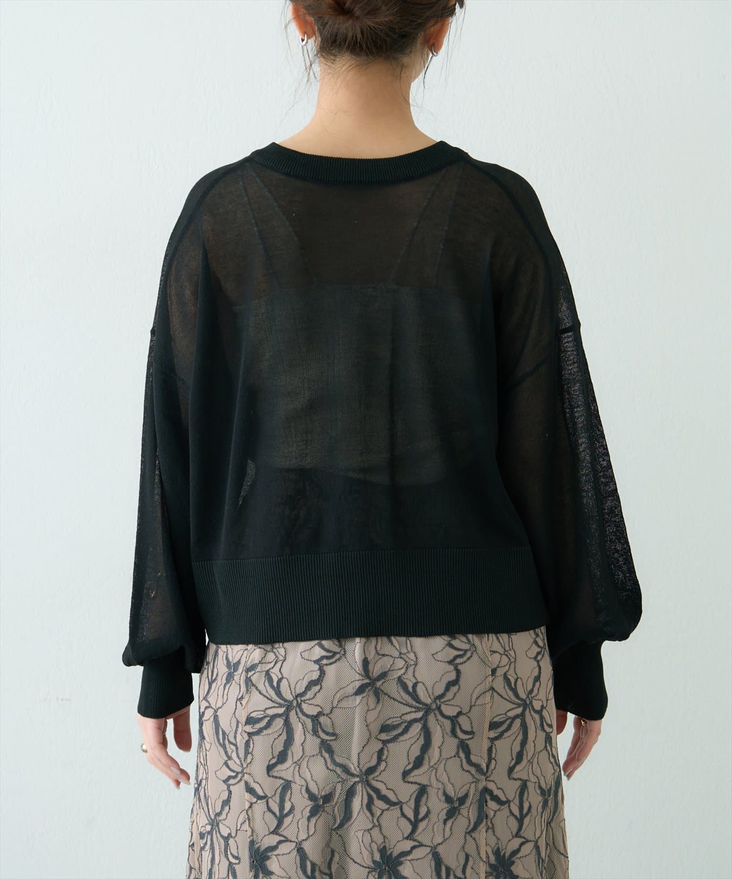程よいシアー感と金ボタンが上品な大人のカーディガン。