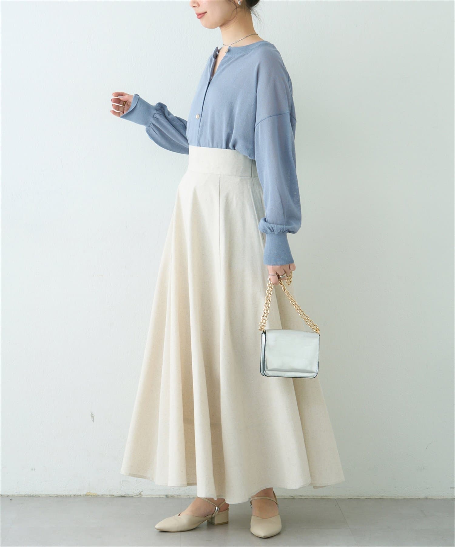 シアー感のある素材で、夏でも涼しげな印象を与えてくれます。