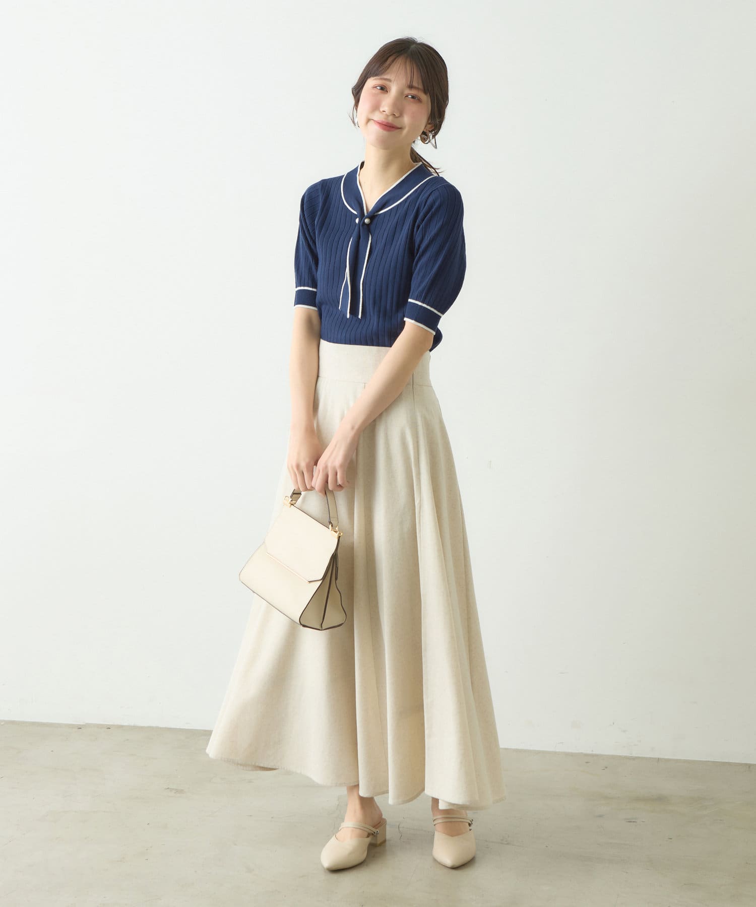 お仕事にもお出かけにも!着回し力バツグンなボータイニット