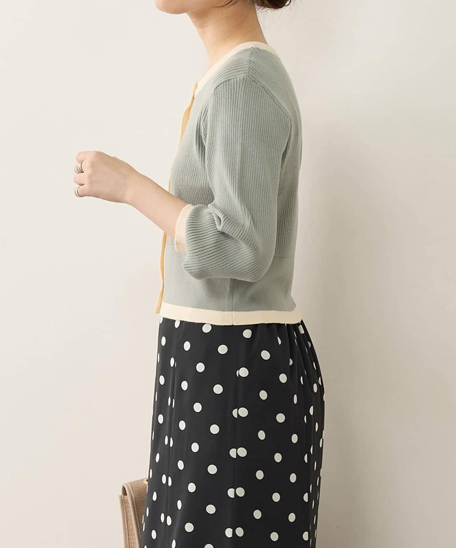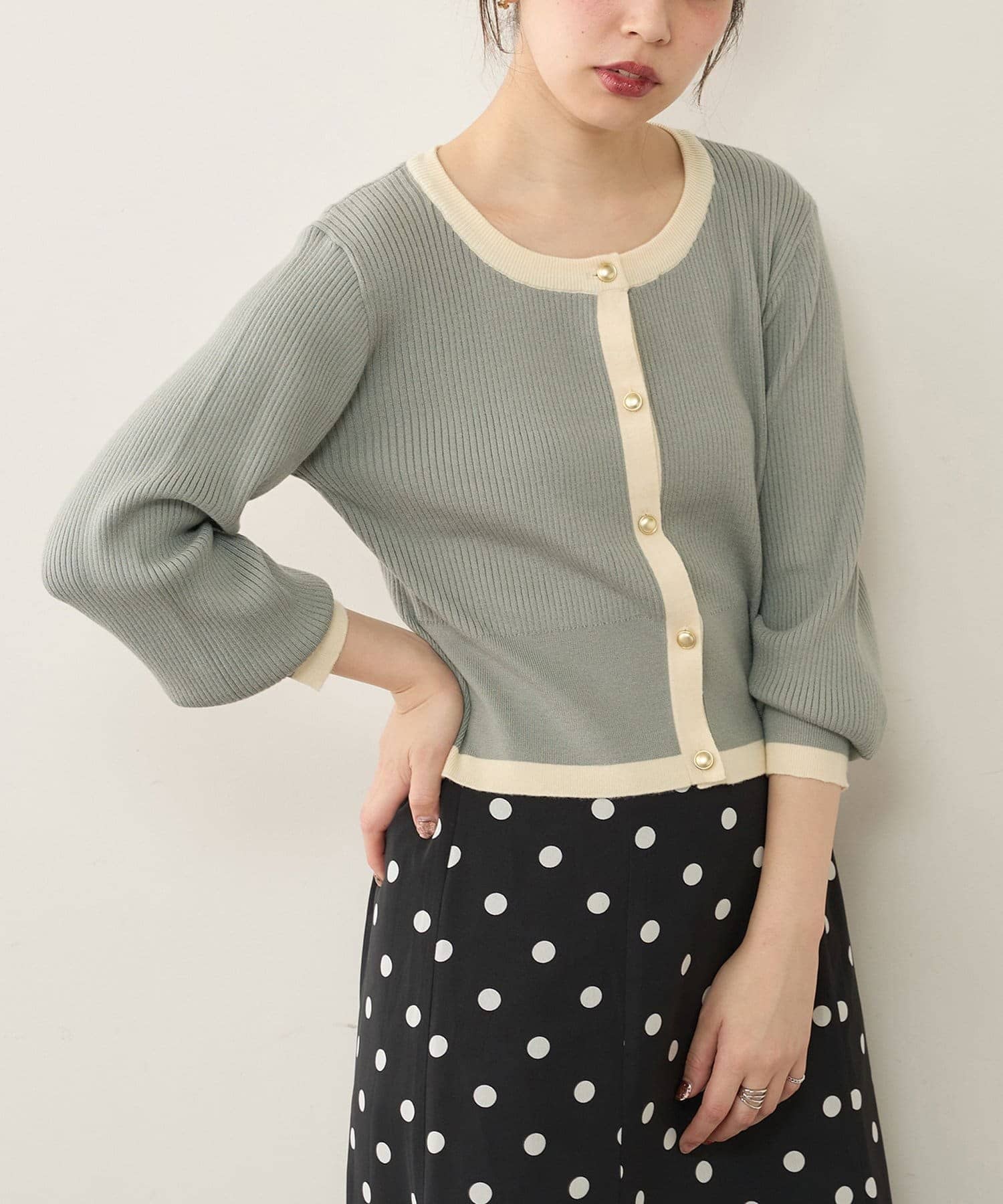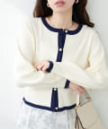 【natural couture】バイカラーレトロショートカーデ